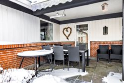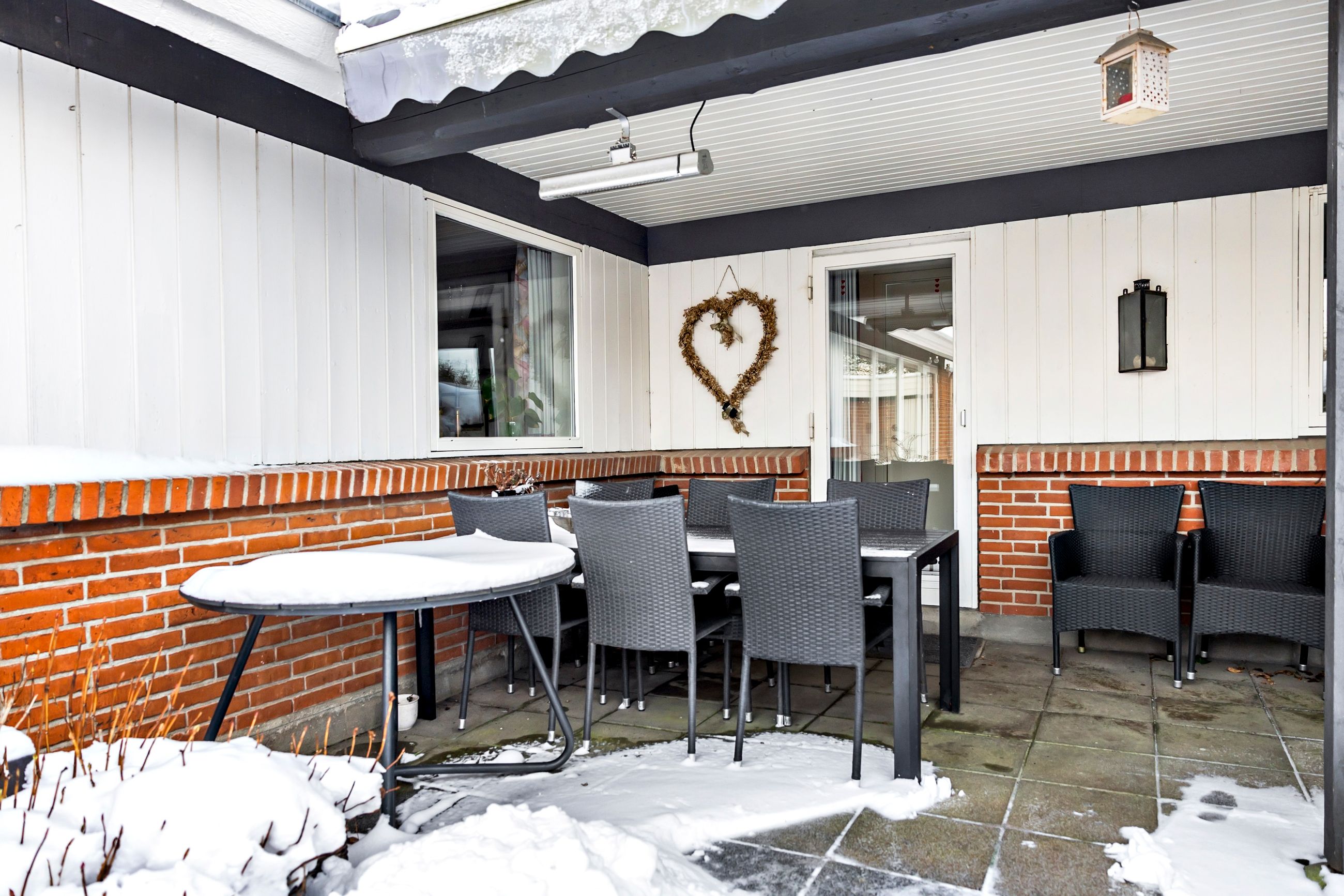 Haven er sydvestvendt og byder på et solrigt uderum med en overdækket terrasse, hvor man kan nyde varme sommerdage, hyggelige aftener eller en stille kop kaffe om morgenen. Her er plads til leg, afslapning og forskellige udeaktiviteter gennem hele sæsonen, hvilket gør haven til et naturligt samlingspunkt for både familie og gæster.