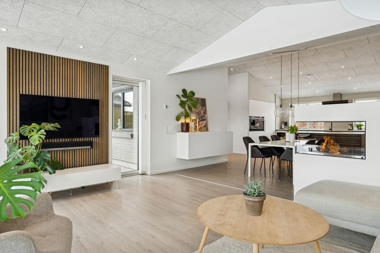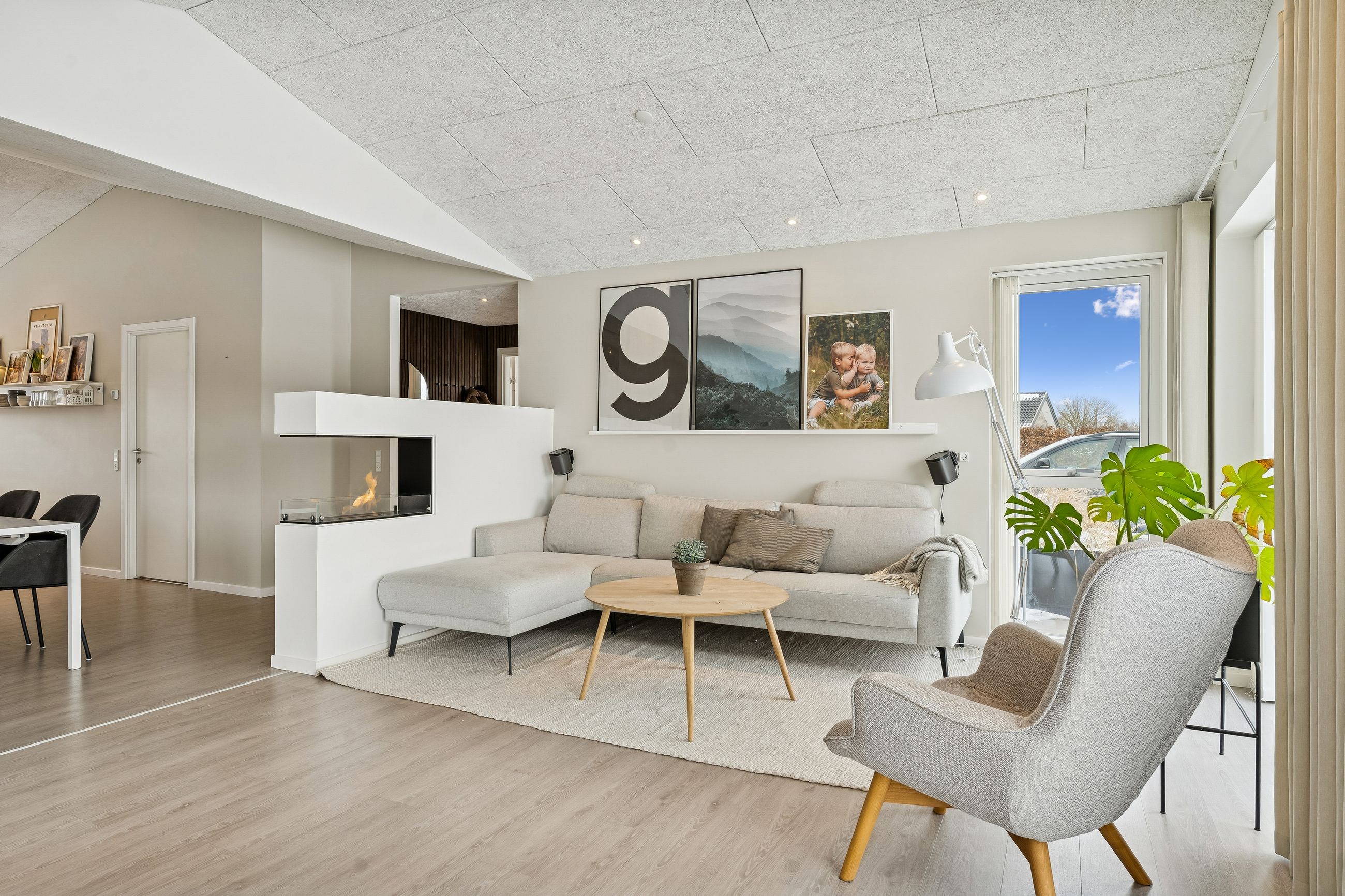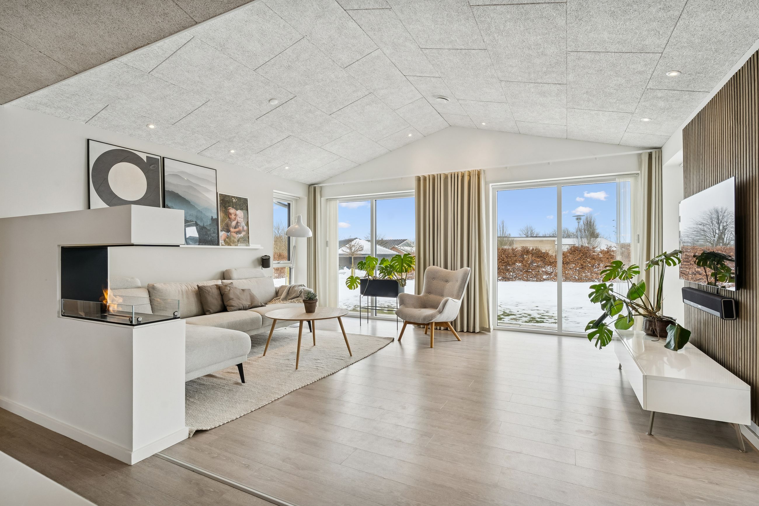 Her får I en velindrettet og indflytningsklar bolig med hele 155 m2 beboelse samt 65 m2 integreret dobbeltgarage – perfekt til familien, der ønsker god plads og en nem og praktisk hverdag. Boligen fremstår lys og indbydende med en god planløsning, hvor der er tænkt på både fælles opholdsrum og private afdelinger.