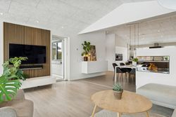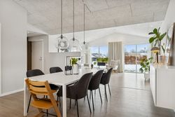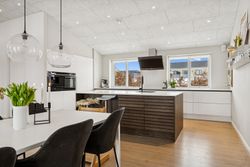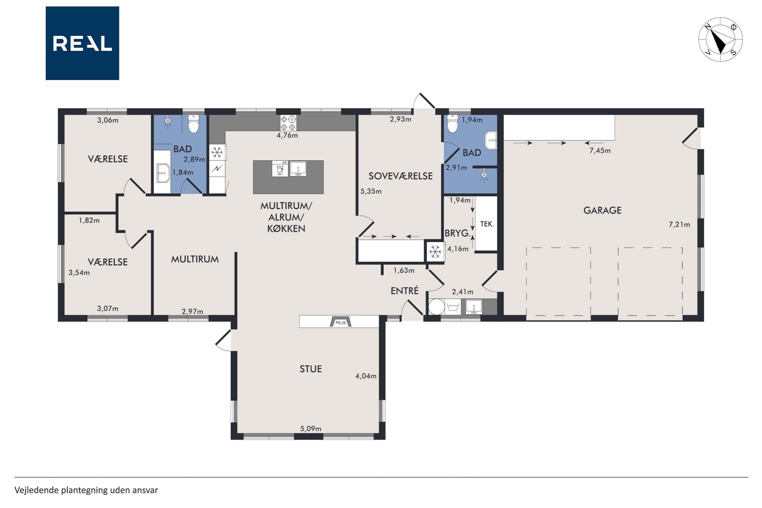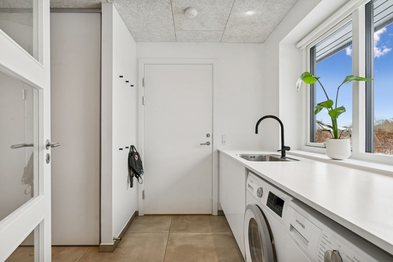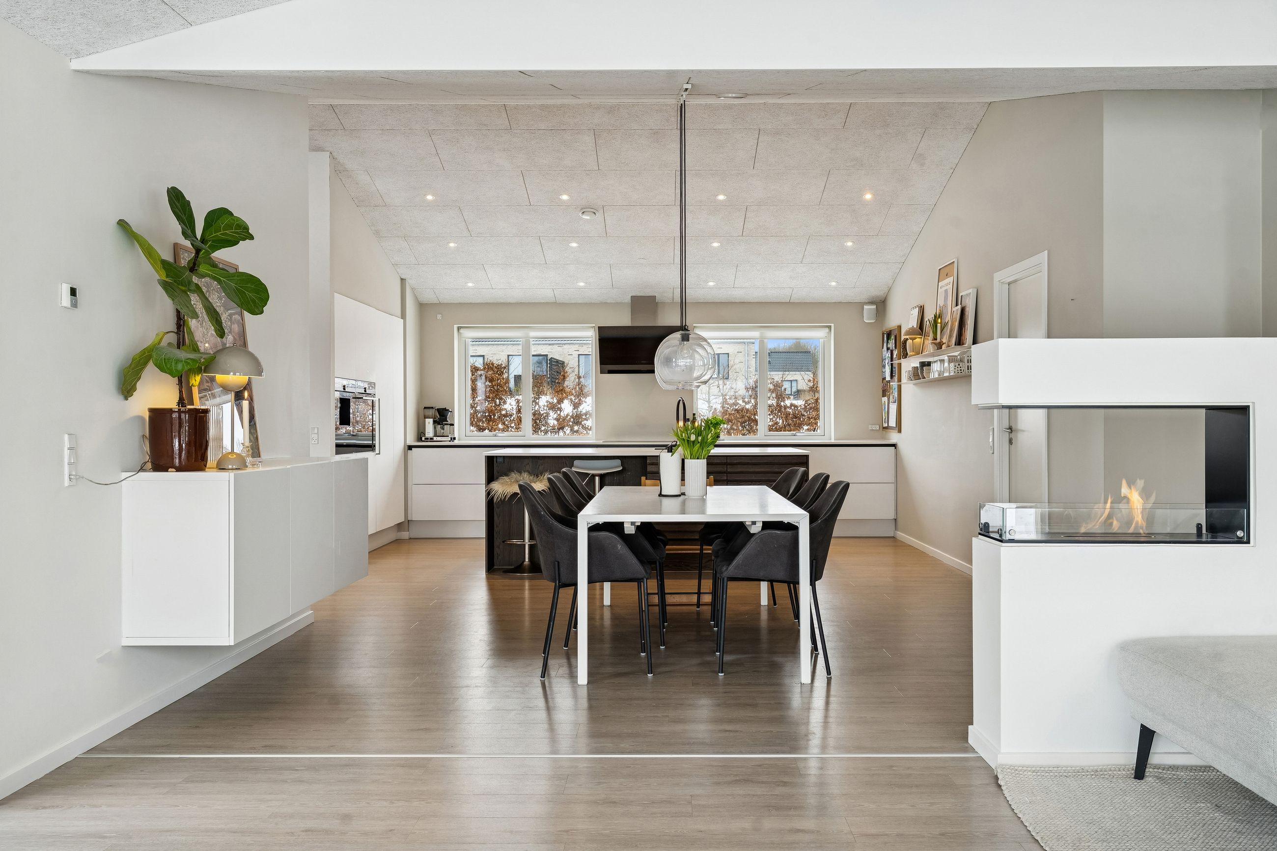 Fra den rummelige dobbeltgarage er der direkte adgang til husets bryggers, hvor der er god plads til både vaskemaskine og tørretumbler samt opbevaring af overtøj og hverdagens praktiske ting. Herfra fortsætter I ind i entréen, som byder velkommen og giver adgang til boligens naturlige samlingspunkt – det store og lyse køkken/alrum. Køkken/alrummet ligger i åben forbindelse med stuen og skaber et dejligt opholdsområde med plads til både hverdagens aktiviteter og hyggelige stunder med familie og venner. De store opholdsrum giver en god rumfornemmelse og et behageligt lysindfald.