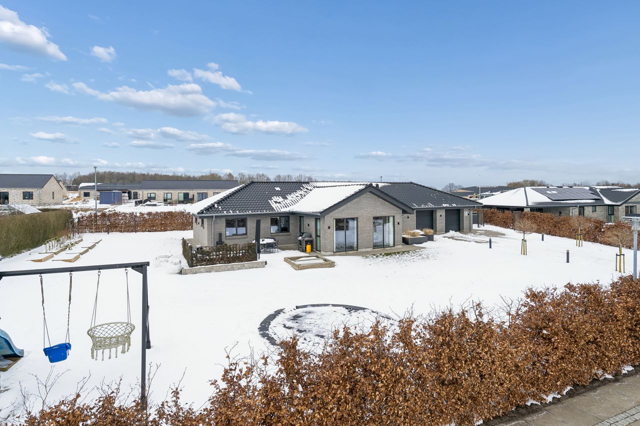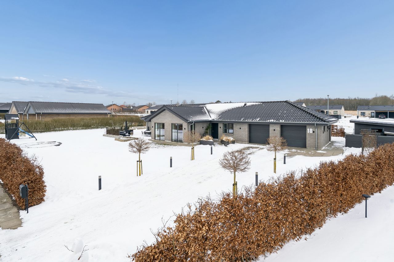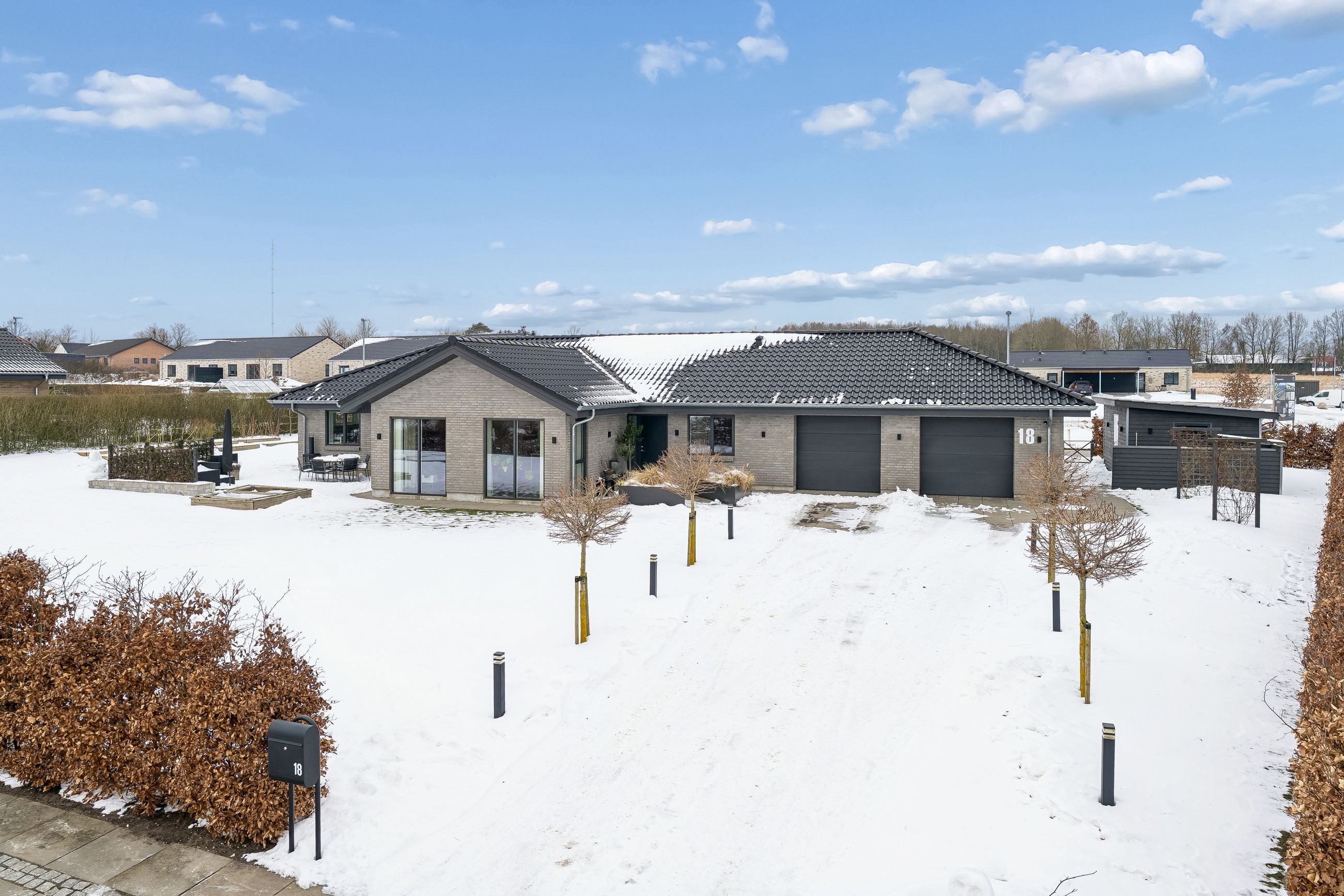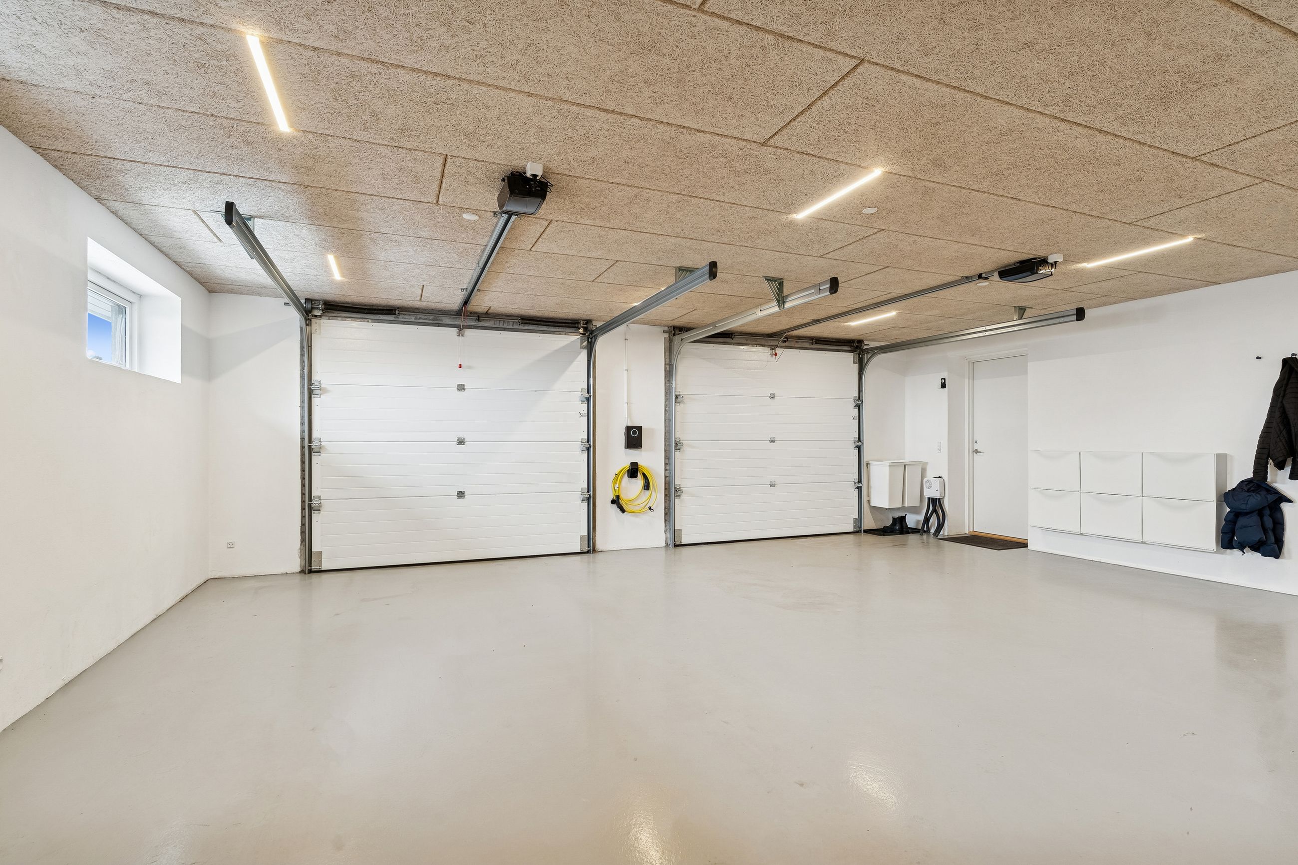 Den integrerede dobbeltgarage giver gode muligheder for både parkering, værksted eller ekstra opbevaring og bidrager til en praktisk og bekvem hverdag med direkte adgang til boligen.