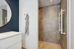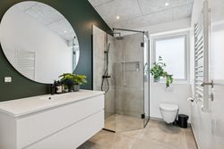 I alt er der tre gode og regulære soveværelser med mange indretningsmuligheder, hvad enten der er behov for børneværelser, kontor eller gæsteværelse. Hertil kommer to badeværelser, begge indrettet med bruseniche, hvilket gør boligen særligt velegnet til børnefamilien eller til jer, der ønsker ekstra komfort i hverdagen.