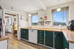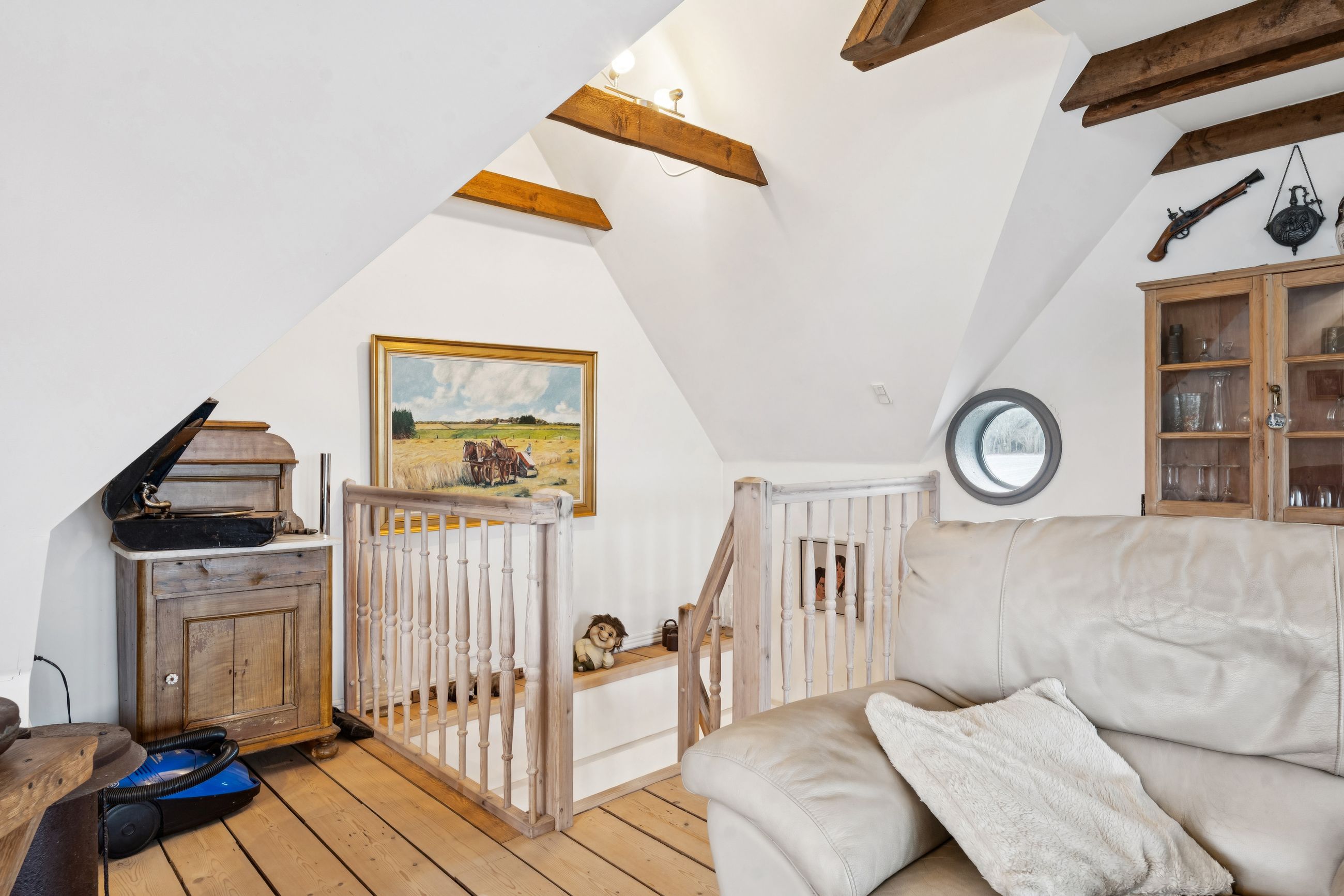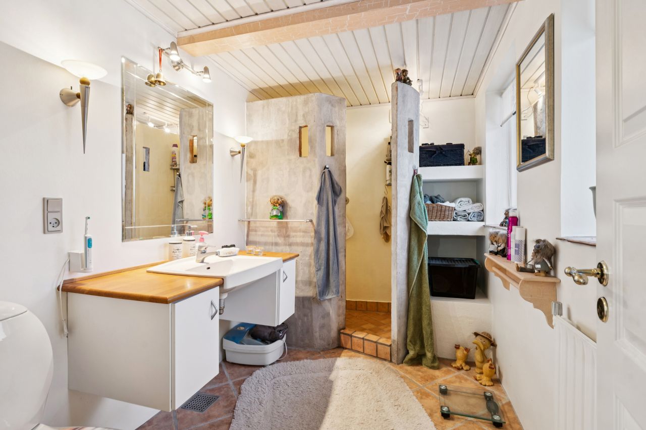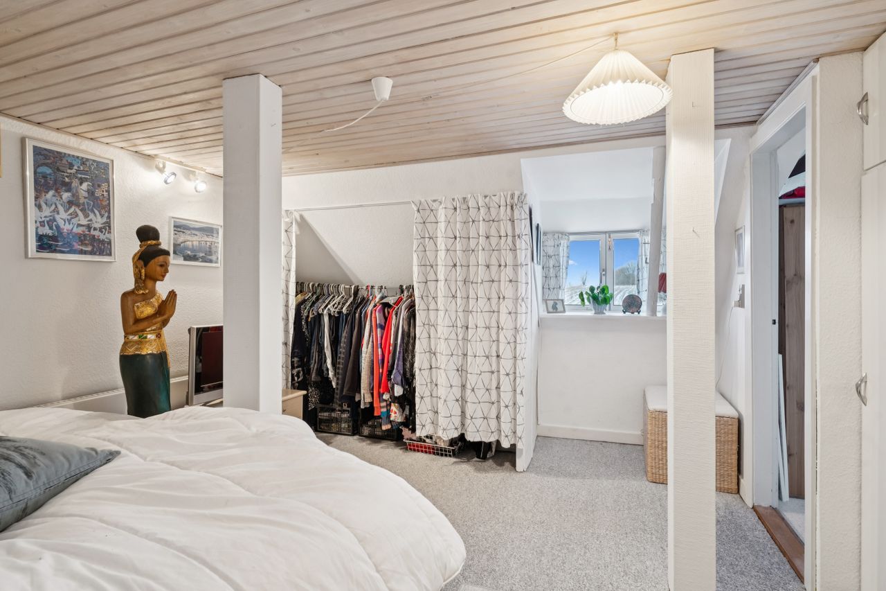 Stuehuset fremstår med masser af sjæl og atmosfære. Taget er løbende renoveret, og boligen rummer fine, charmerende detaljer, som understreger ejendommens oprindelige udtryk. Indretningen er praktisk og funktionel med toilet på begge plan, hvilket er et kæmpe plus i hverdagen.