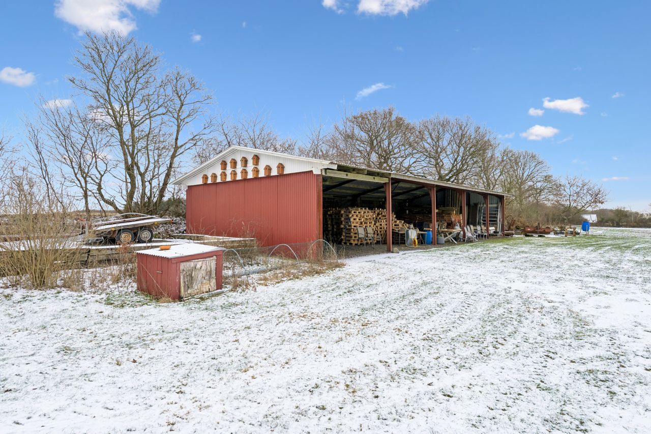 Til ejendommen hører desuden flere udhusbygninger, b.la. et rummeligt maskinhus uden fast bund, hvilket giver gode muligheder for løsdrift eller anden fleksibel anvendelse – perfekt for dig med behov for plads til dyr, maskiner eller hobbyprojekter.