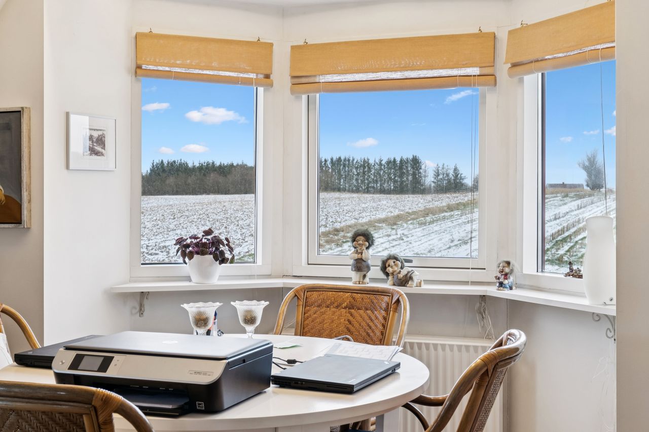 Fra boligen og grunden er der et dejligt, frit kig ud over egen mark, hvor årstidernes skiften kan nydes i fulde drag. Her er plads til at trække vejret, nyde stilheden og lade naturen være en del af hverdagen.