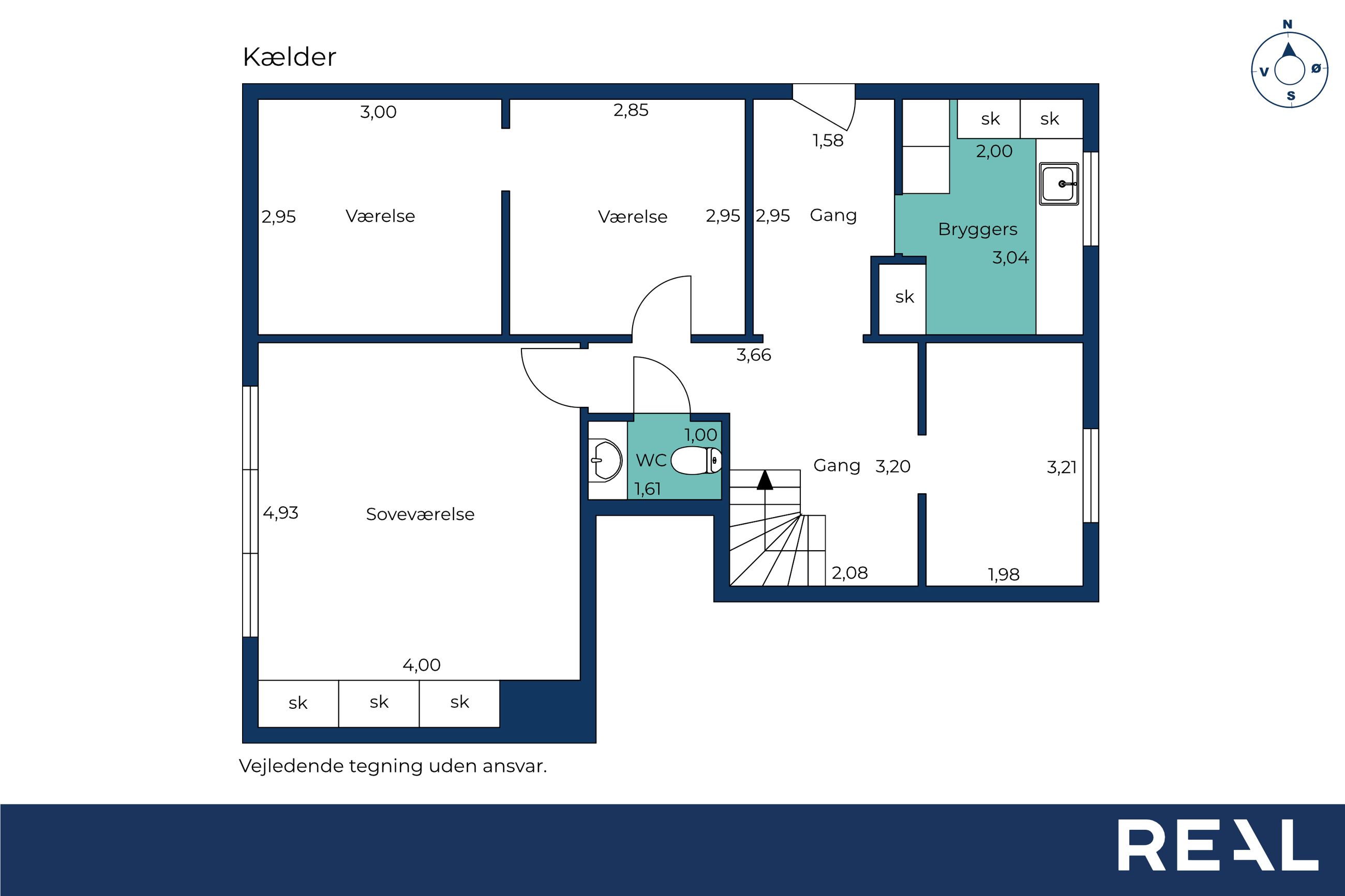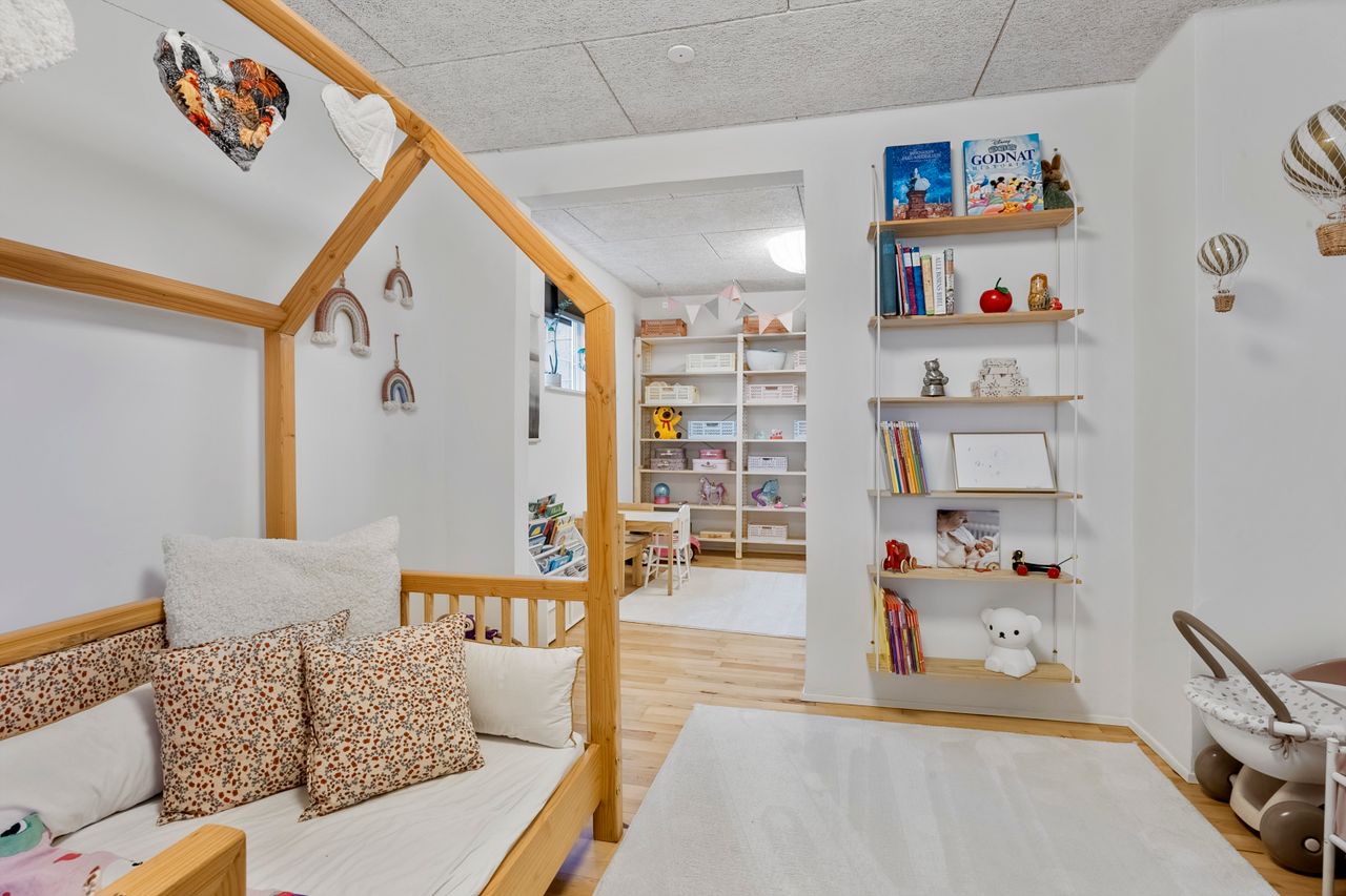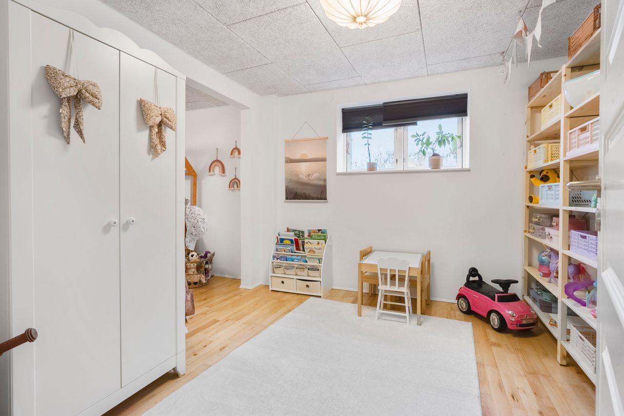 Kælderen rummer fire disponible rum, et toilet og et bryggers – fleksible rum, der kan tilpasses efter behov, hvad enten man ønsker opbevaring, hobbyrum eller hjemmekontor.