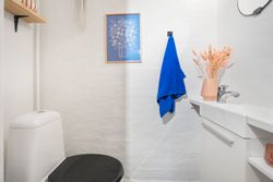 Længere inde i huset finder man endnu et værelse og et badeværelse, praktisk placeret, så huset fungerer godt for både familieliv og gæster.