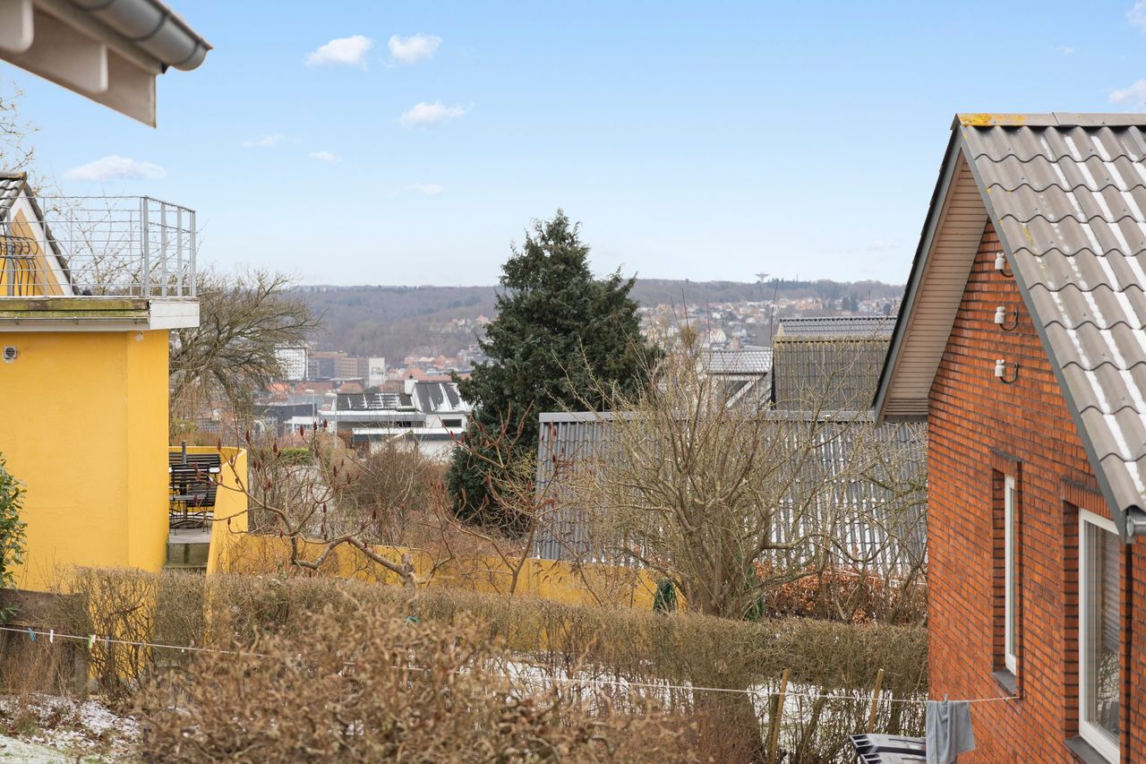 Ahornvej 9 ligger i et roligt og veletableret villakvarter i Uhrhøj, tæt på både institutioner, indkøb og Vejle centrum. Her får man en bolig, hvor hverdagen kan fungere let og praktisk.
