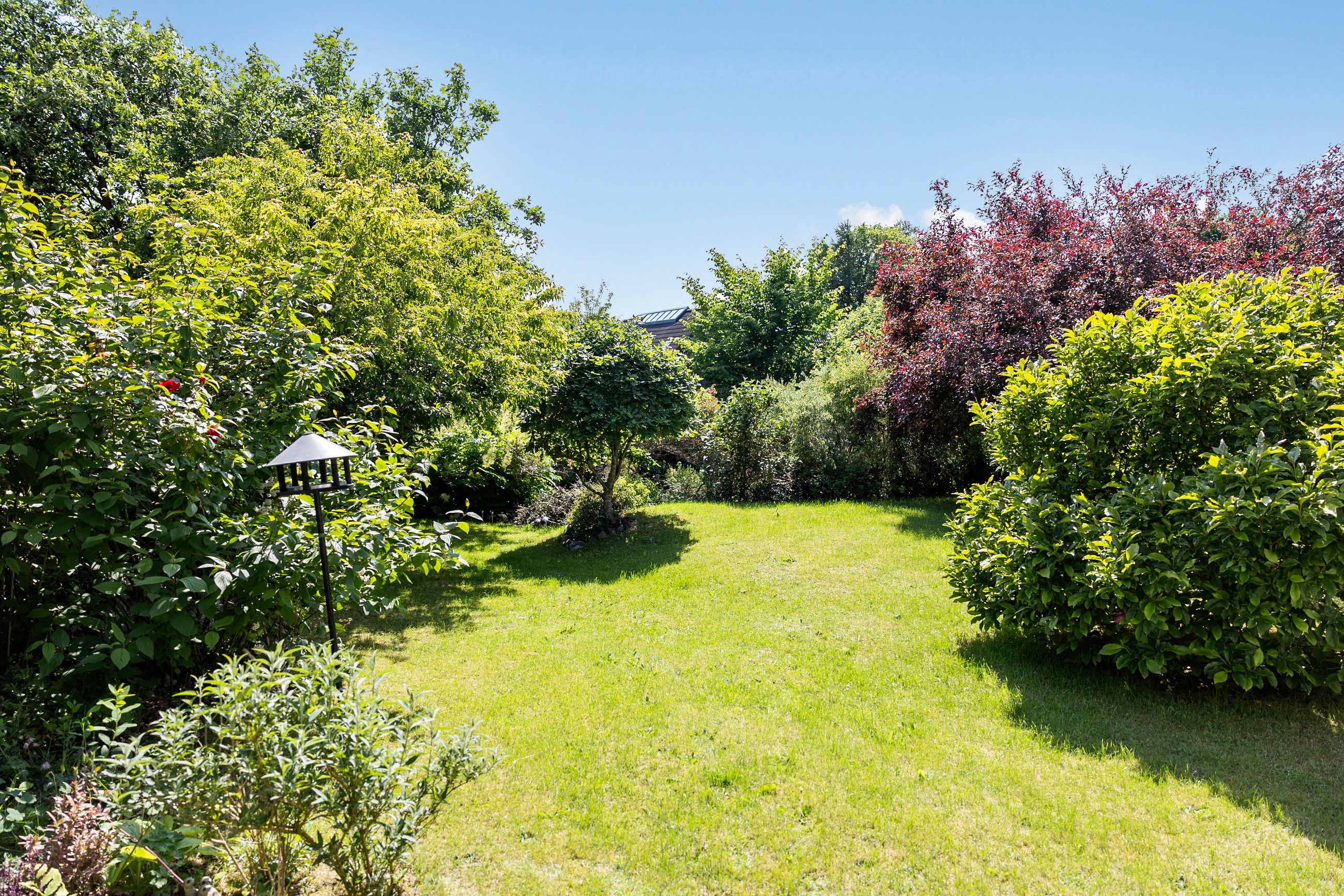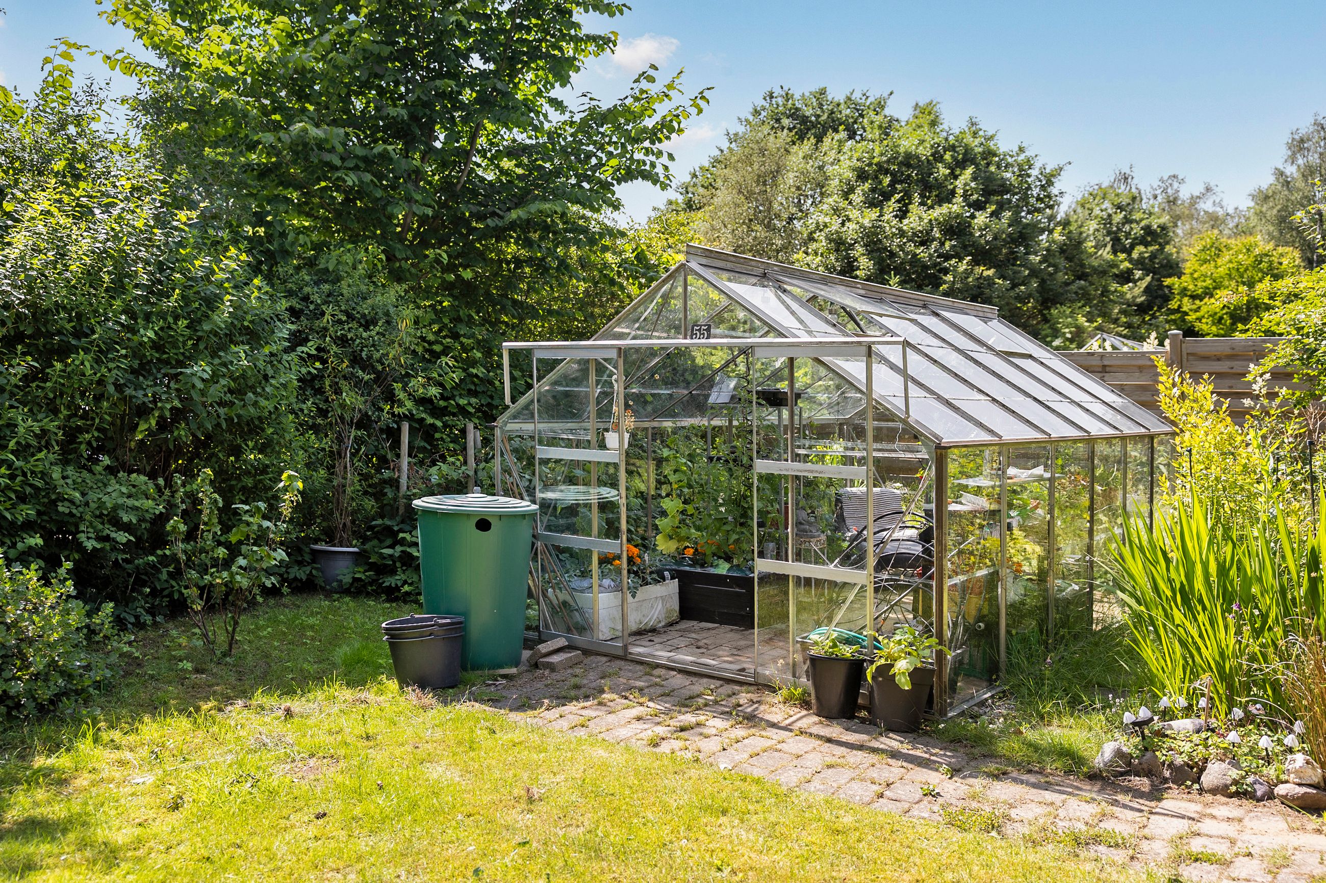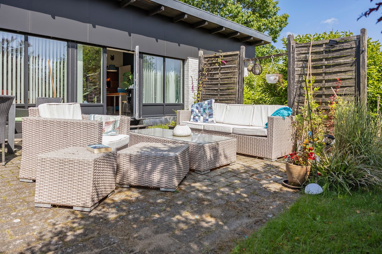 Udenfor venter en dejlig, ugeneret have med masser af grønne rammer og plads til leg og afslapning. Haven er sydvestvendt, hvilket sikrer optimale solforhold det meste af dagen – perfekt til sommerens mange timer under åben himmel.