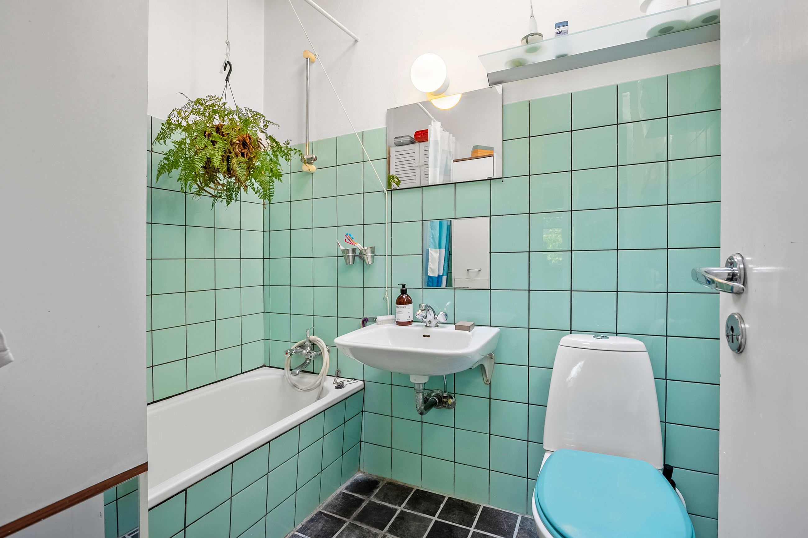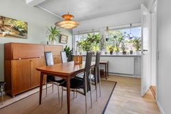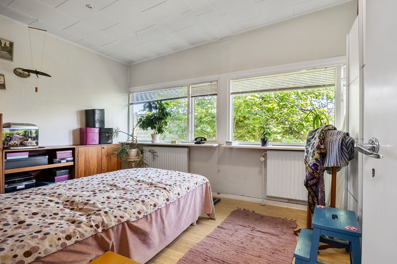 Planløsningen rummer desuden to gode soveværelser samt et badeværelse i original 60’er-stil med badekar – ideelt for dig, der ønsker at bevare tidens karakter eller modernisere efter egne ønsker.