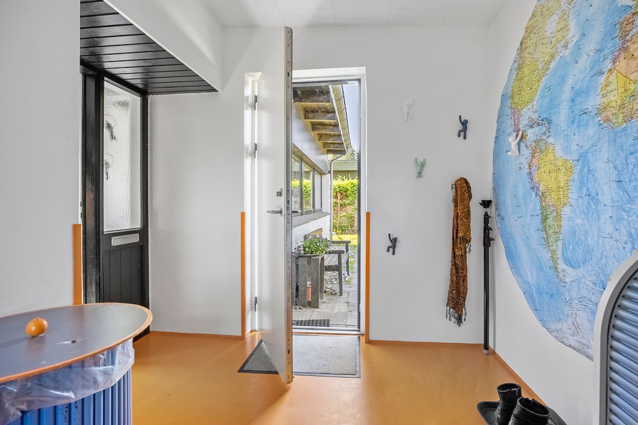 Villaen er opført i 1964 og byder på 105 veludnyttede kvadratmeter. Du bydes velkommen i en rummelig entré, der åbner op mod boligens fordelingsgang med adgang til alle rum.