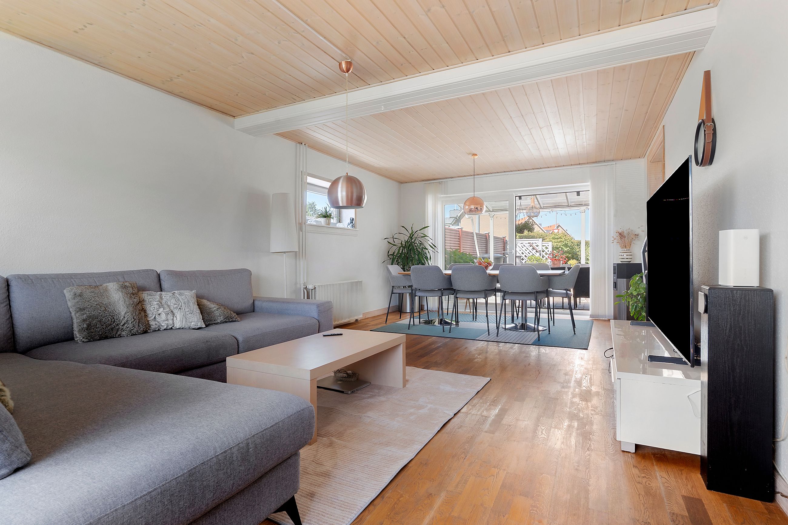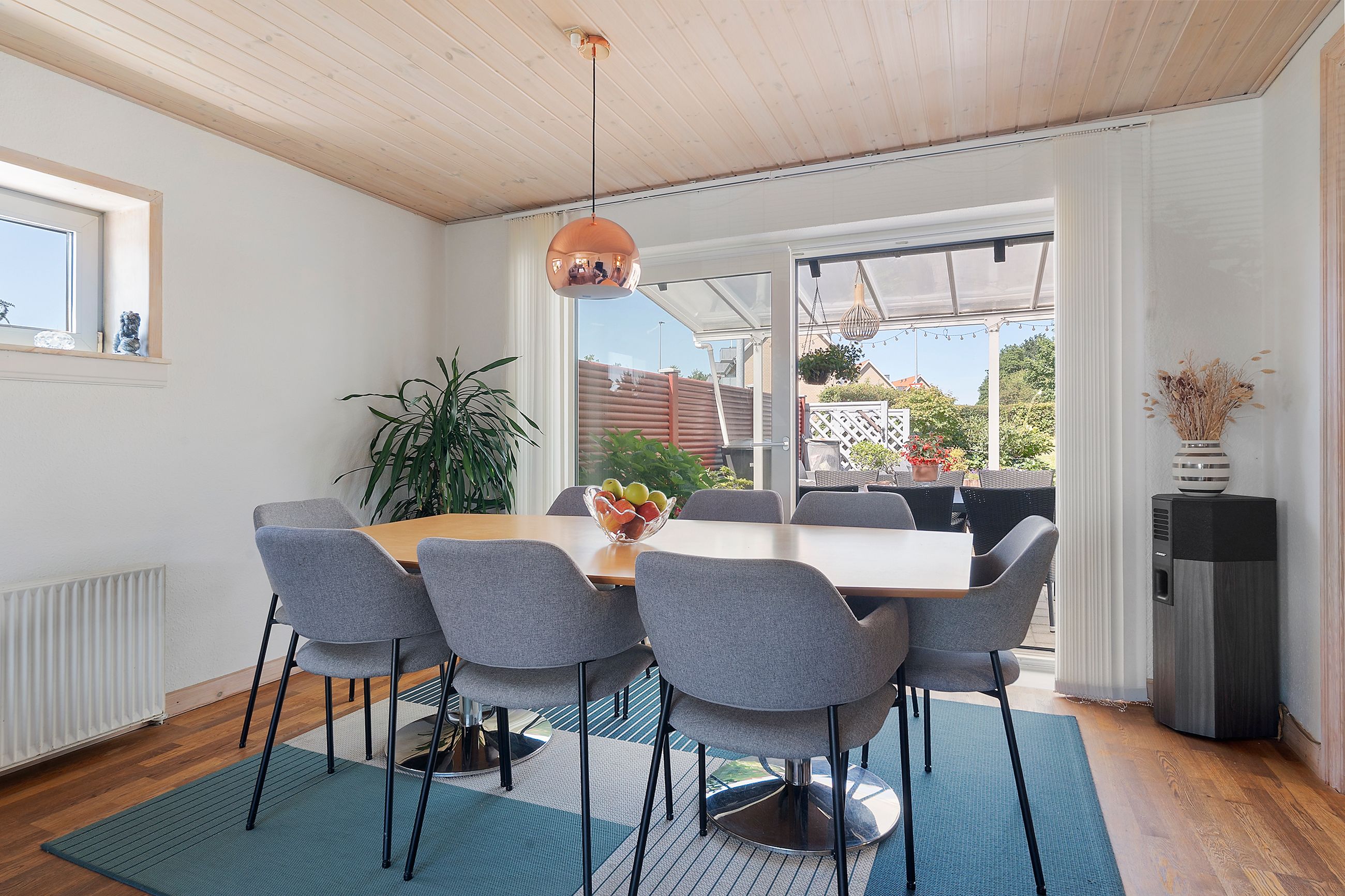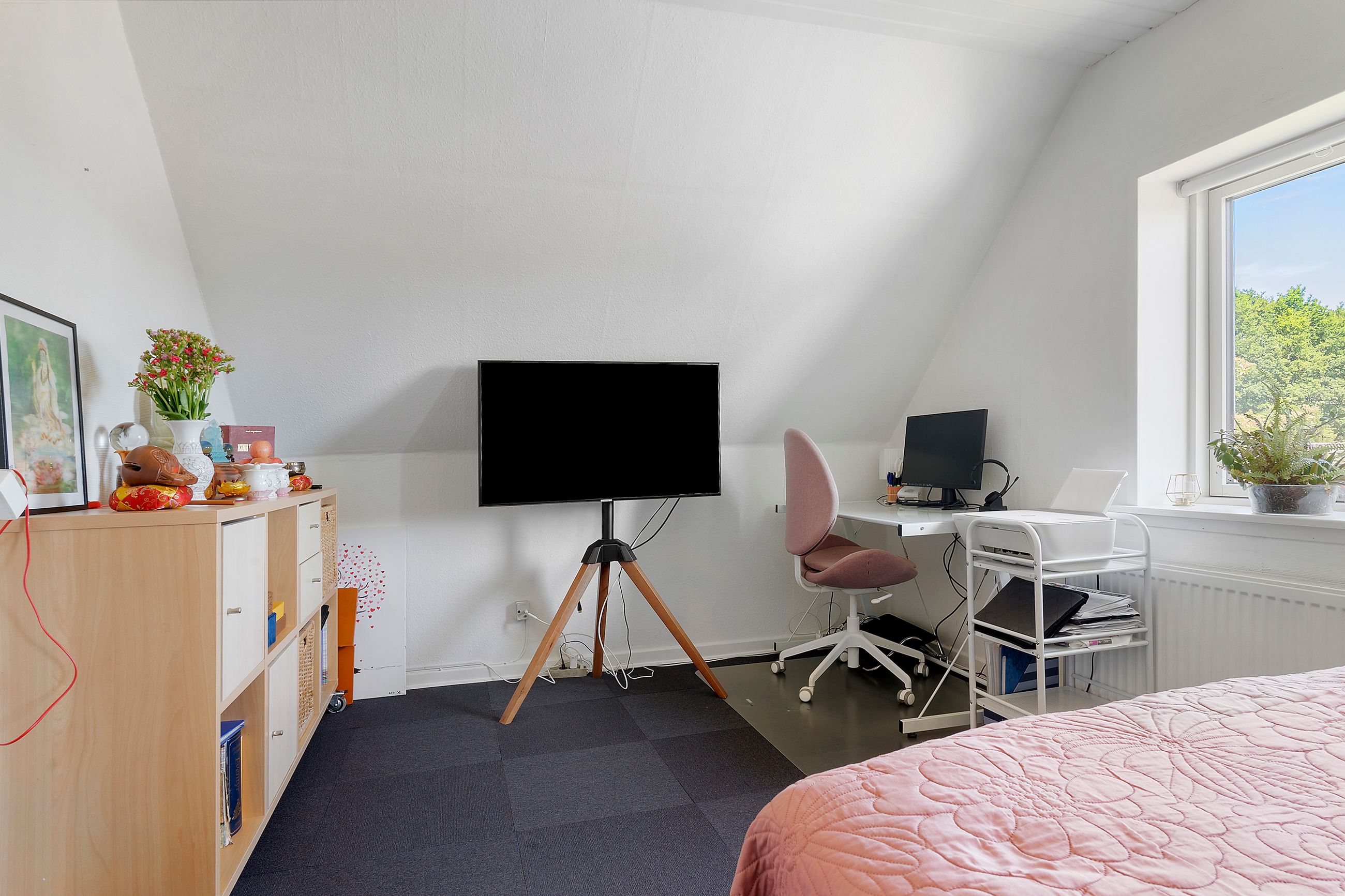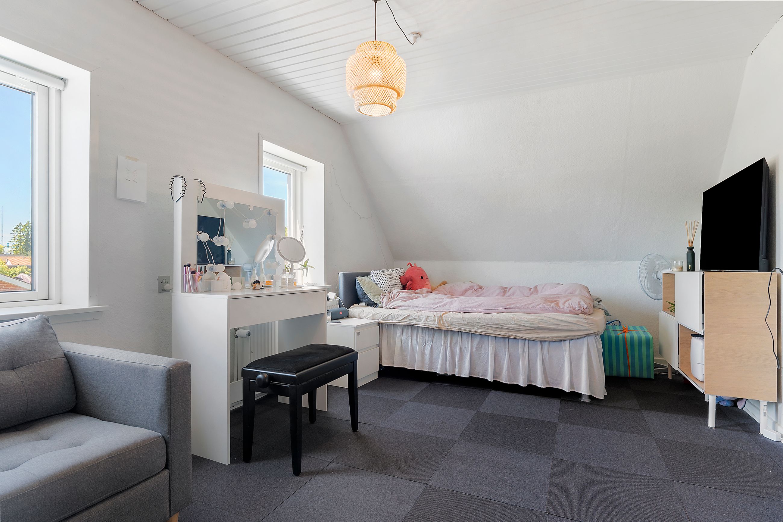 Fra køkkenet har du direkte adgang til spisestuen, som nyder godt af et fantastisk lysindfald og ligger i forlængelse af den rummelige stue. Stueetagen rummer også en entré, hvorfra der er adgang til et soveværelse samt et badeværelse, der blev renoveret i 2019. På førstesalen finder du en repos, der fører dig videre til to dejlige værelser samt et mindre disponibelt rum og endnu et toilet – ideelt for børnefamilien eller som gæsteværelser.