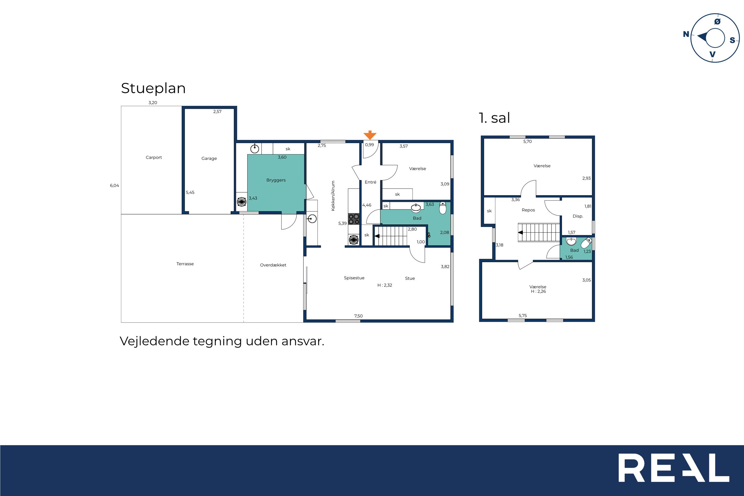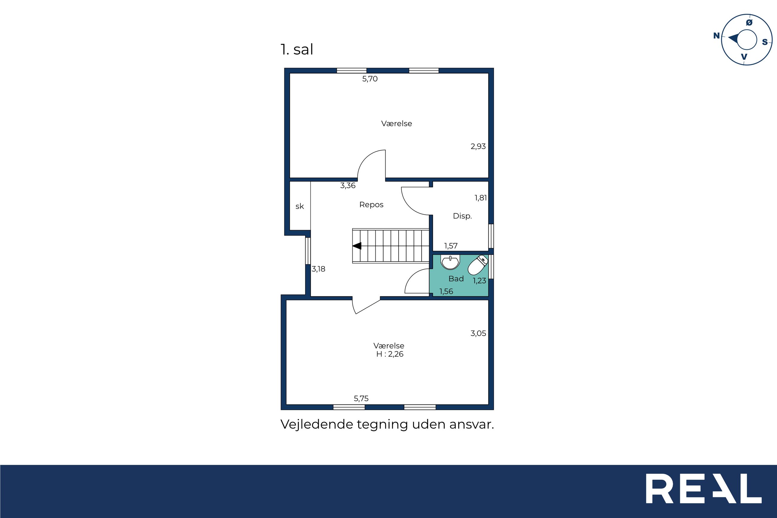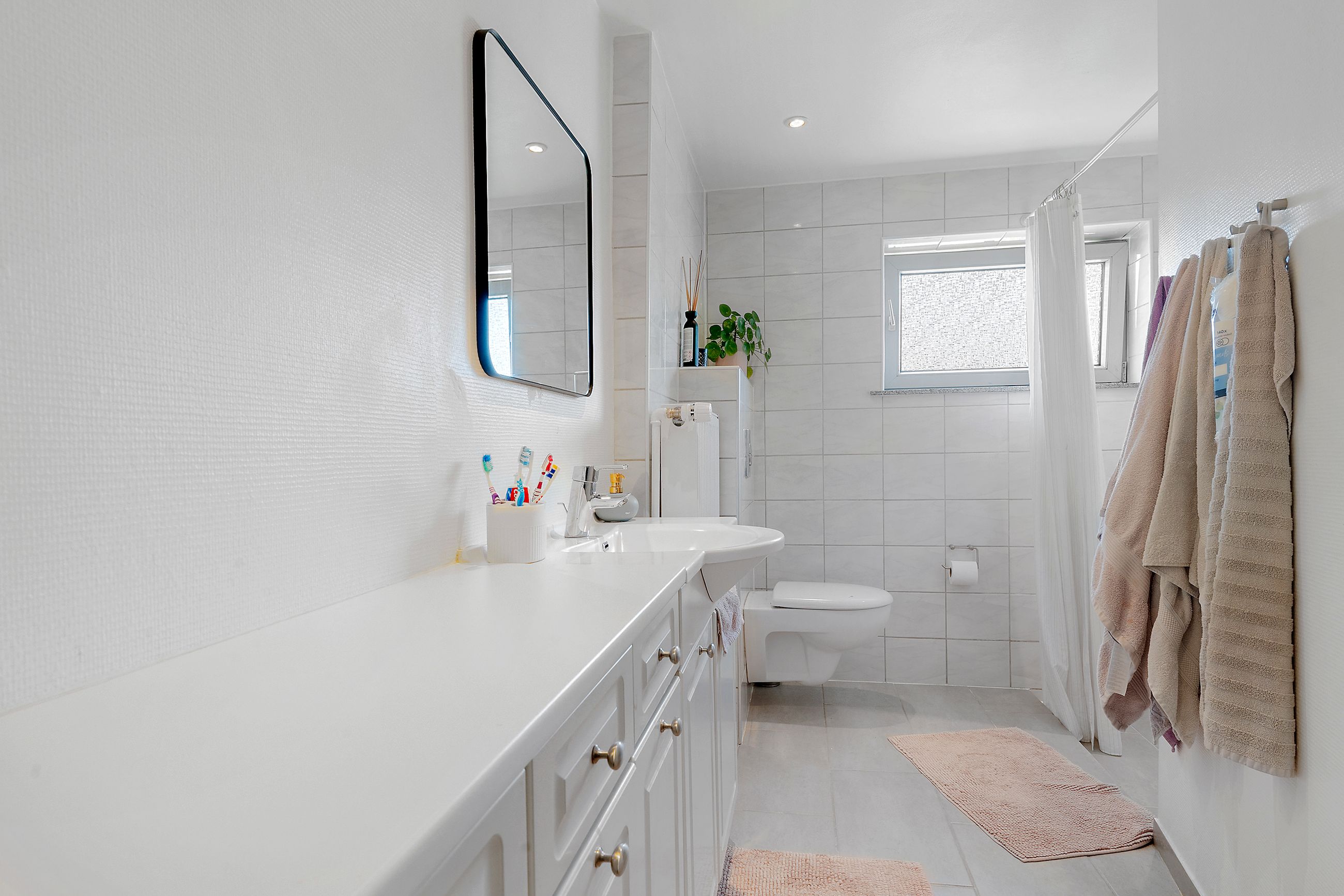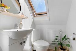 Fra køkkenet har du direkte adgang til spisestuen, som nyder godt af et fantastisk lysindfald og ligger i forlængelse af den rummelige stue. Stueetagen rummer også en entré, hvorfra der er adgang til et soveværelse samt et badeværelse, der blev renoveret i 2019. På førstesalen finder du en repos, der fører dig videre til to dejlige værelser samt et mindre disponibelt rum og endnu et toilet – ideelt for børnefamilien eller som gæsteværelser.