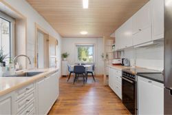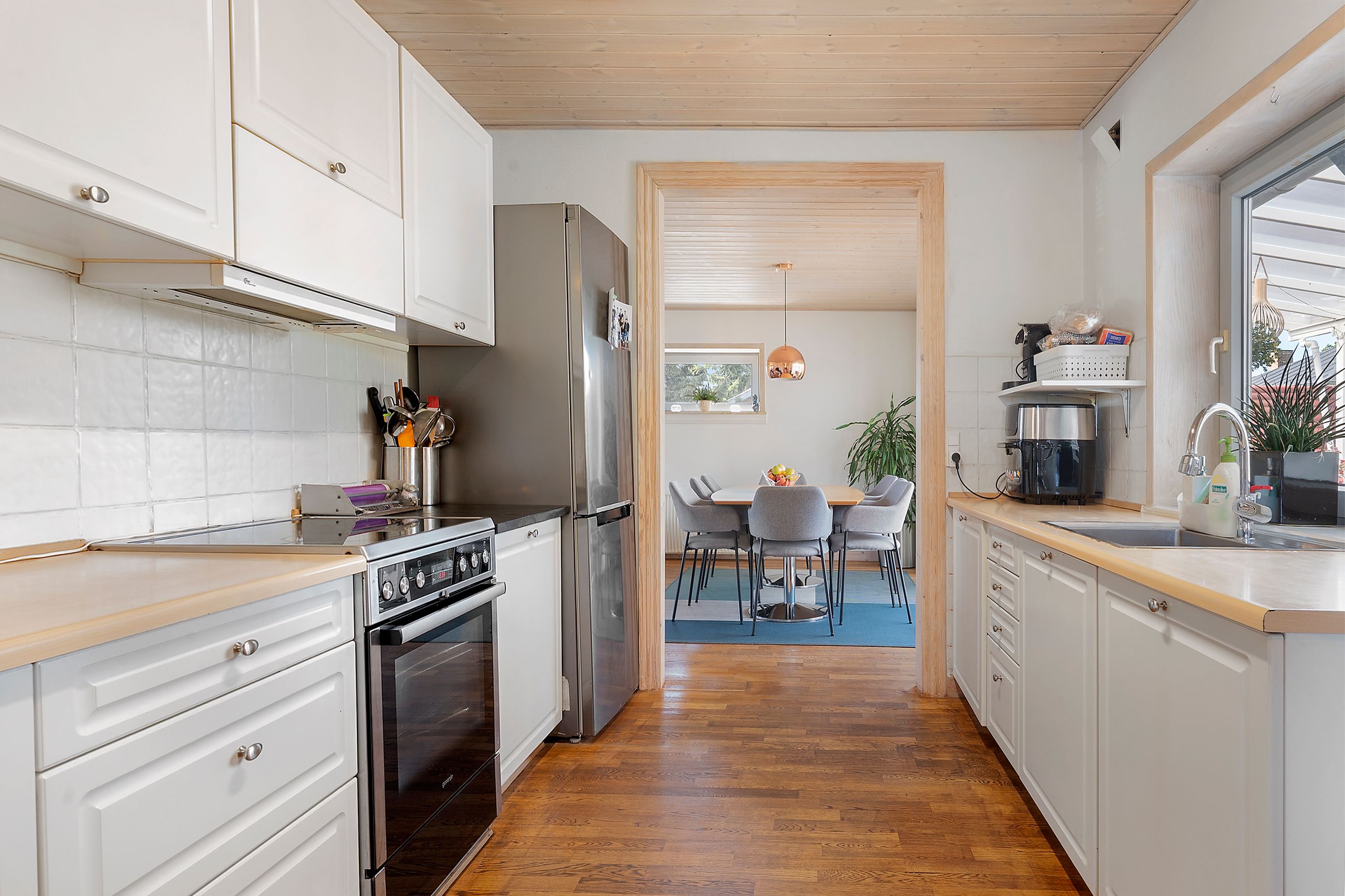 Velkommen til denne villa fra 1932, der byder på et boligareal på hele 153 kvadratmeter. Ejendommen er ideel for dem, der ønsker at sætte deres eget præg på en bolig med mange muligheder. Når du træder ind i huset, mødes du af et praktisk bryggers, renoveret i 2020 og som er udstyret med en vaskesøjle samt rigelig plads til opbevaring. Herfra ledes du videre til det hyggelige køkken, hvor der er indrettet en lille spiseplads – perfekt til de hurtige morgenmåltider eller hyggelige stunder med familien.