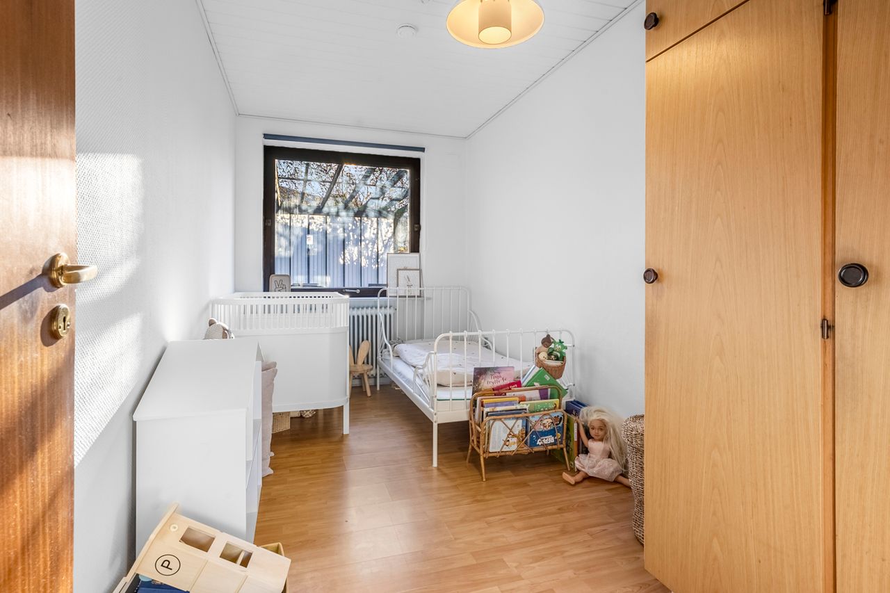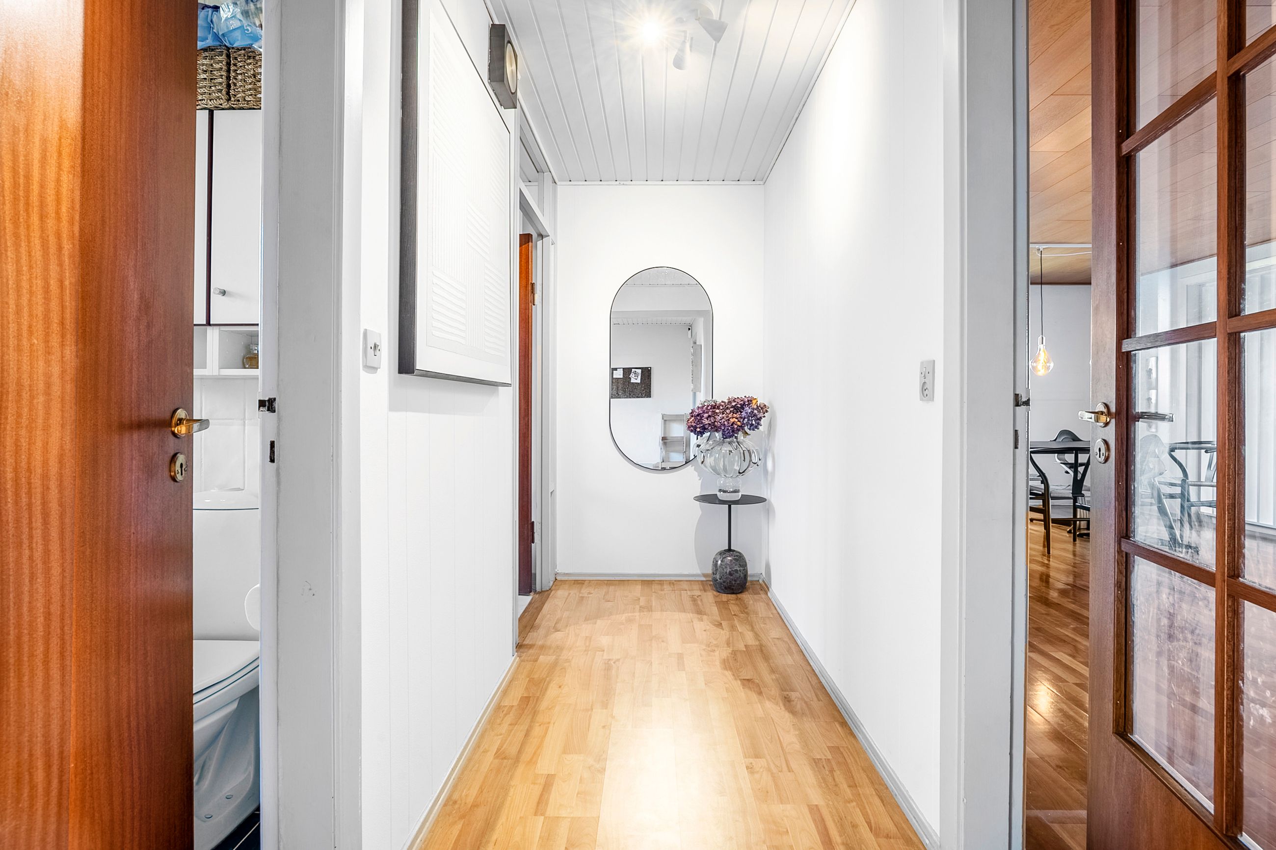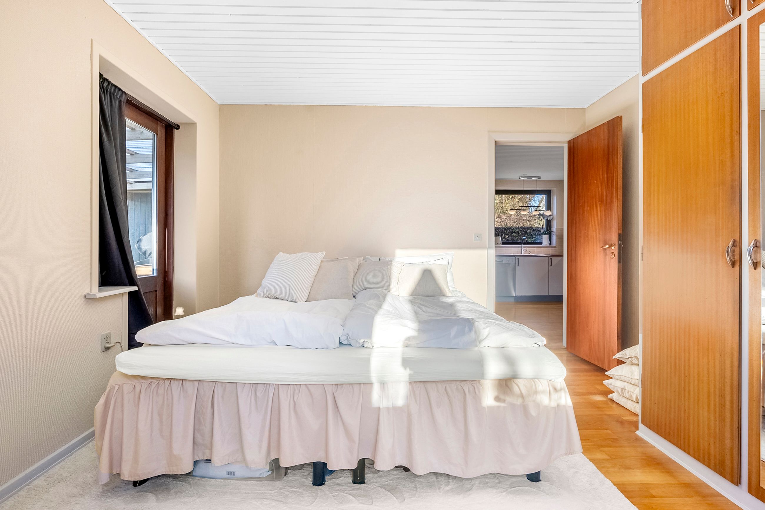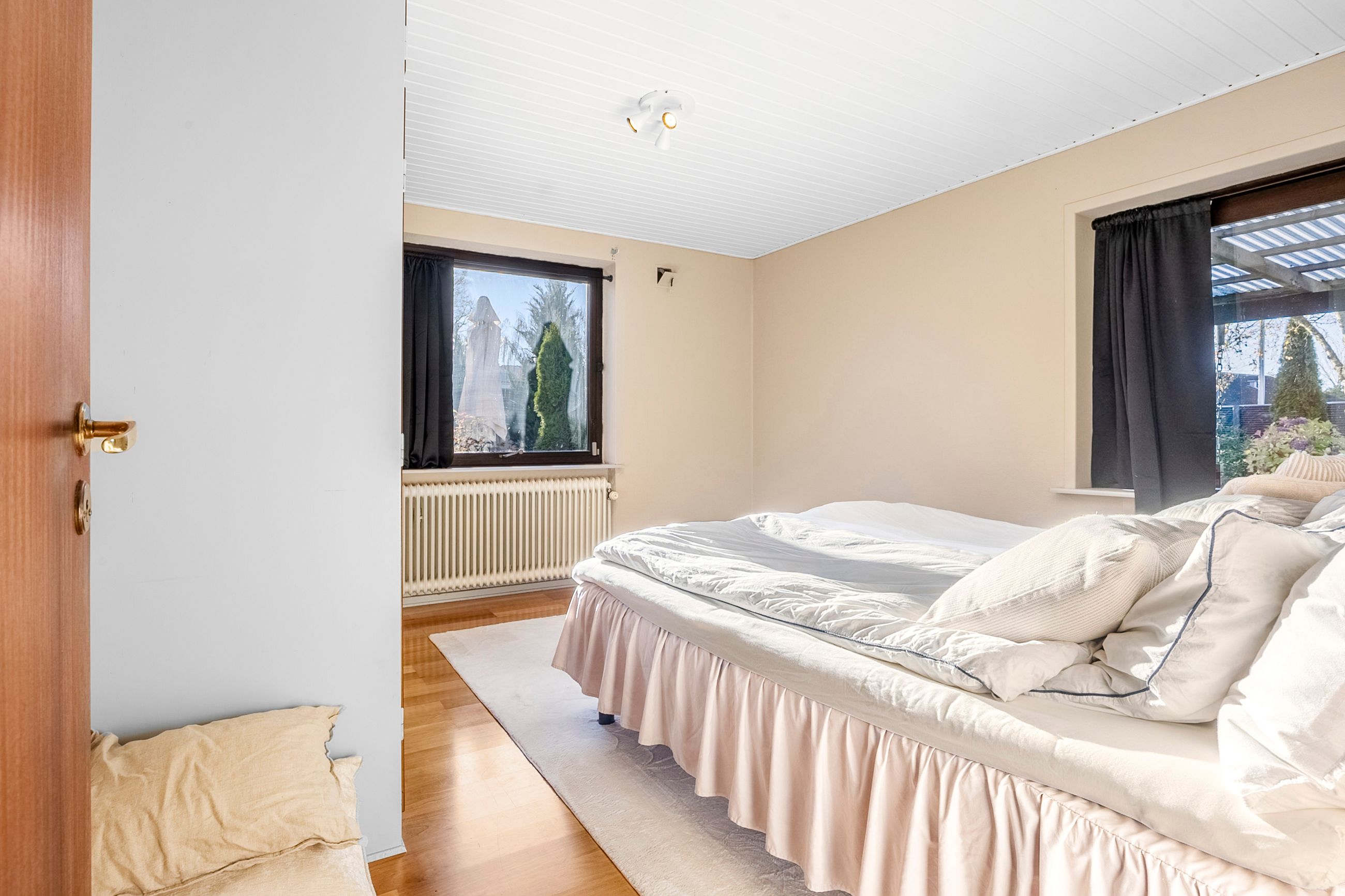 Boligen byder på tre gode værelser: Et lyst og rummeligt forældresoveværelse med indbyggede skabe, et oplagt børneværelse samt endnu et værelse, der både kan anvendes som ekstra børneværelse, kontor eller gæsteværelse.
