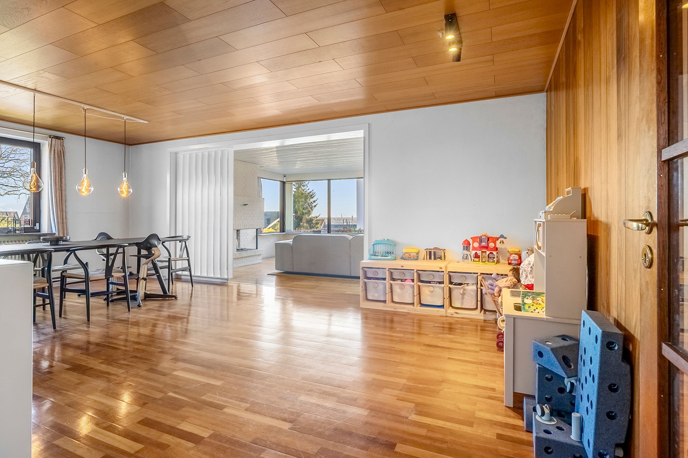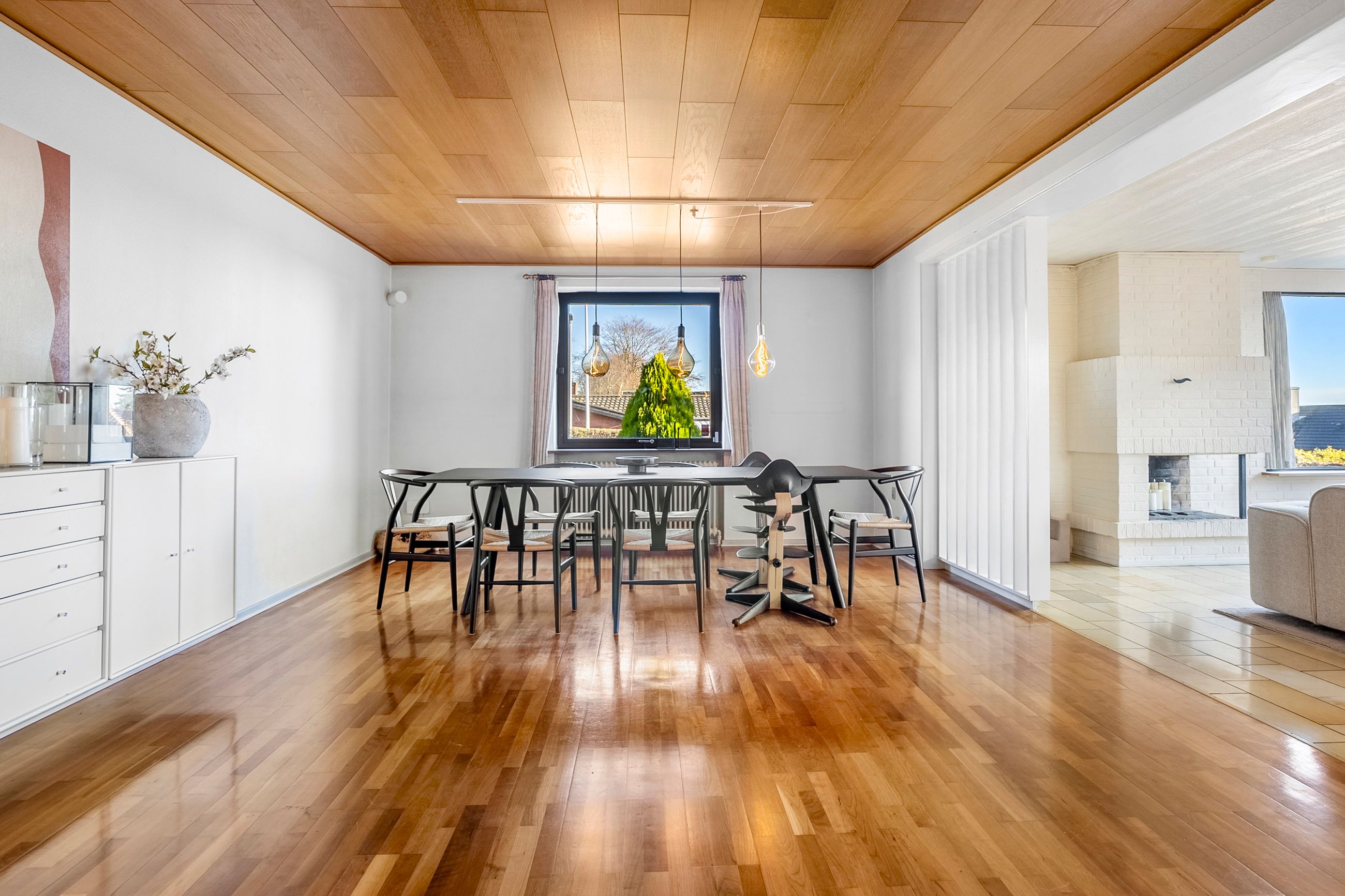 Når du træder indenfor, bydes du velkommen i en indbydende entré, som fører dig videre til boligens velproportionerede opholdsrum. Her venter et stueplan, der i den grad har potentiale til at blive hjemmets hjerte. Den store stue giver plads til både en rummelig spisestue og en hyggelig sofakrog – og det store vinduesparti sørger for et skønt lysindfald og en helt særlig udsigt over byens tage. Herfra er der direkte udgang til husets terrassemiljø, hvor udelivet kan nydes i fulde drag.