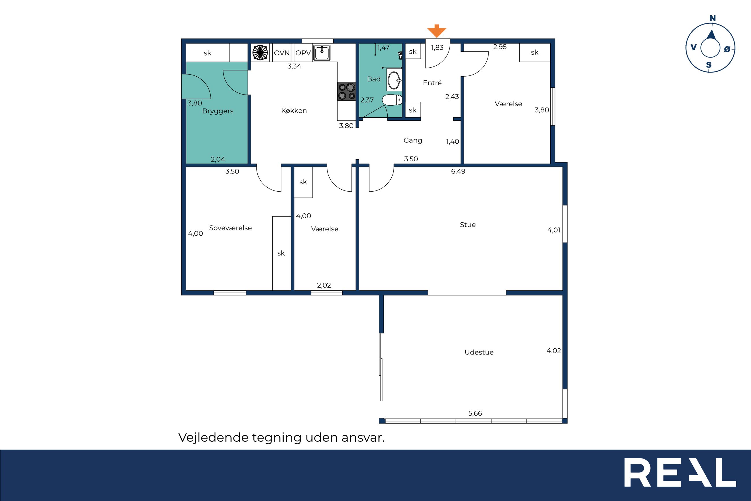 Hertil kommer et pænt og praktisk badeværelse samt et bryggers med egen udgang til den skønne have.
