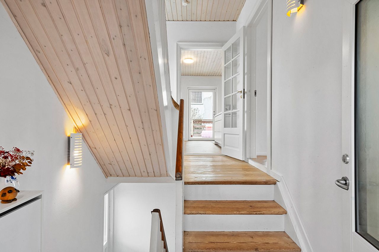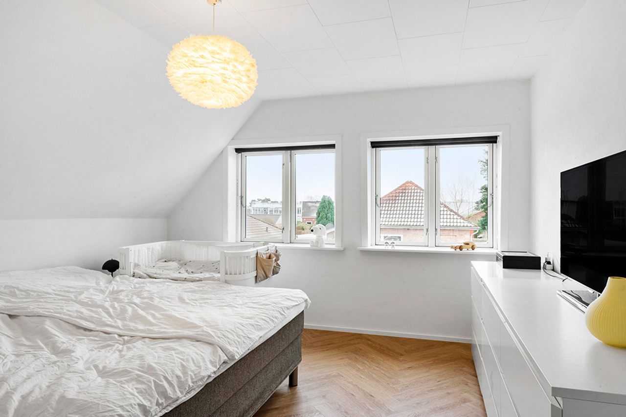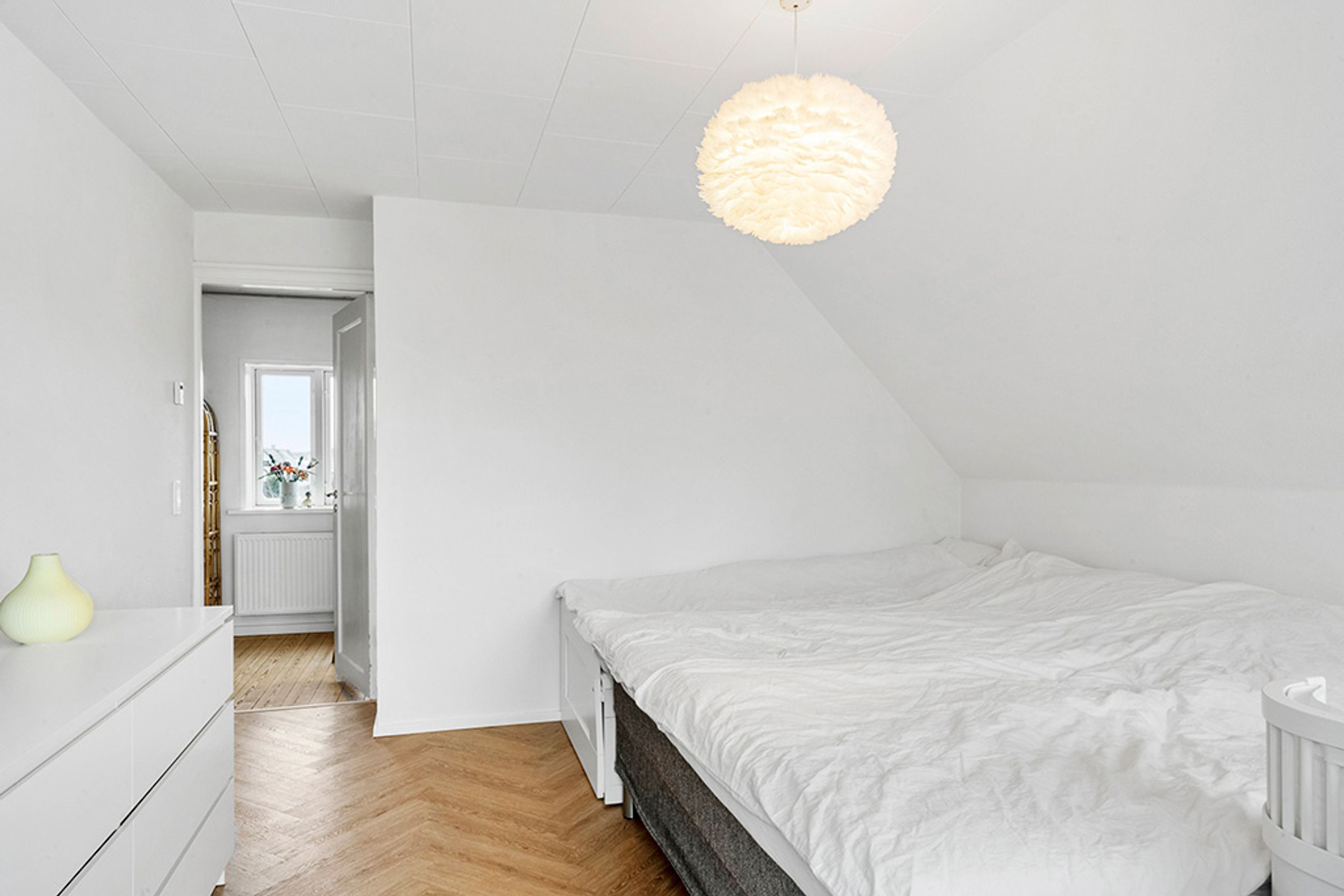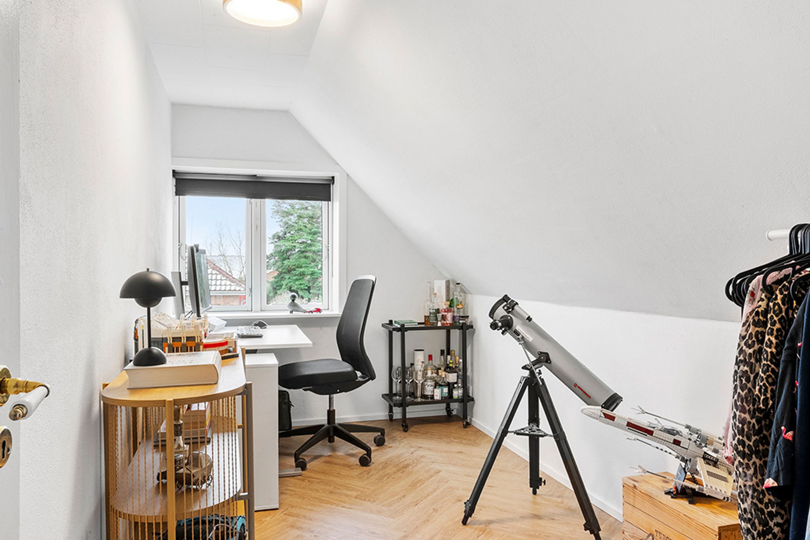 På førstesalen finder du et stort forældresoveværelse, endnu et værelse – oplagt som børneværelse eller kontor – samt et stilrent badeværelse.