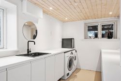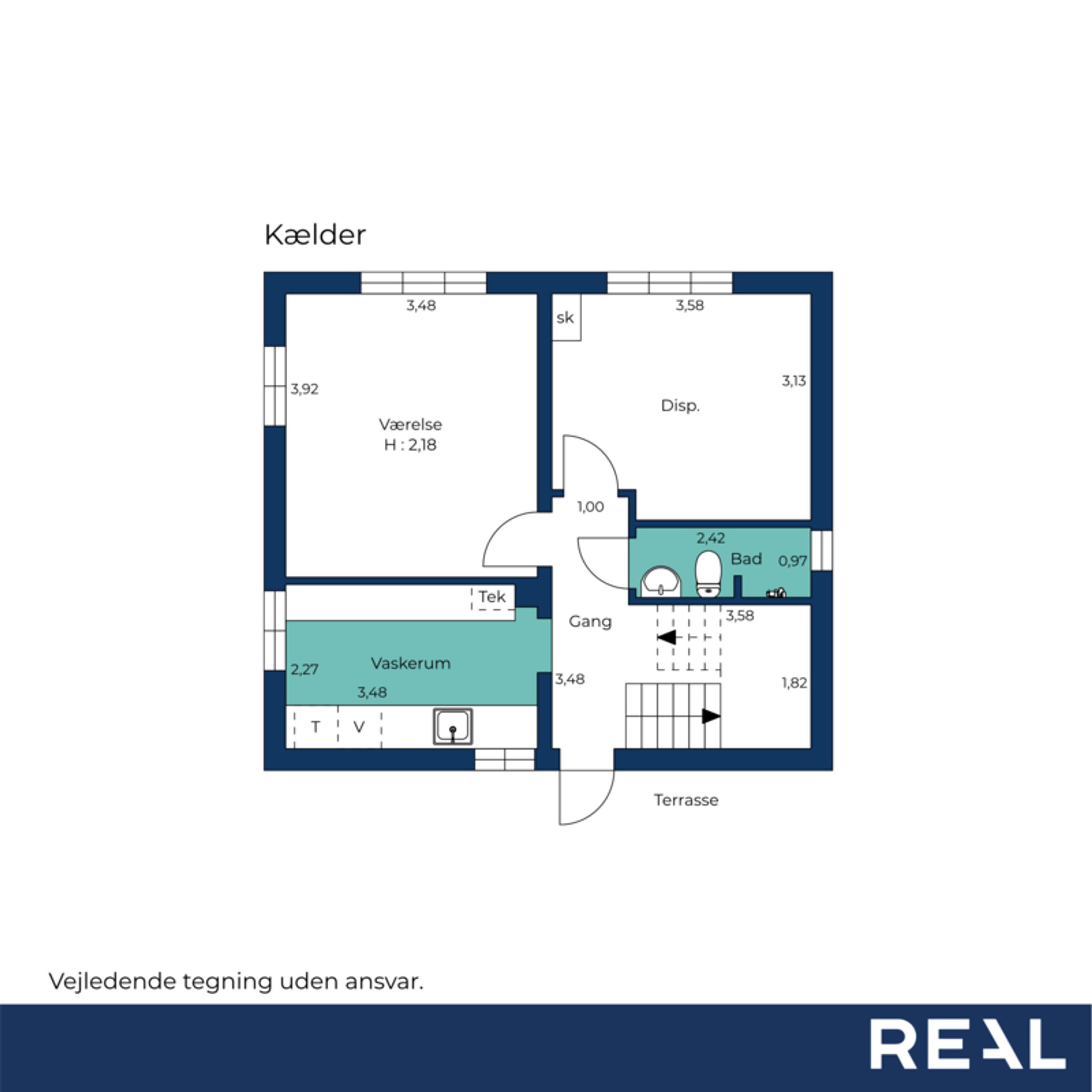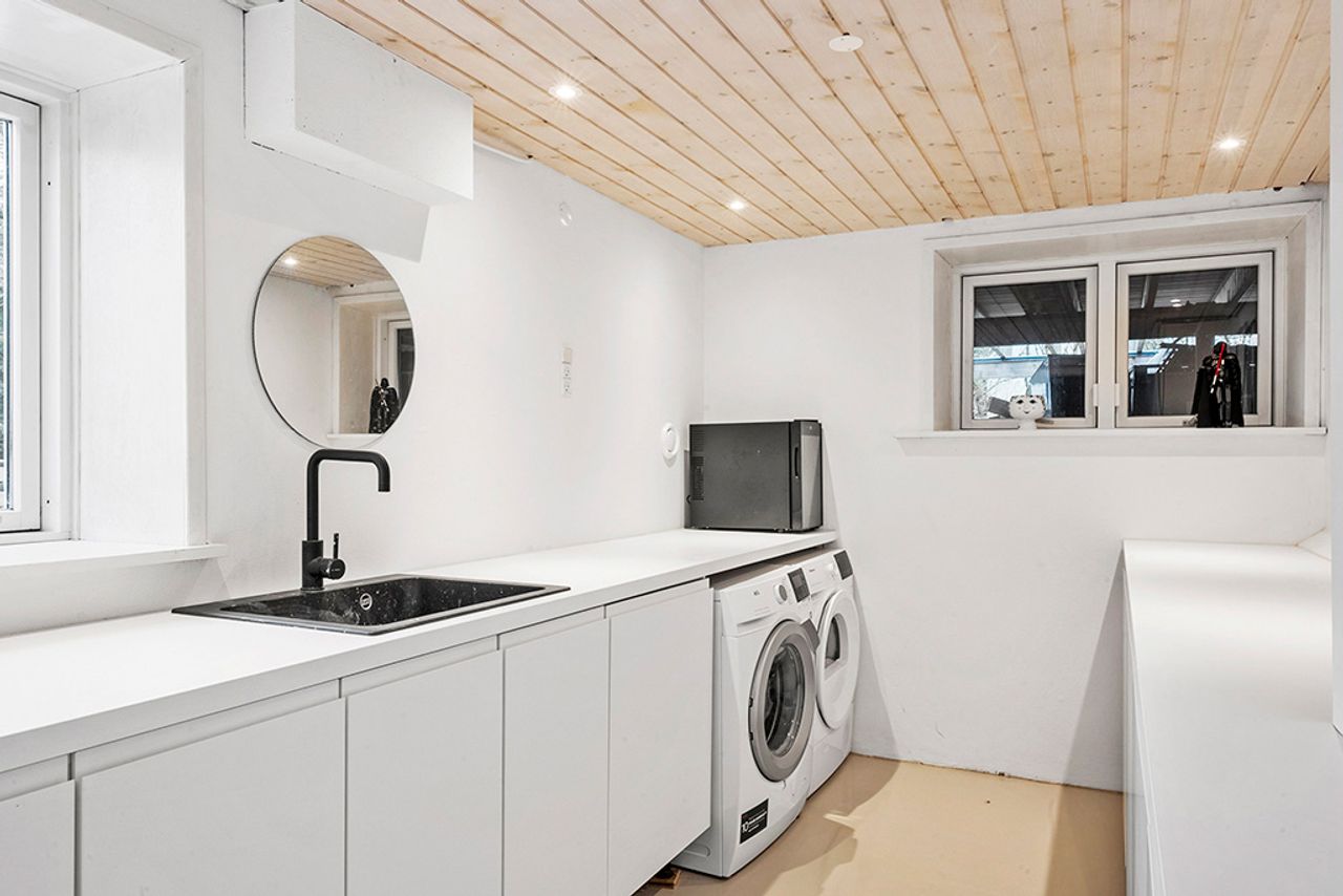 Kælderen er en integreret del af boligen og rummer et værelse og et ekstra disponibelt rum, der eksempelvis kan indrettes som en perfekt teenageafdeling eller hobbyrum. Hertil kommer et flot renoveret bryggers og endnu et badeværelse. Fra kælderen er der direkte udgang til haven.