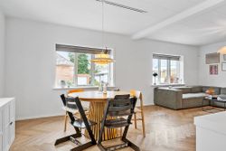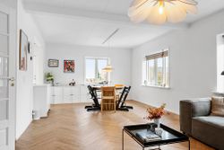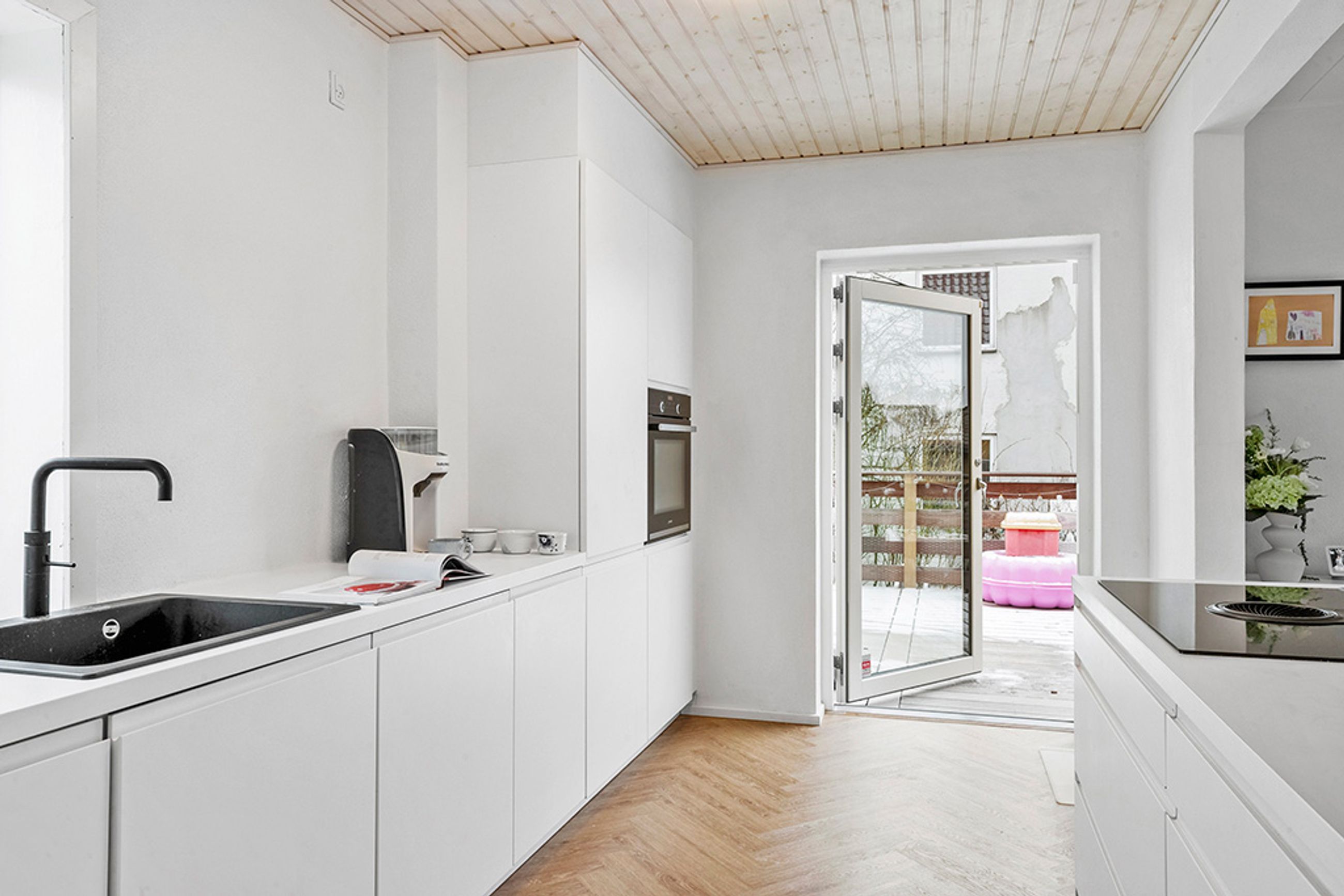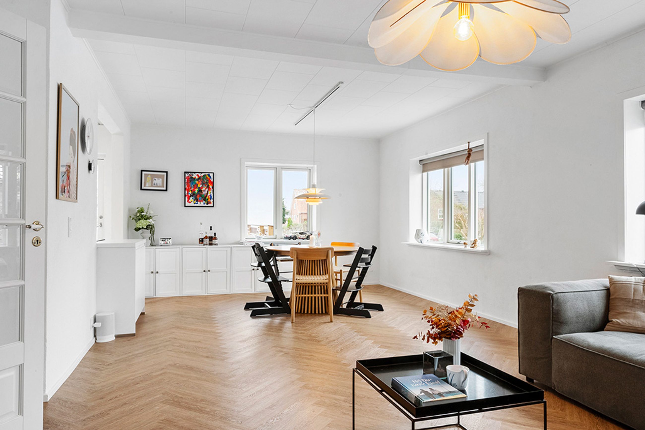 Indenfor mødes du af en villa, der er istandsat fra A-Z og fremstår lys, rummelig, indflytningsklart og med bl.a. gulvvarme i alle husets leverum. I stueplan ligger boligens hjerte: et dejligt køkken-alrum med spiseplads i åben forbindelse til stuen. Køkkenet er fra Vordingborg og fremstår både tidløst og funktionelt, og herfra er der direkte udgang til den hyggelige terrasse.