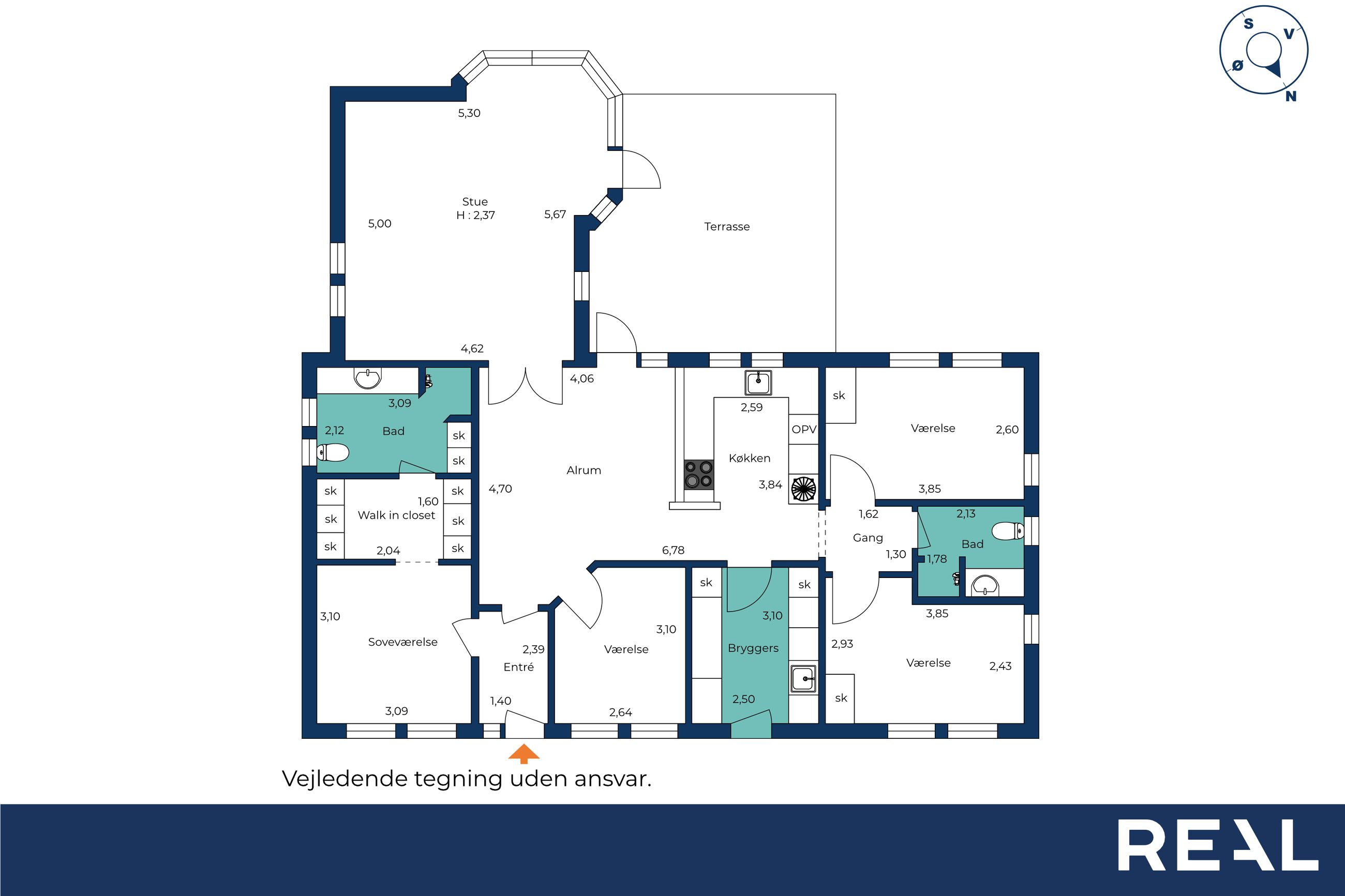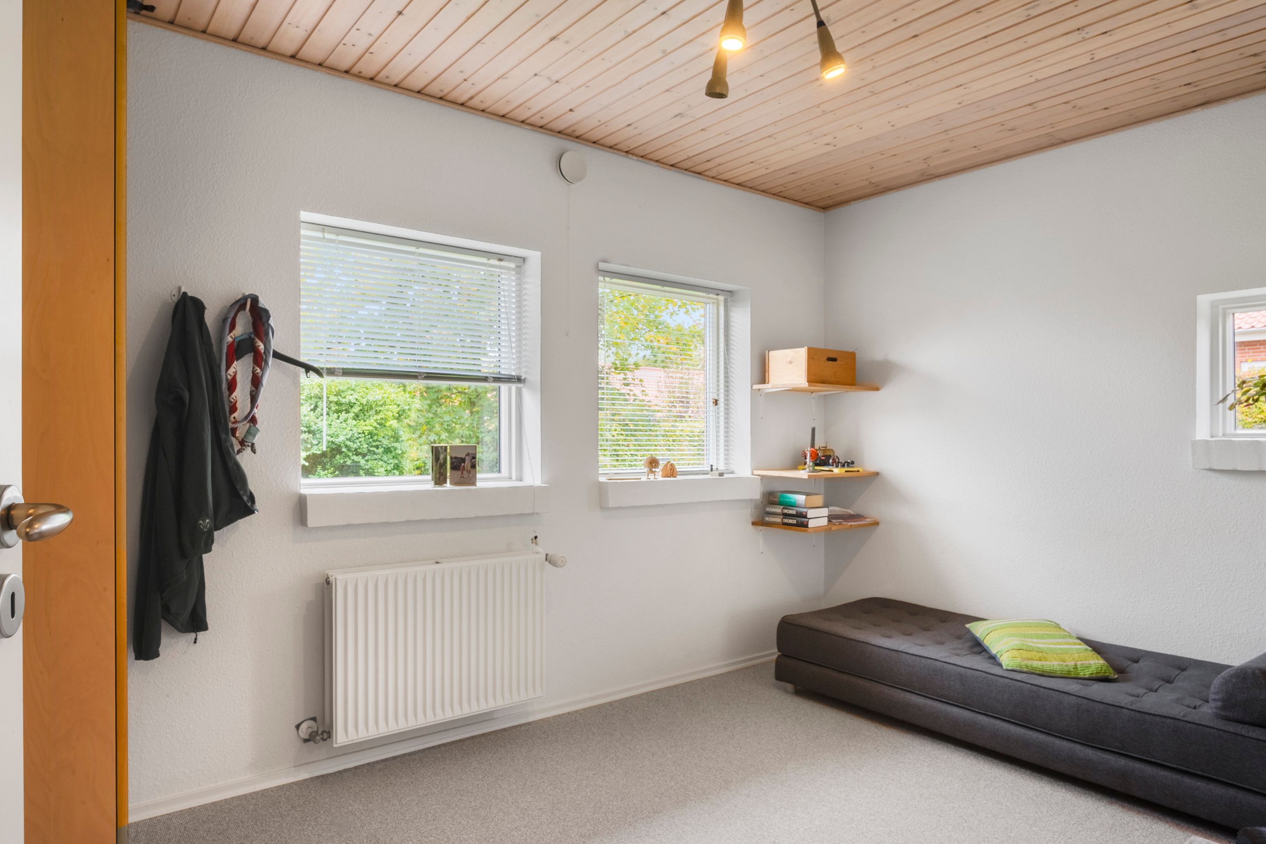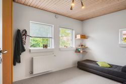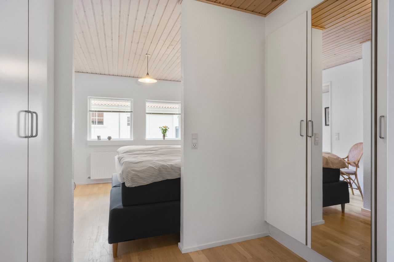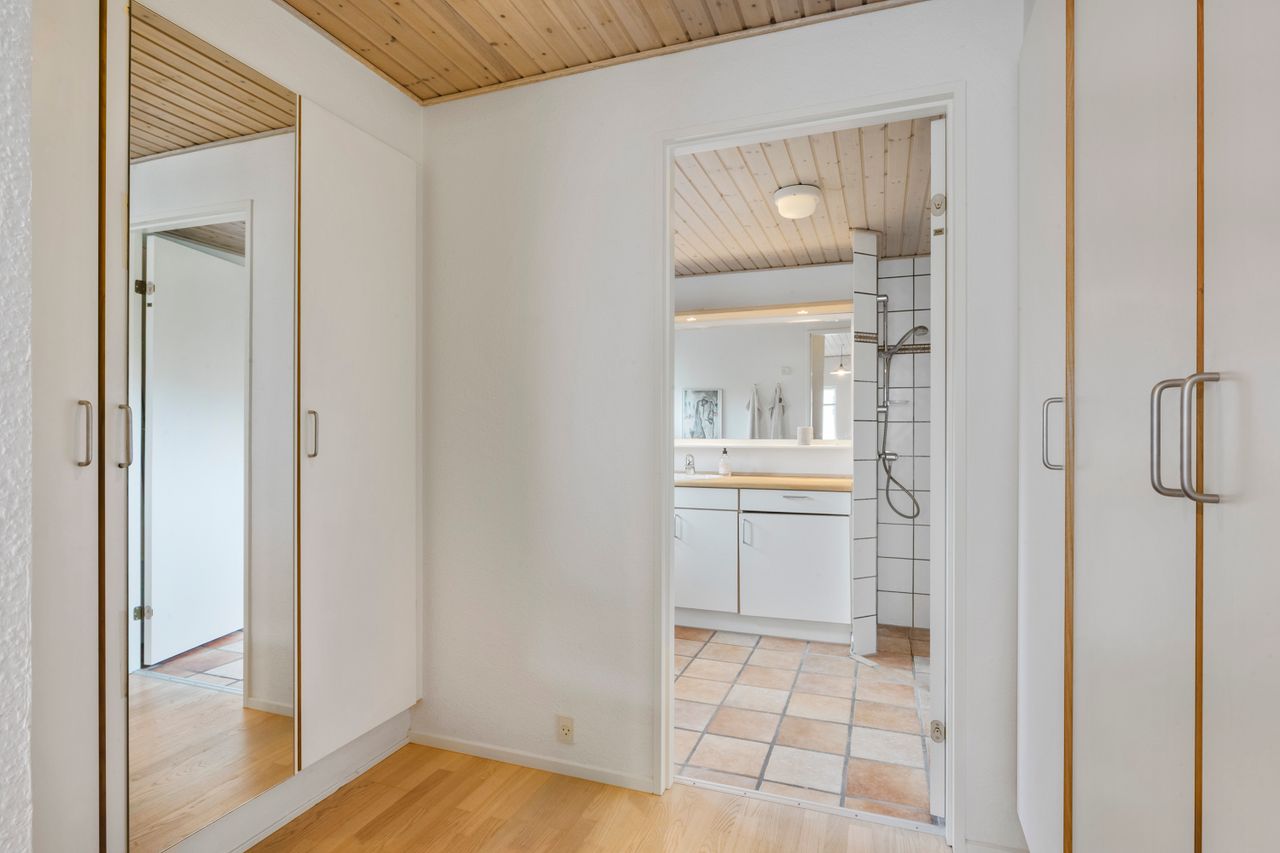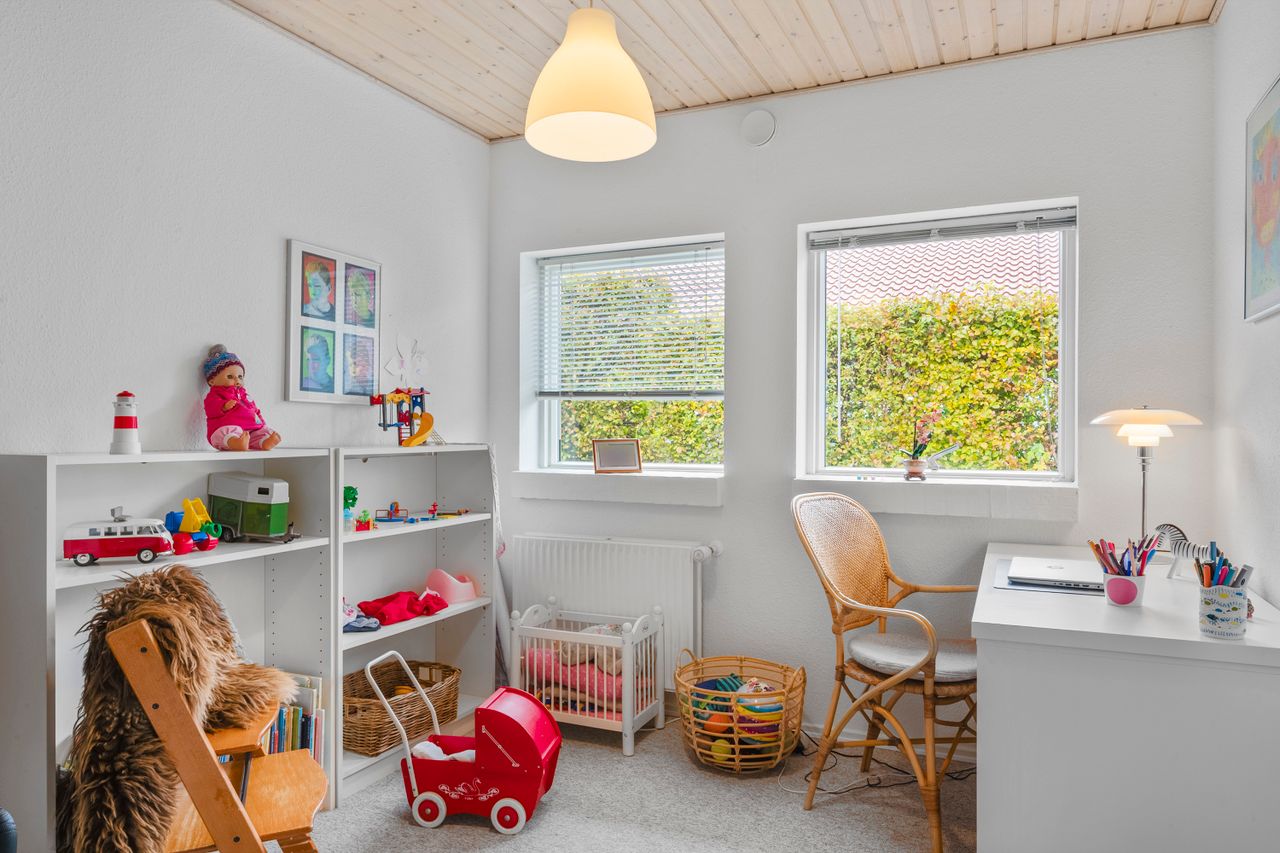 Forældreafdelingen byder på et stort soveværelse med walk-in closet og eget badeværelse – et privat fristed i hverdagens travlhed. I husets modsatte ende finder I børneafdelingen med to gode værelser og endnu et badeværelse, så både børn og gæster får deres eget område. Dertil kommer et ekstra værelse, som kan anvendes som kontor, gæsteværelse eller hobbyrum alt efter behov.