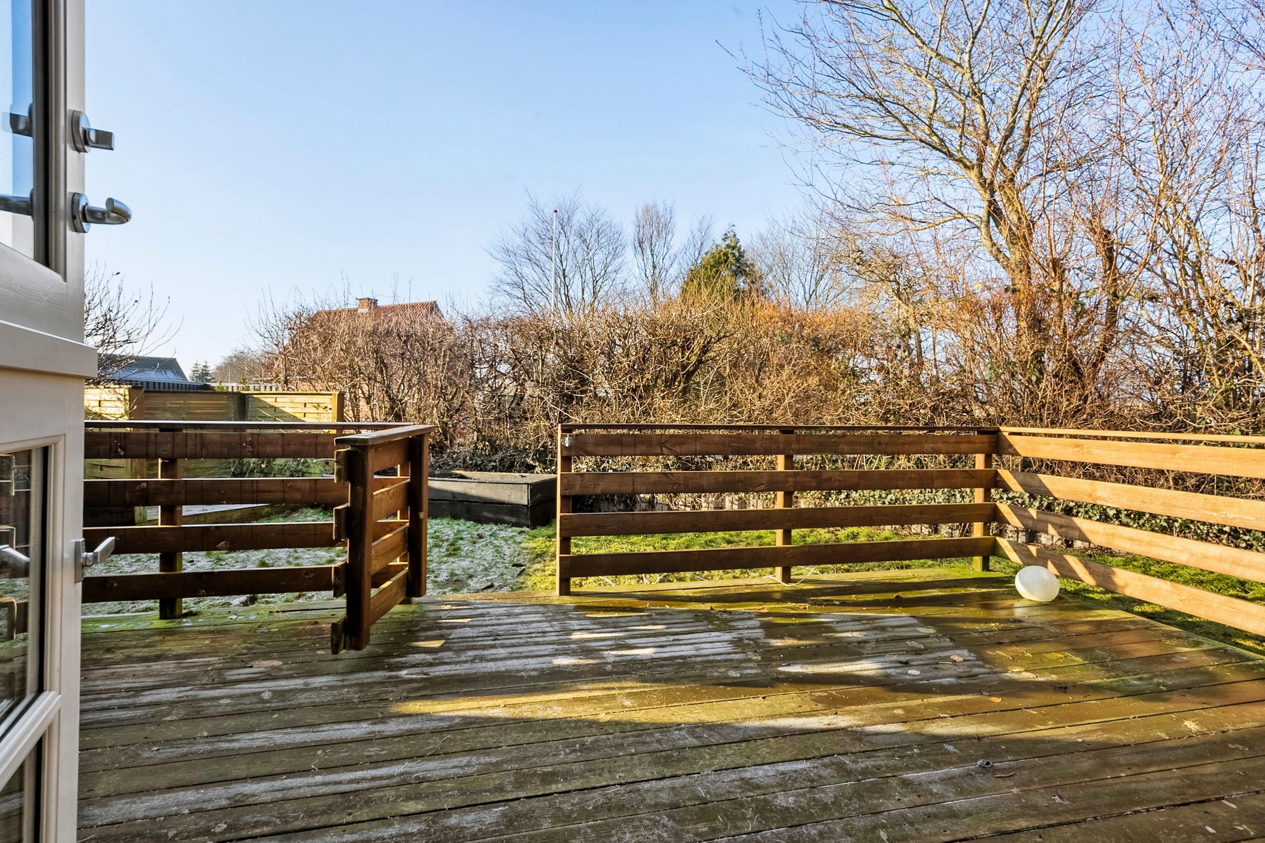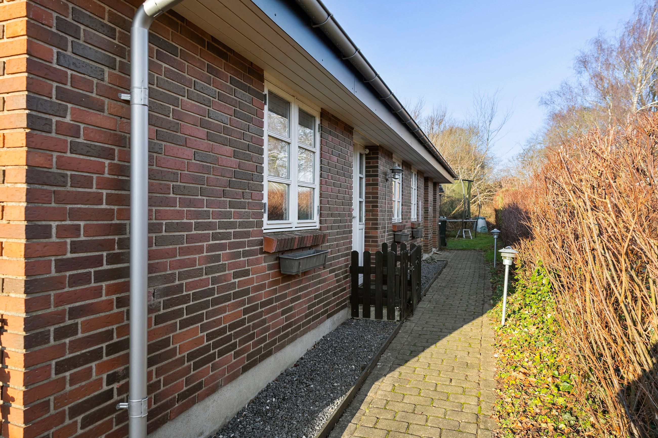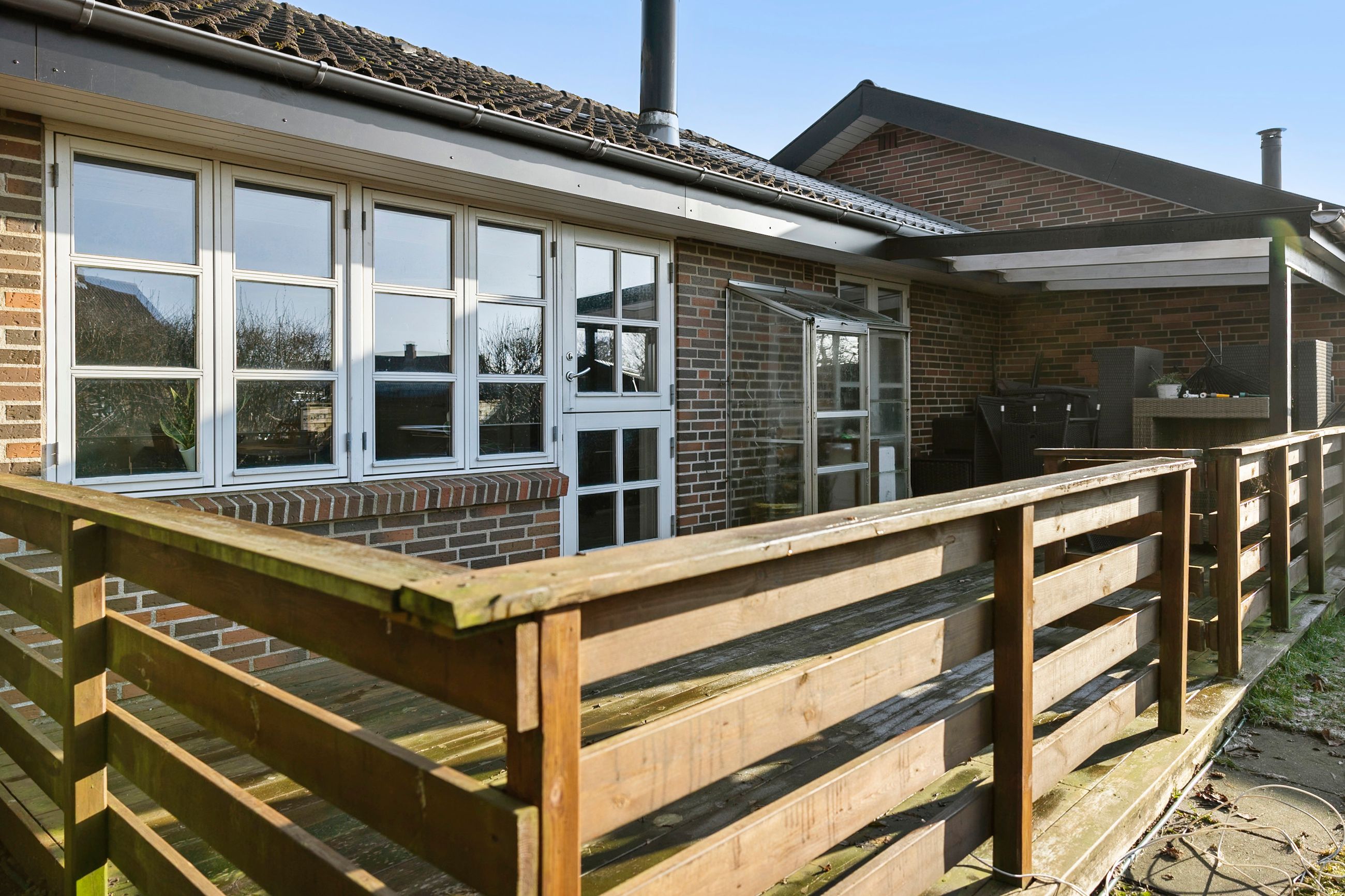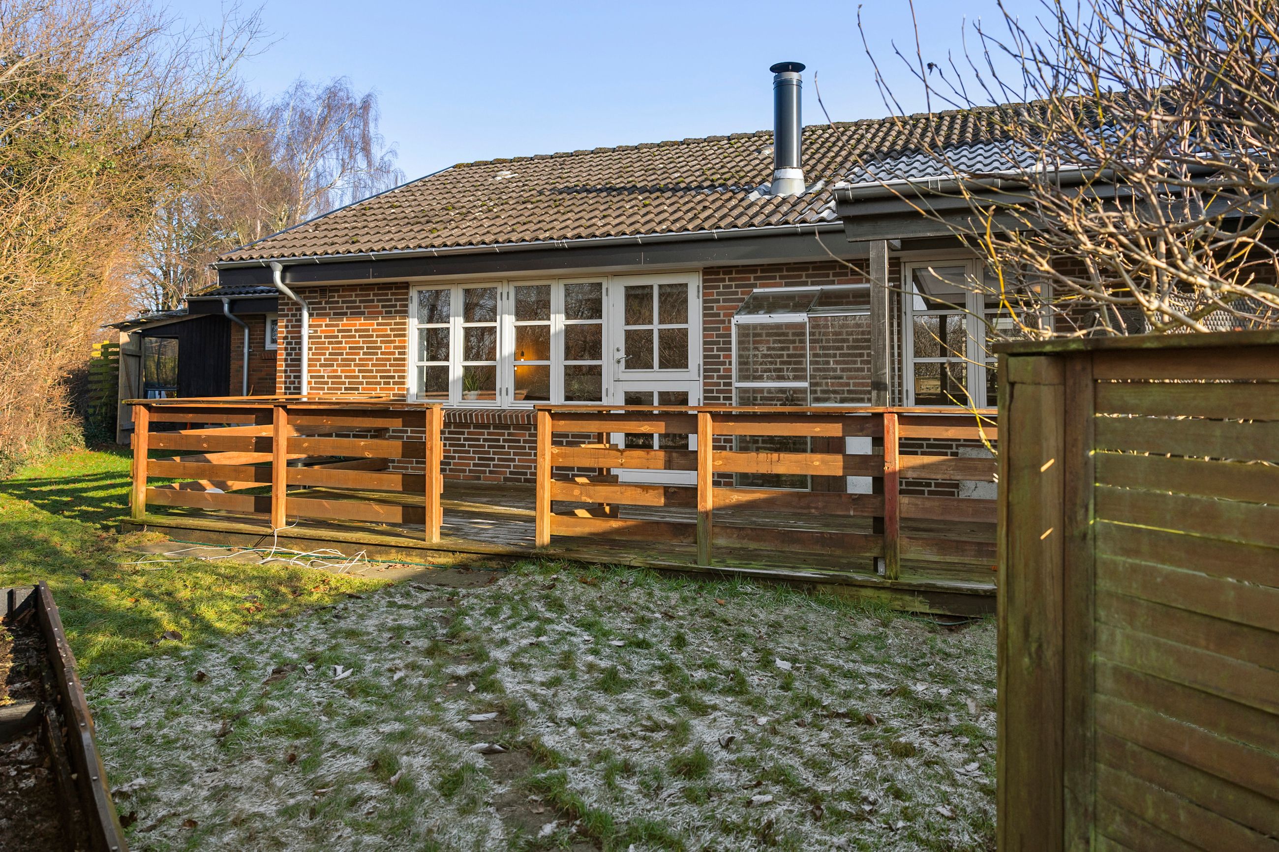 Udendørs finder du en charmerende træterrasse, hvor sommerens solrige dage kan nydes i fulde drag. Haven kræver minimal vedligeholdelse men giver alligevel mulighed for grønne fingre at udfolde sig eller blot nyde udendørslivet uforstyrret.