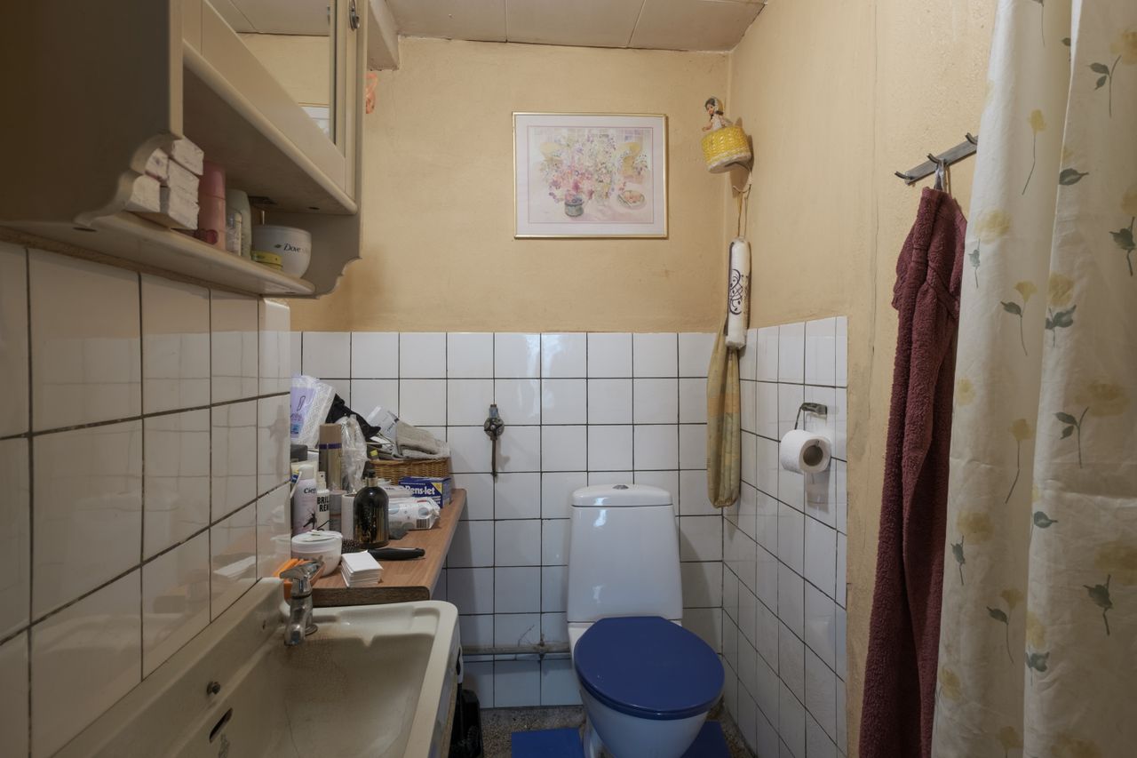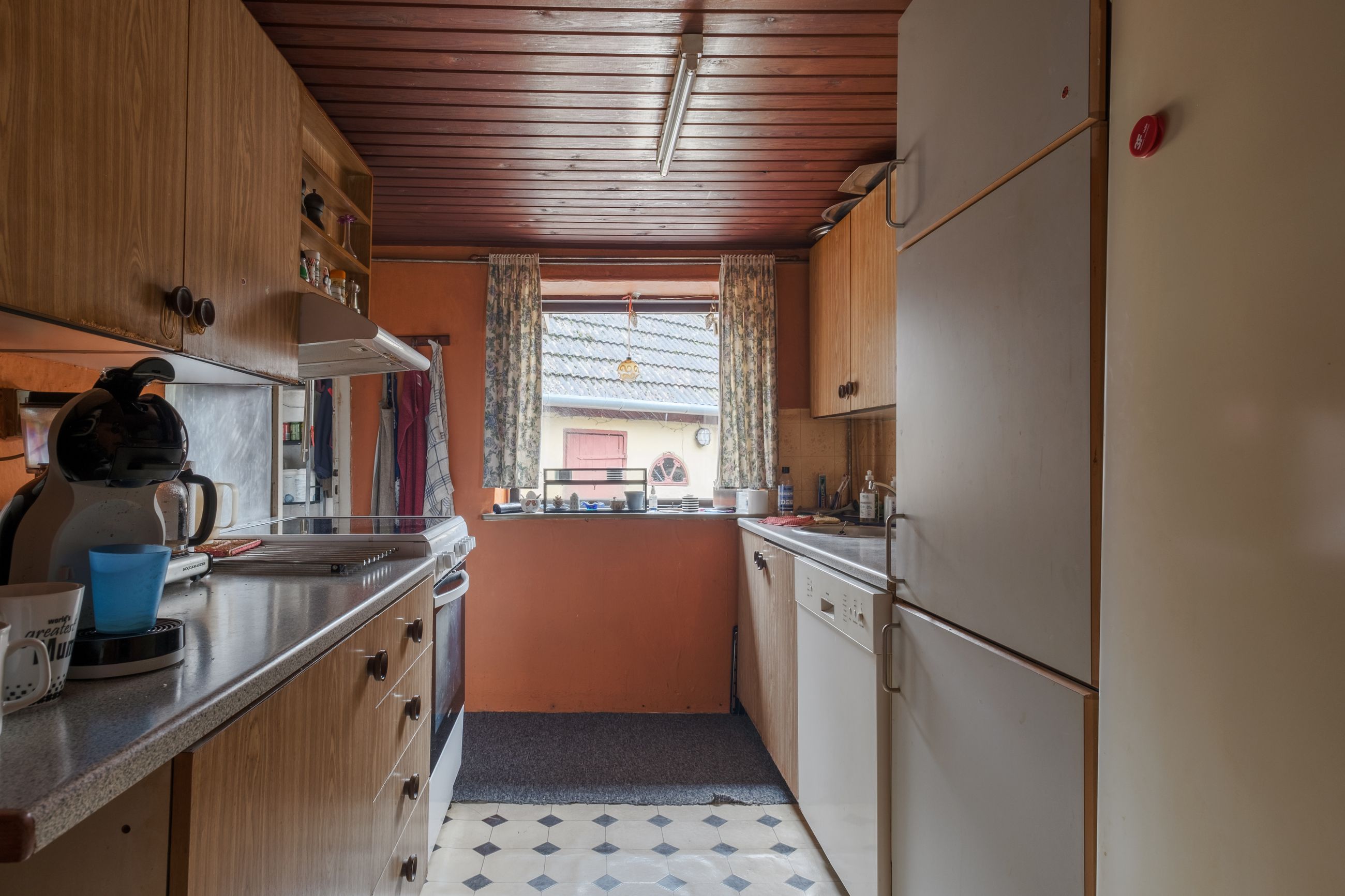 køkken, to badeværelser og en praktisk baggang. Selvom ejendommen trænger til en renovering, er der