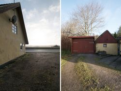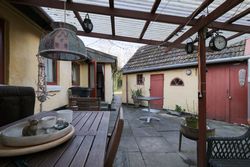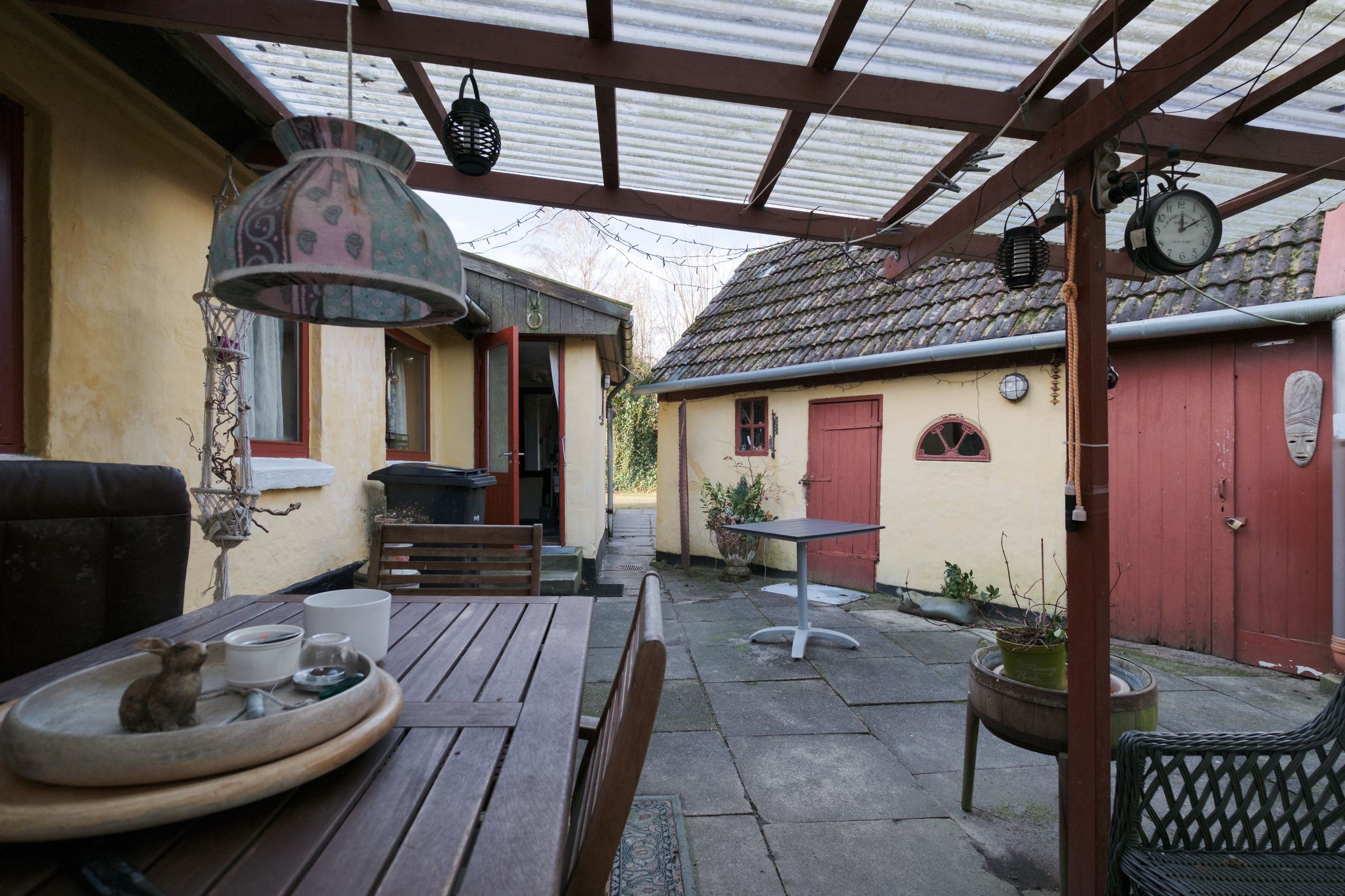 Udover hovedbygningen findes flere gode udbygninger, herunder en garage og flere mindre skure, der