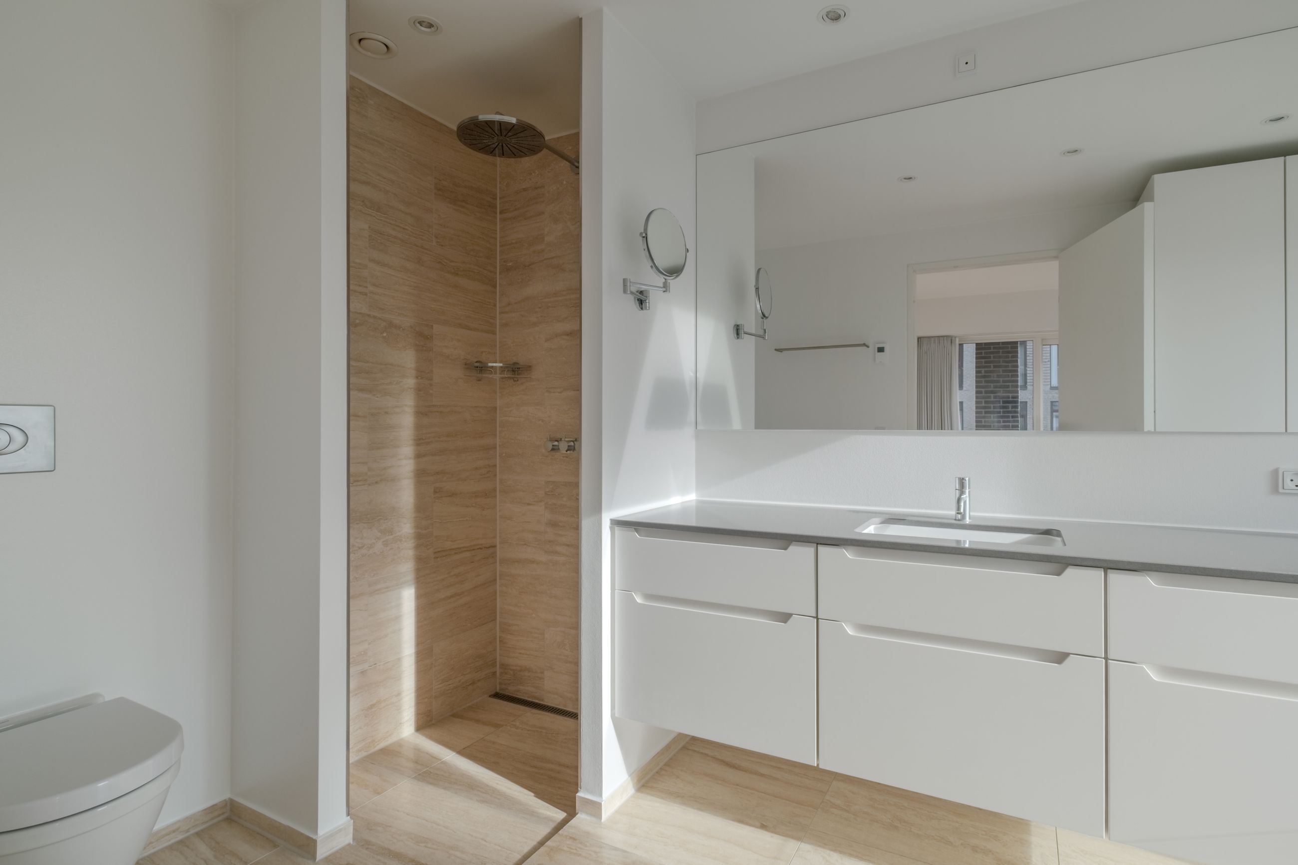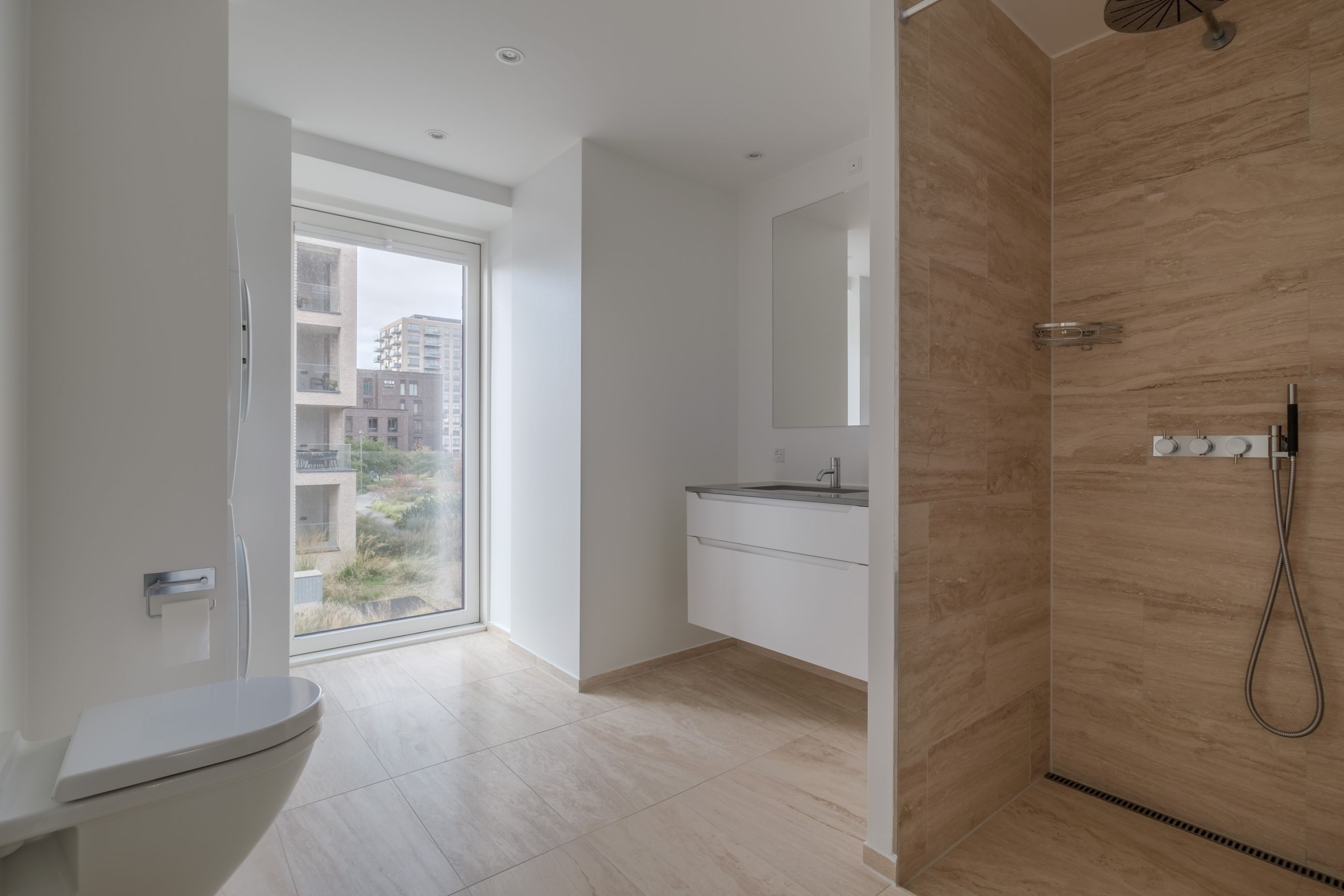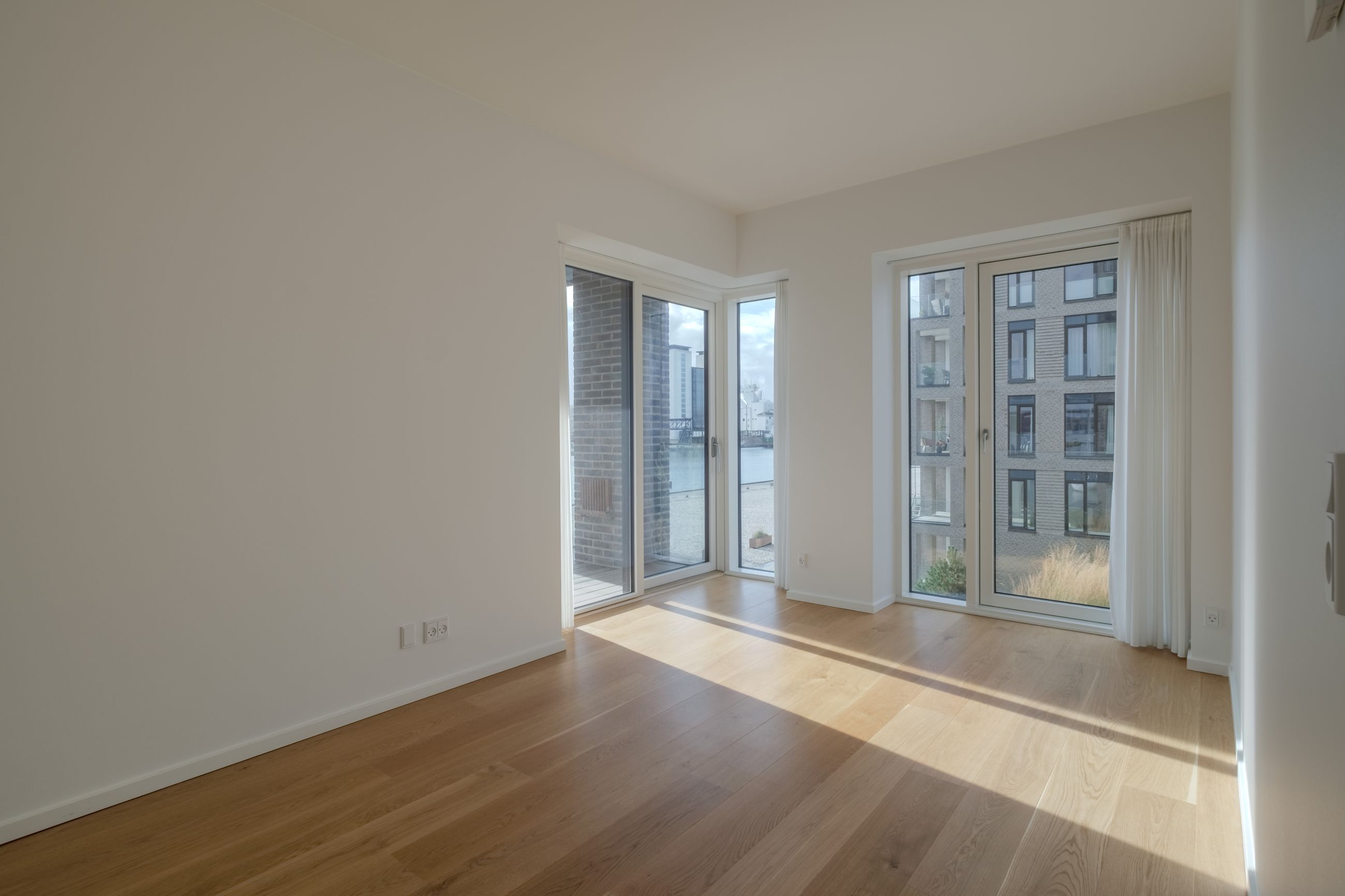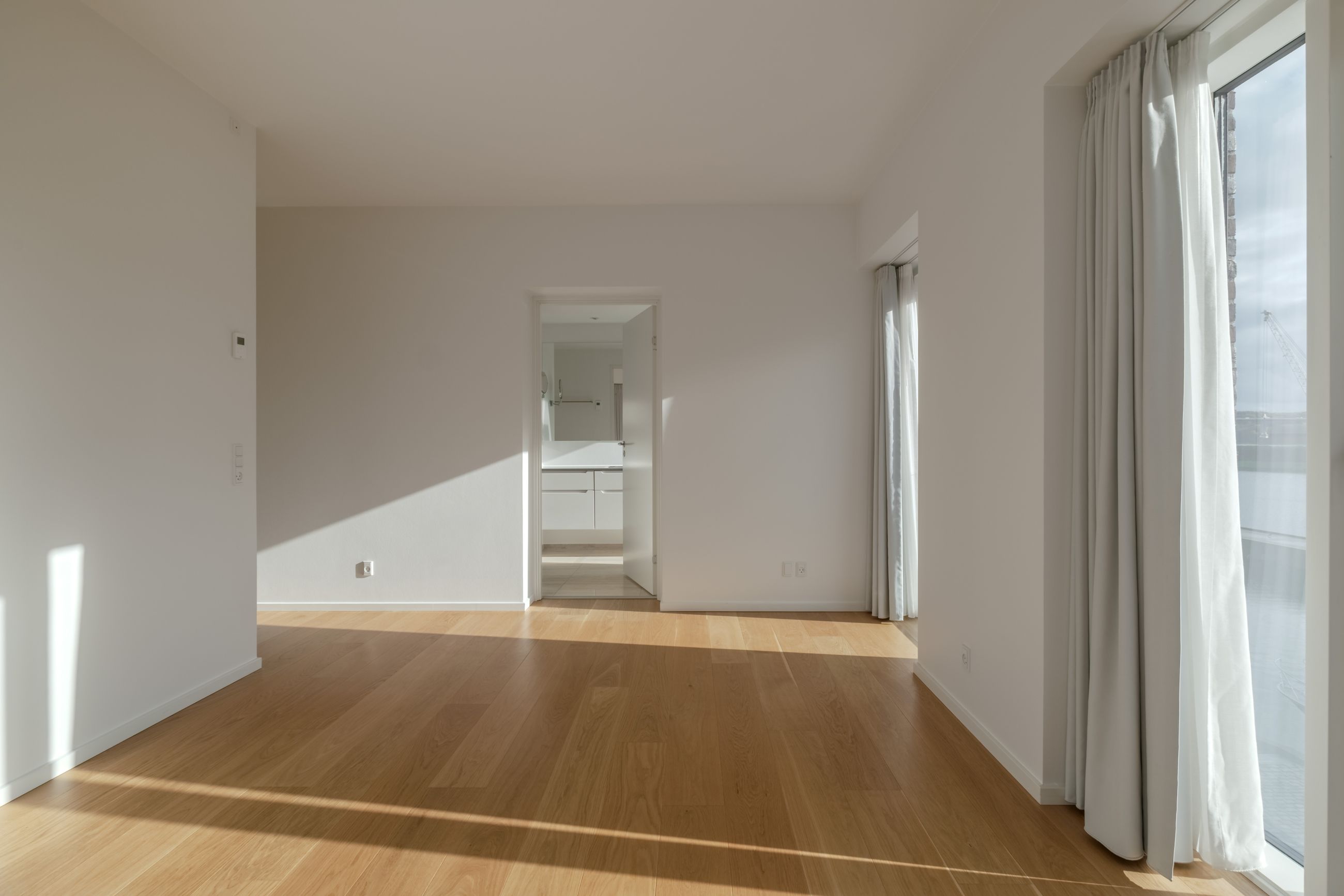 Lejligheden rummer hele 165 m2 fordelt på to værelser, to badeværelser, et praktisk depotrum og et stort, åbent køkken-alrum og stue med udgang til en sydvendt terrasse mod fjorden. Placeringen på 1. sal giver en perfekt balance – højt nok til at være ugenert, men stadig tæt på havnens liv og stemning.
