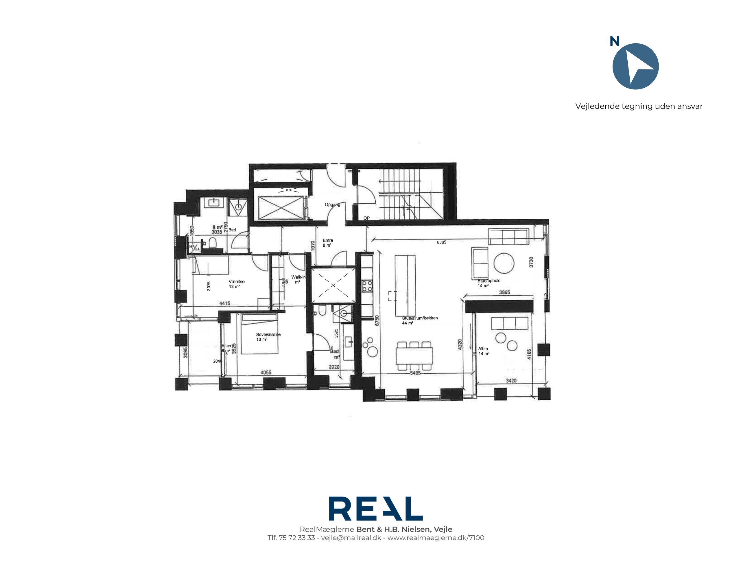 Har du spørgsmål eller ønsker du lejligheden fremvist, så kontakt RealMæglerne Bent & H.B. Nielsen på tlf. 7572 3333 eller på mail vejle@mailreal.dk