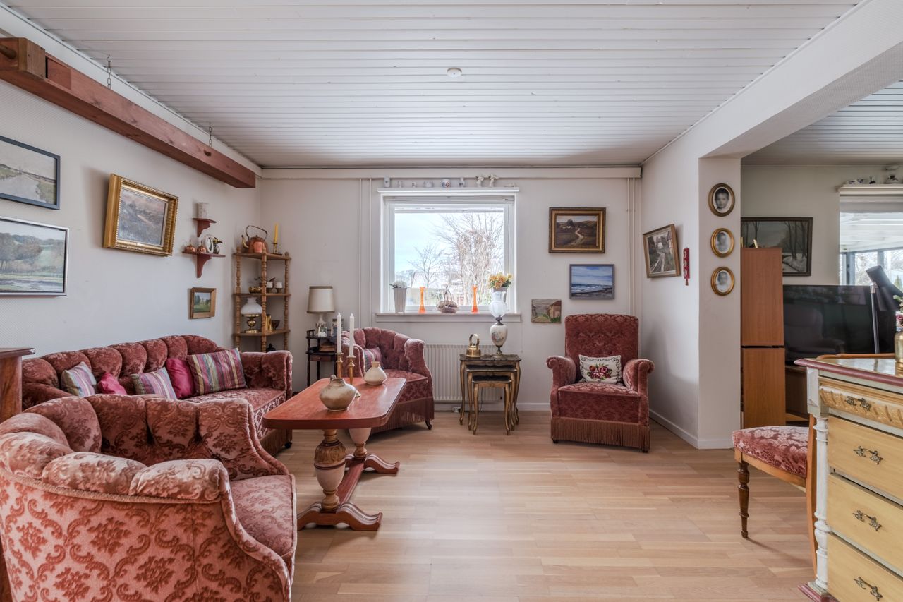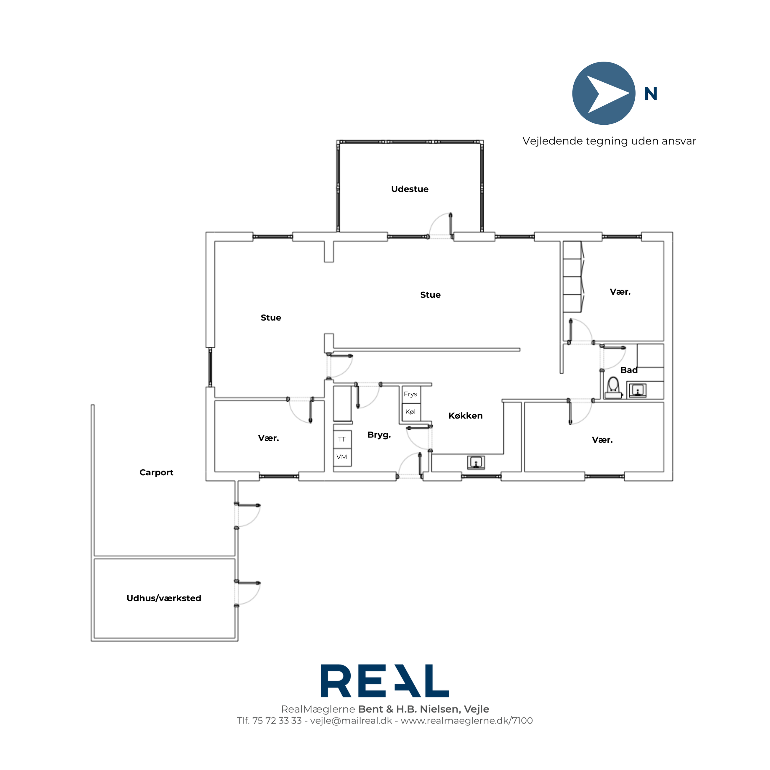 I hyggelige Ny Nørup mellem Vejle og Billund finder du denne velindrettede villa beliggende på et roligt, lukket vænge med en flot anlagt og overskuelig have. Her bor du i trygge rammer med kort afstand til både hverdagens faciliteter og noget af områdets smukkeste natur omkring Engelsholm Sø. Ny Nørup byder på et aktivt lokalsamfund med indkøb, skole, børnepasning, idræt og samtidig er der kun ca. 15–20 minutters kørsel til både Vejle og Billund. Huset er opført i 1983 og rummer en planløsning med gode muligheder for tilpasning. Boligen fremstår pæn og lys med en klassisk stil og en god, funktionel indretning med central køkken og stue, samt 3 værelser og mulighed for et fjerde. Du bydes velkommen i entréen, som også fungerer som bryggers. Herfra er der adgang til det lyse køkken med spiseplads. Den store stue er husets naturlige samlingspunkt med god plads til både sofa- og spiseafdeling samt direkte udgang til den dejlige udestue, som forlænger udesæsonen betydeligt. Boligen rummer tre værelser og et pænt badeværelse. Stuen har en størrelse, der gør det oplagt at etablere et ekstra værelse. Udendørs får du en hyggelig og nem have, der er anlagt med tanke på både stemning og lav vedligeholdelse. Til ejendommen hører carport samt et isoleret skur/værksted med mange anvendelsesmuligheder. En veldisponeret bolig i et trygt lokalsamfund – oplagt til både børnefamilien, parret eller køberen, der ønsker et hus med gode rammer og mulighed for at sætte sit eget præg. Har du spørgsmål eller ønsker du boligen fremvist, så kontakt RealMæglerne Bent & H.B. Nielsen på tlf. 7572 3333 eller på mail vejle@mailreal.dk