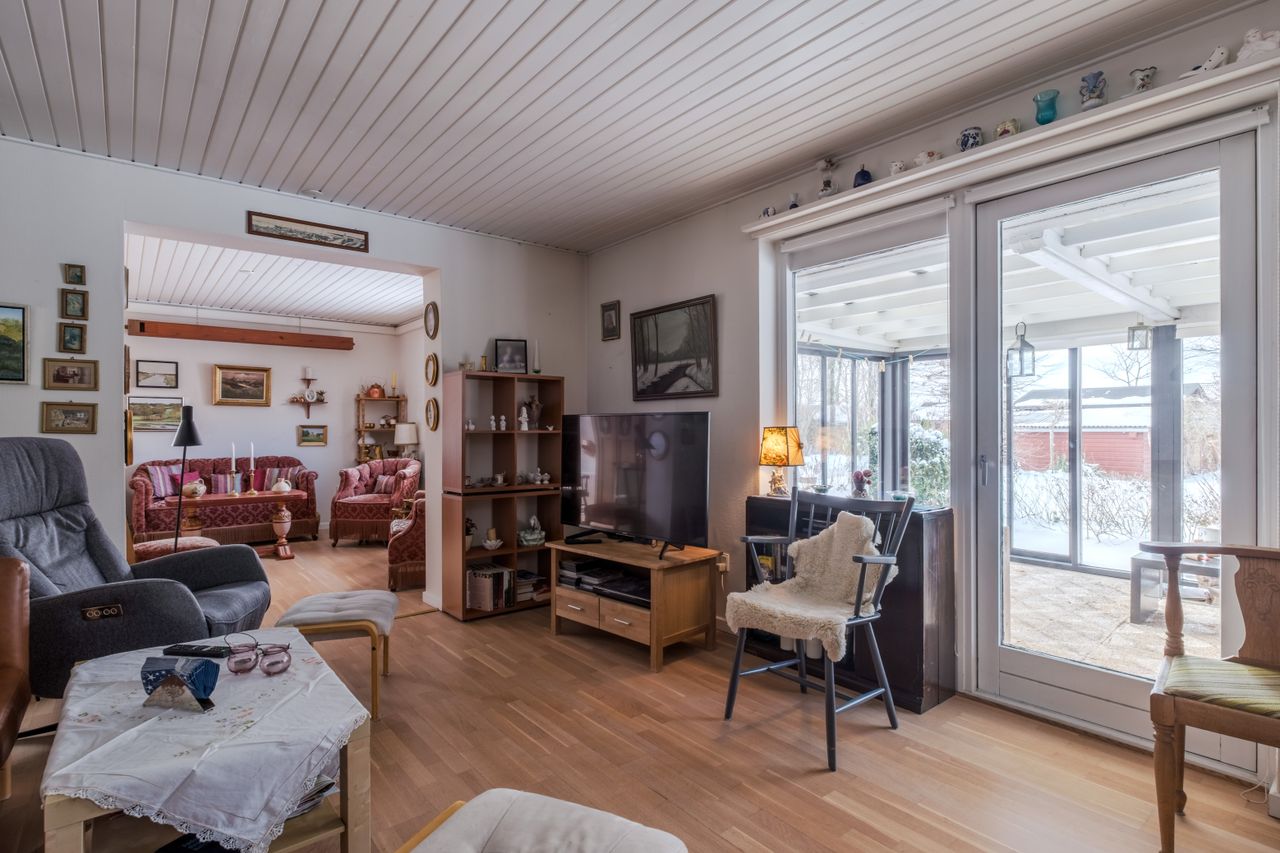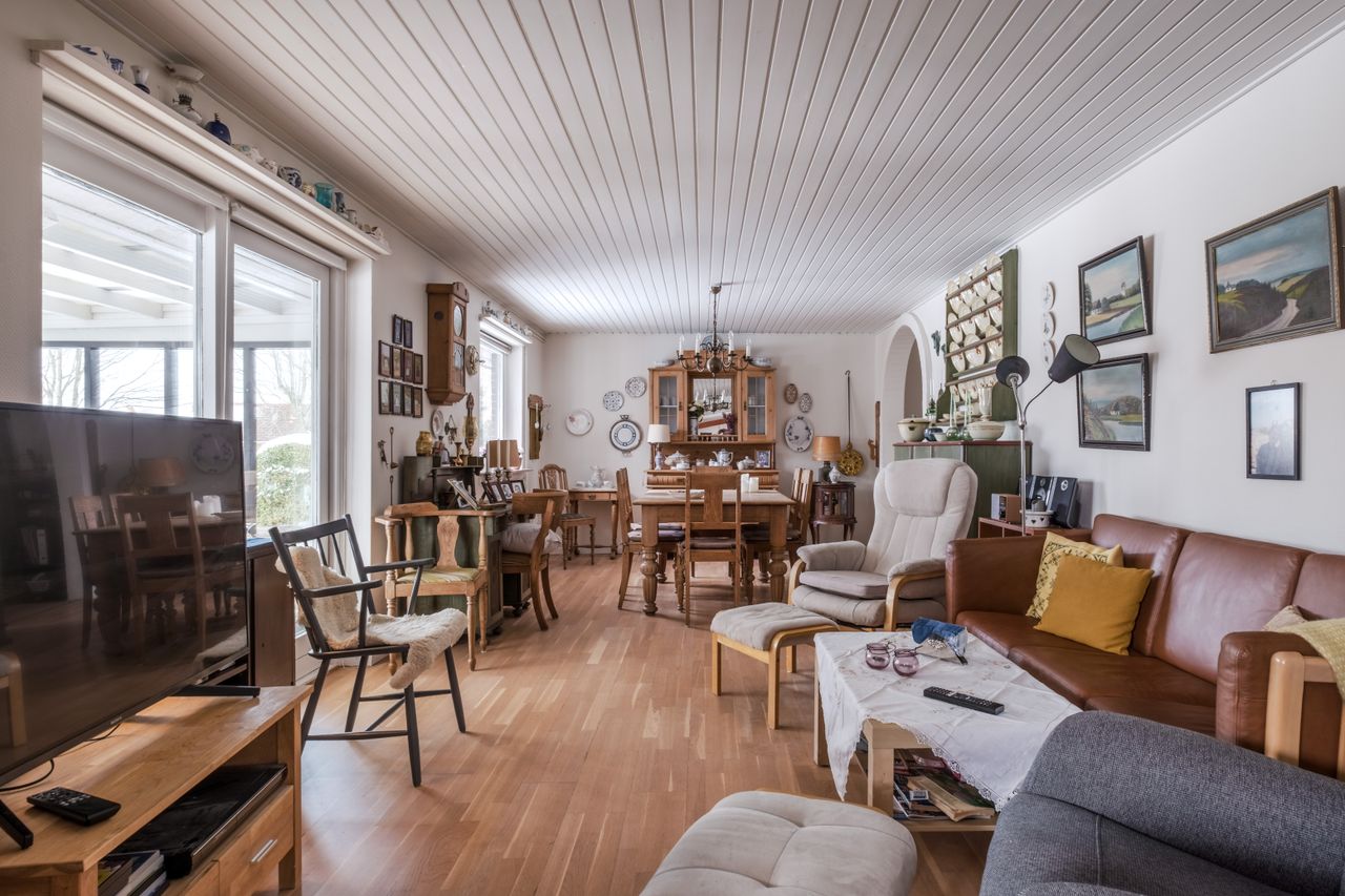 Trygt beliggende parcelhus med god planløsning, udestue og skøn have – tæt på naturen