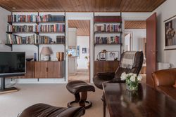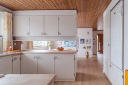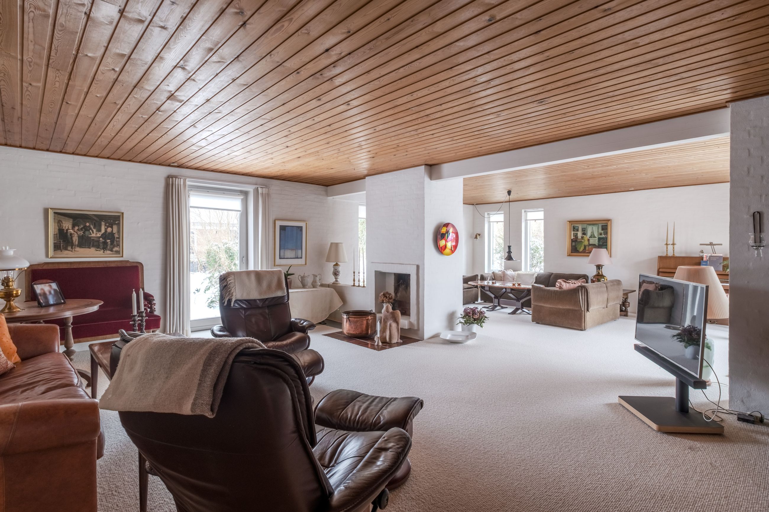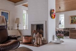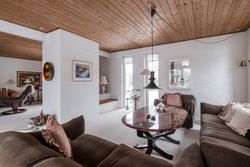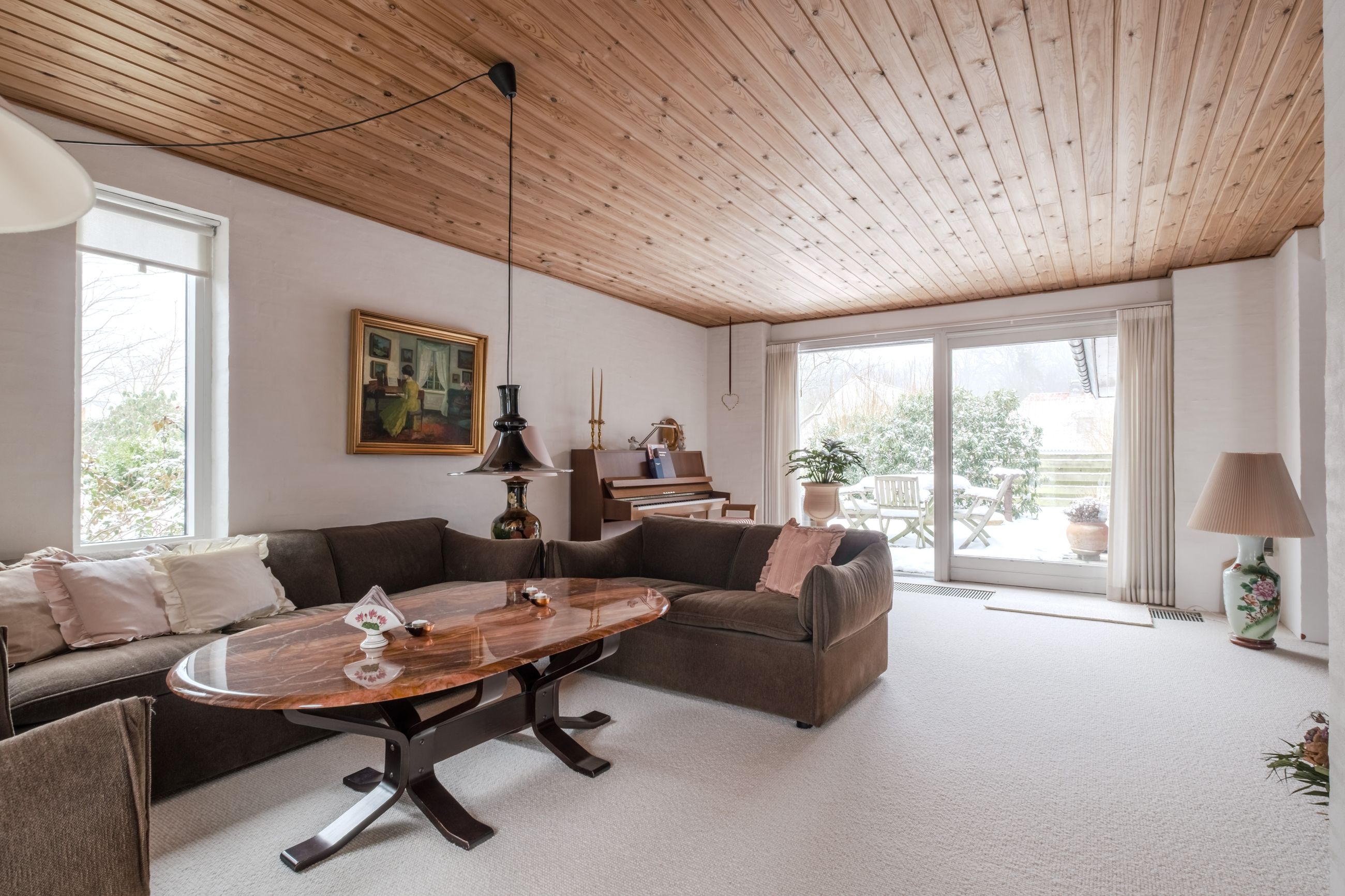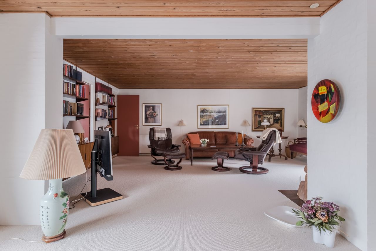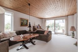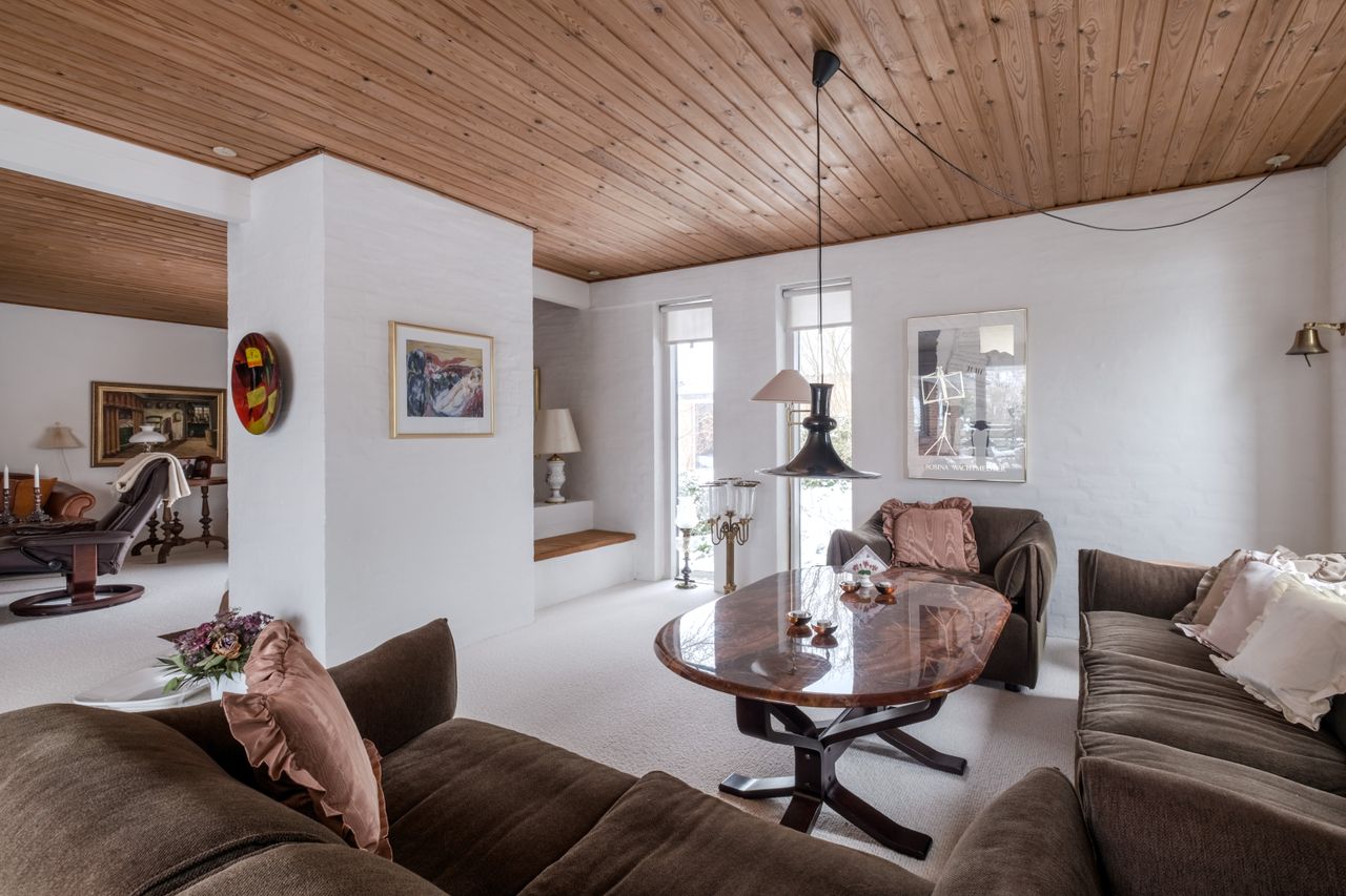 Boligen fremstår flot vedligeholdt både ude og inde og er holdt i en gennemført original stil med varme materialer, rolige farver og en behagelig atmosfære. Store vinduespartier går igen flere steder i huset og sikrer et skønt lysindfald samt en tæt kontakt til haven og de grønne omgivelser.