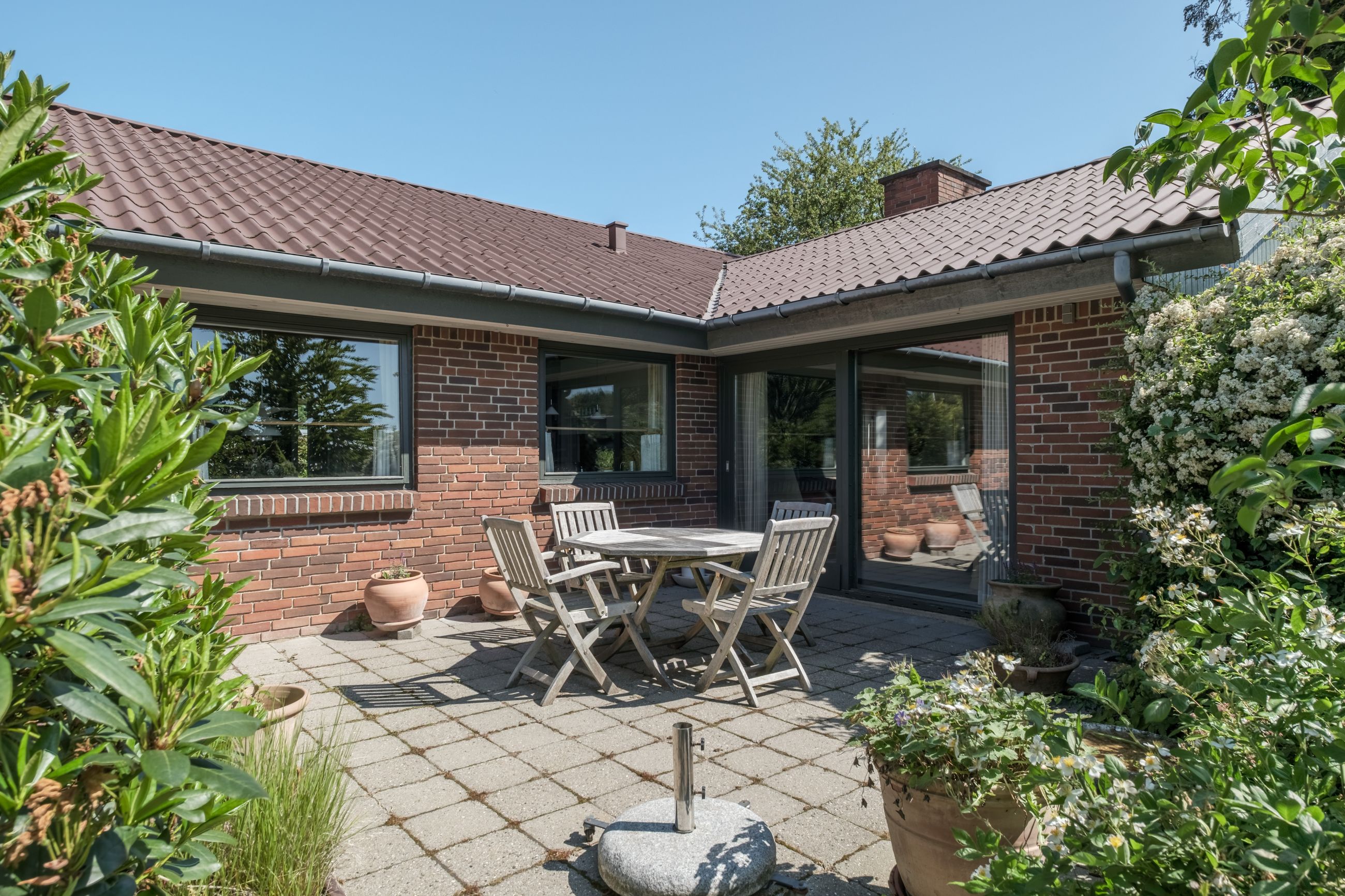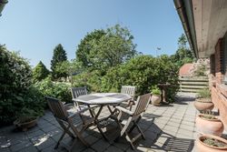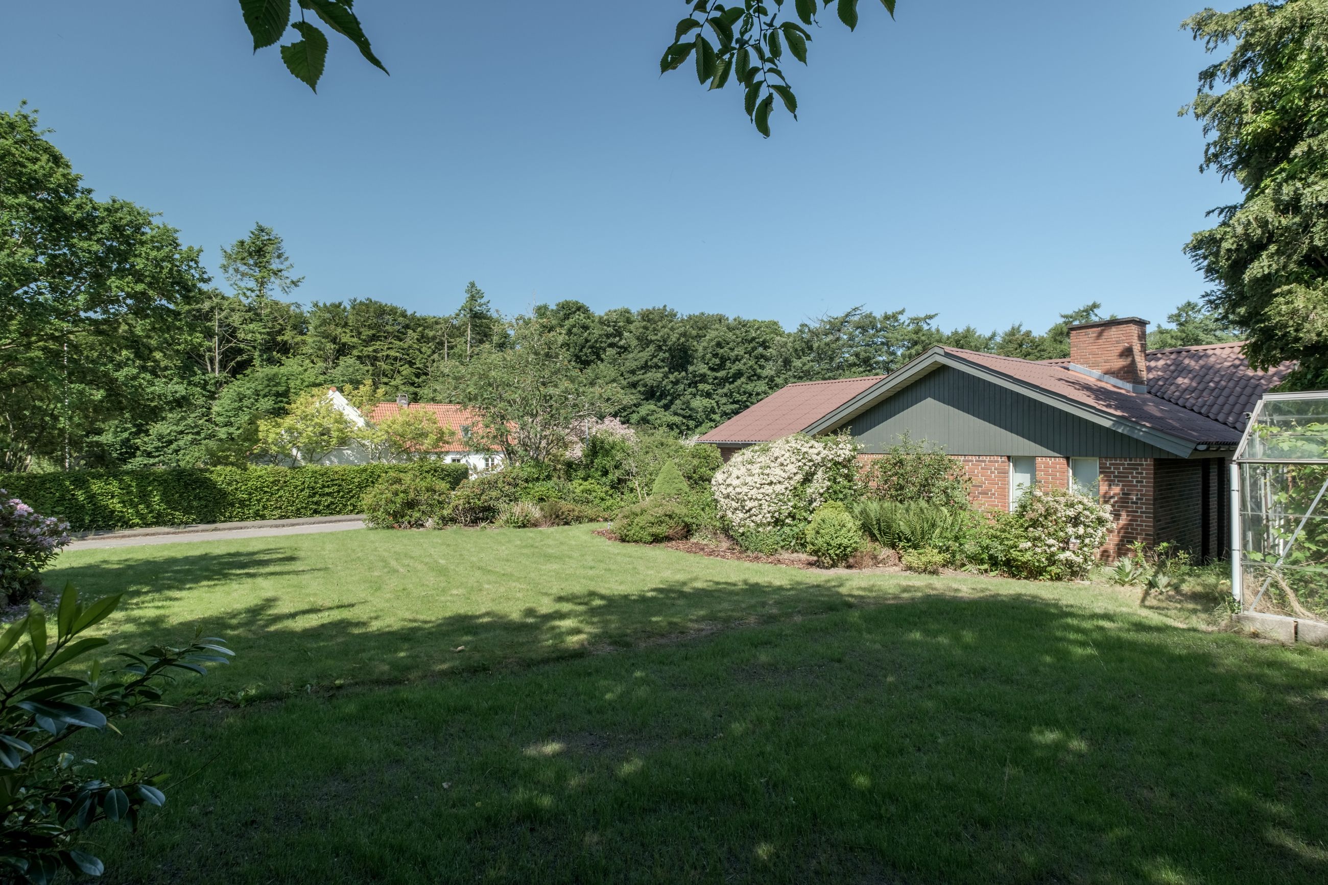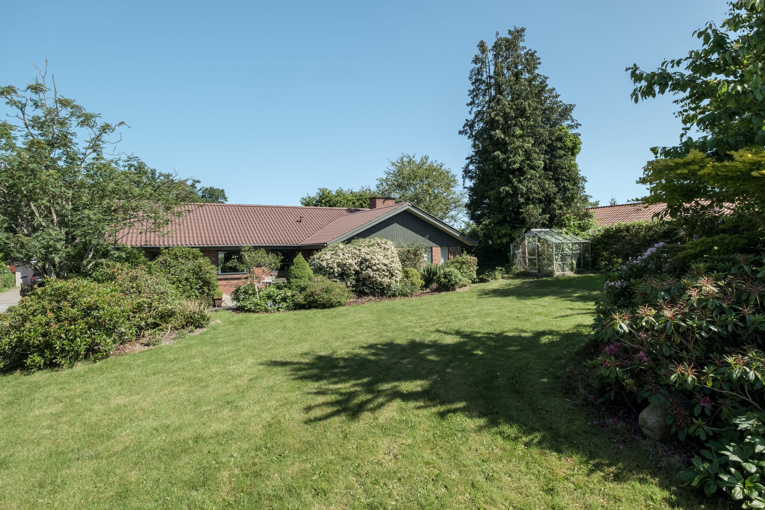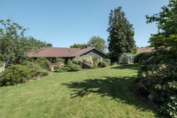 Grunden byder på en stor, hyggelig have med græsplæne, buske og træer, samt en ugenert terrasse, hvor solen og roen kan nydes i private rammer. Beliggenheden for enden af den lukkede villavej giver minimal trafik og rolige omgivelser – ideelt for både børnefamilien og dem, der ønsker fredelige rammer tæt på byen.