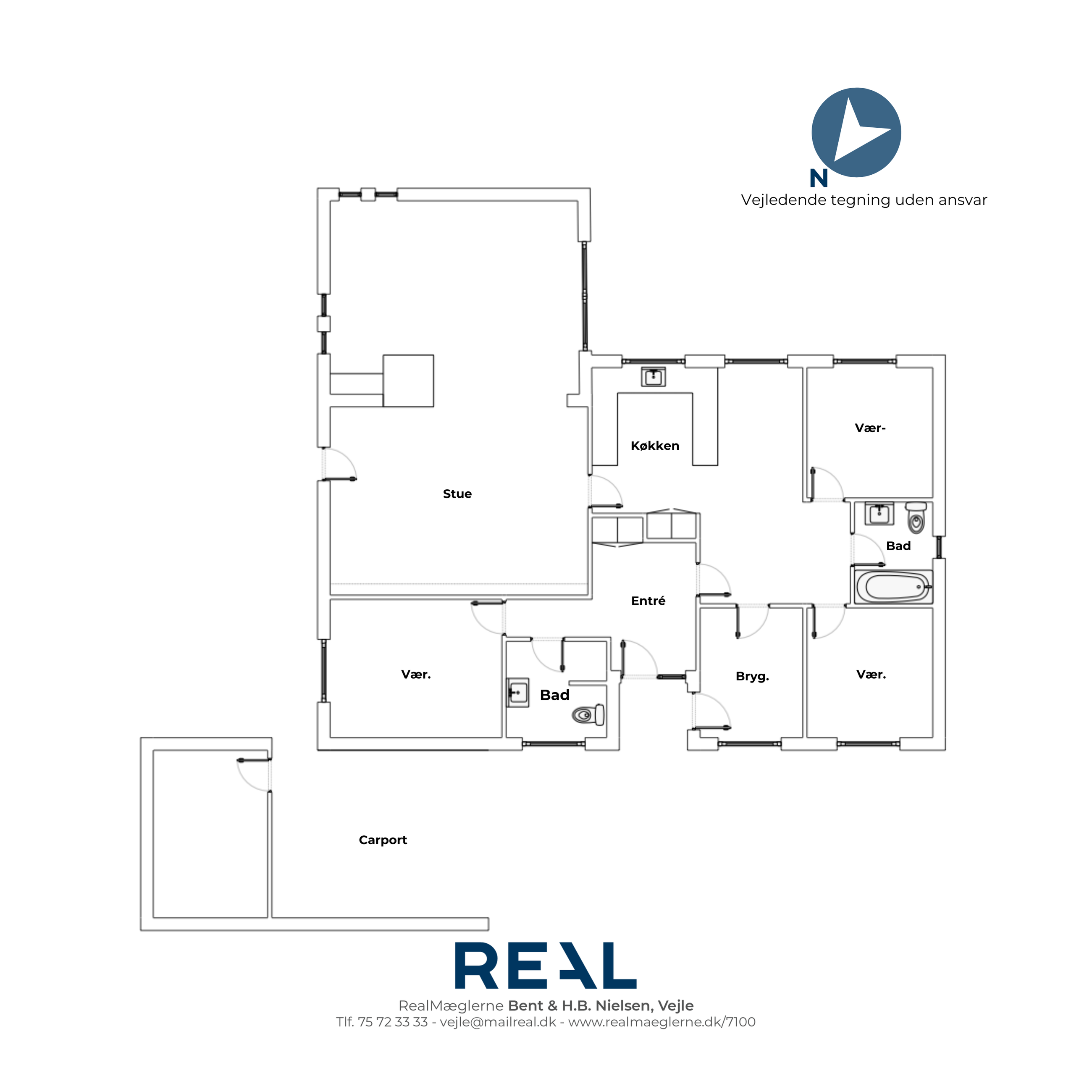 Til huset hører carport med integreret udhus, så der er gode muligheder for både parkering og opbevaring.