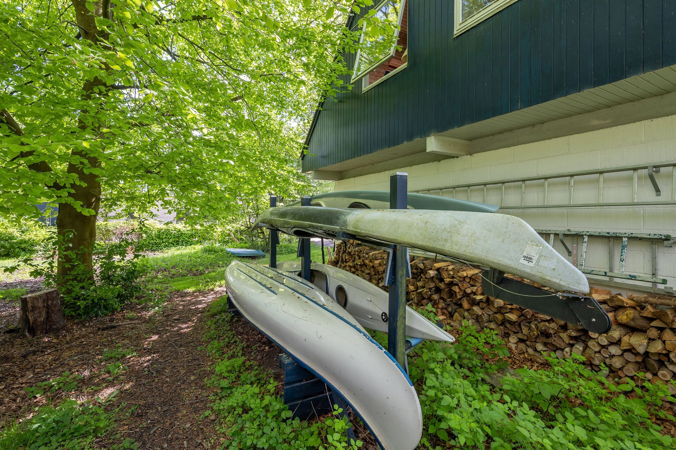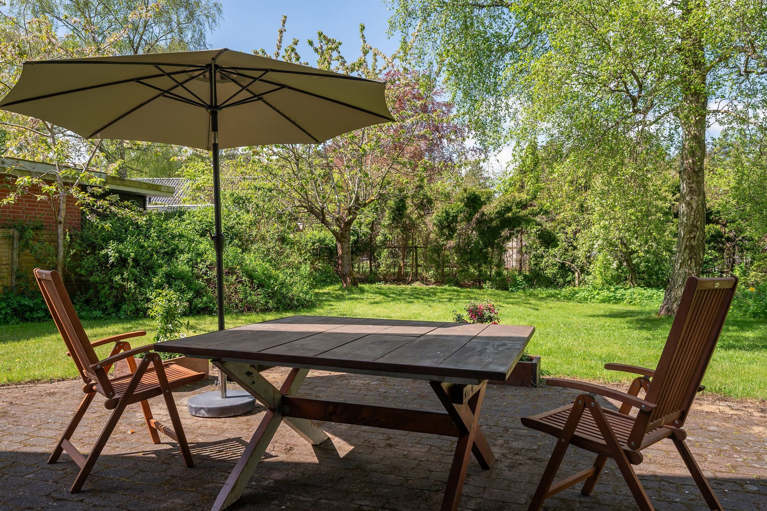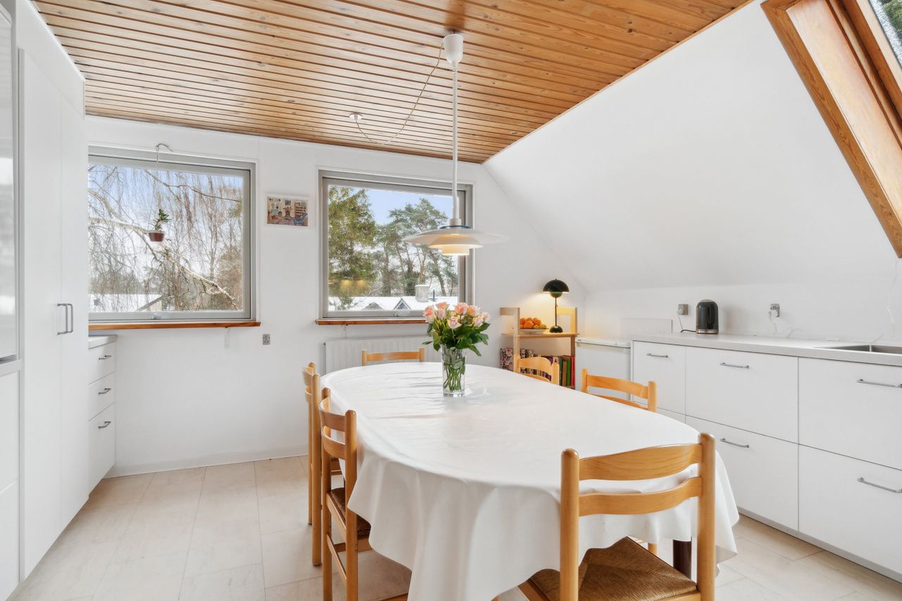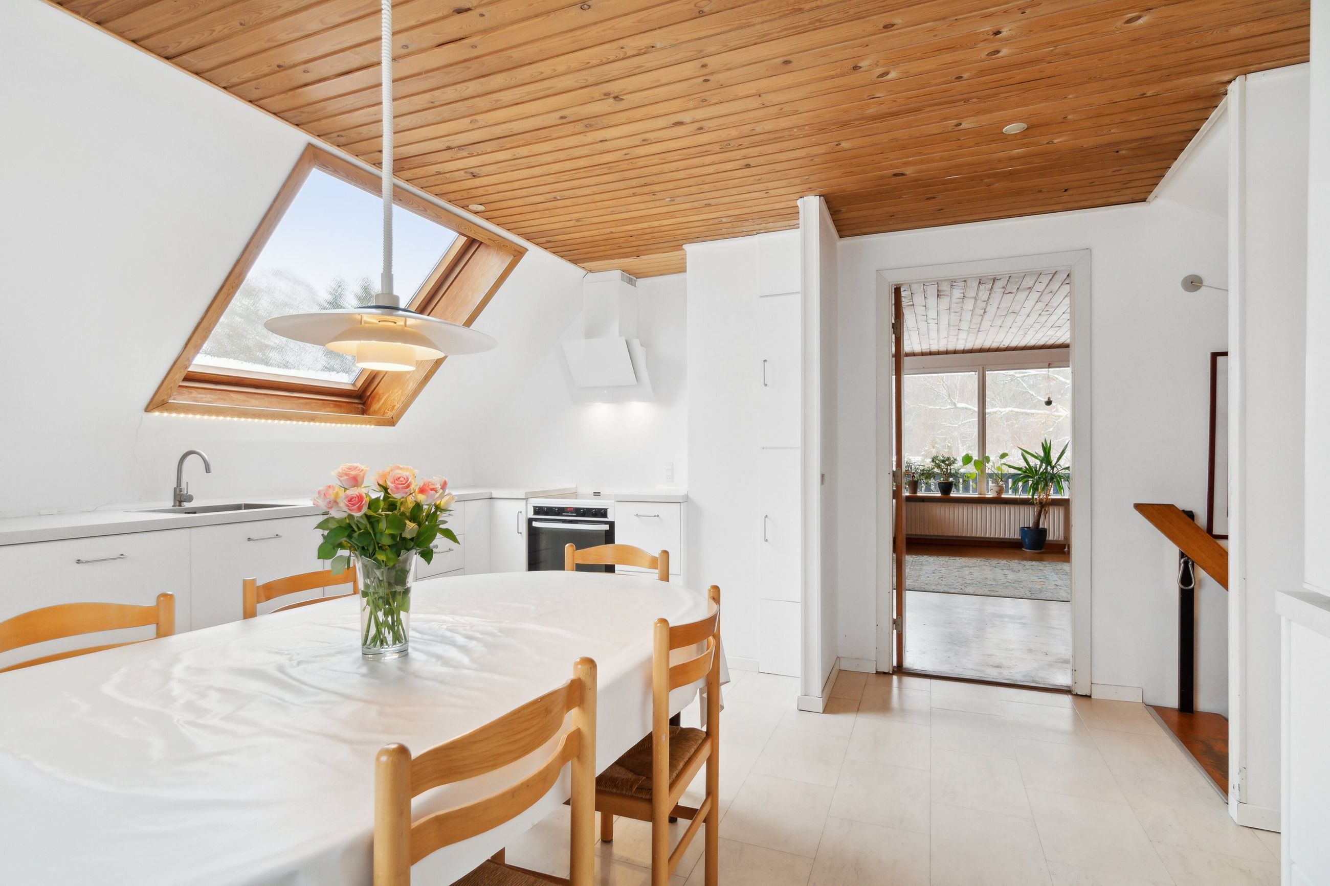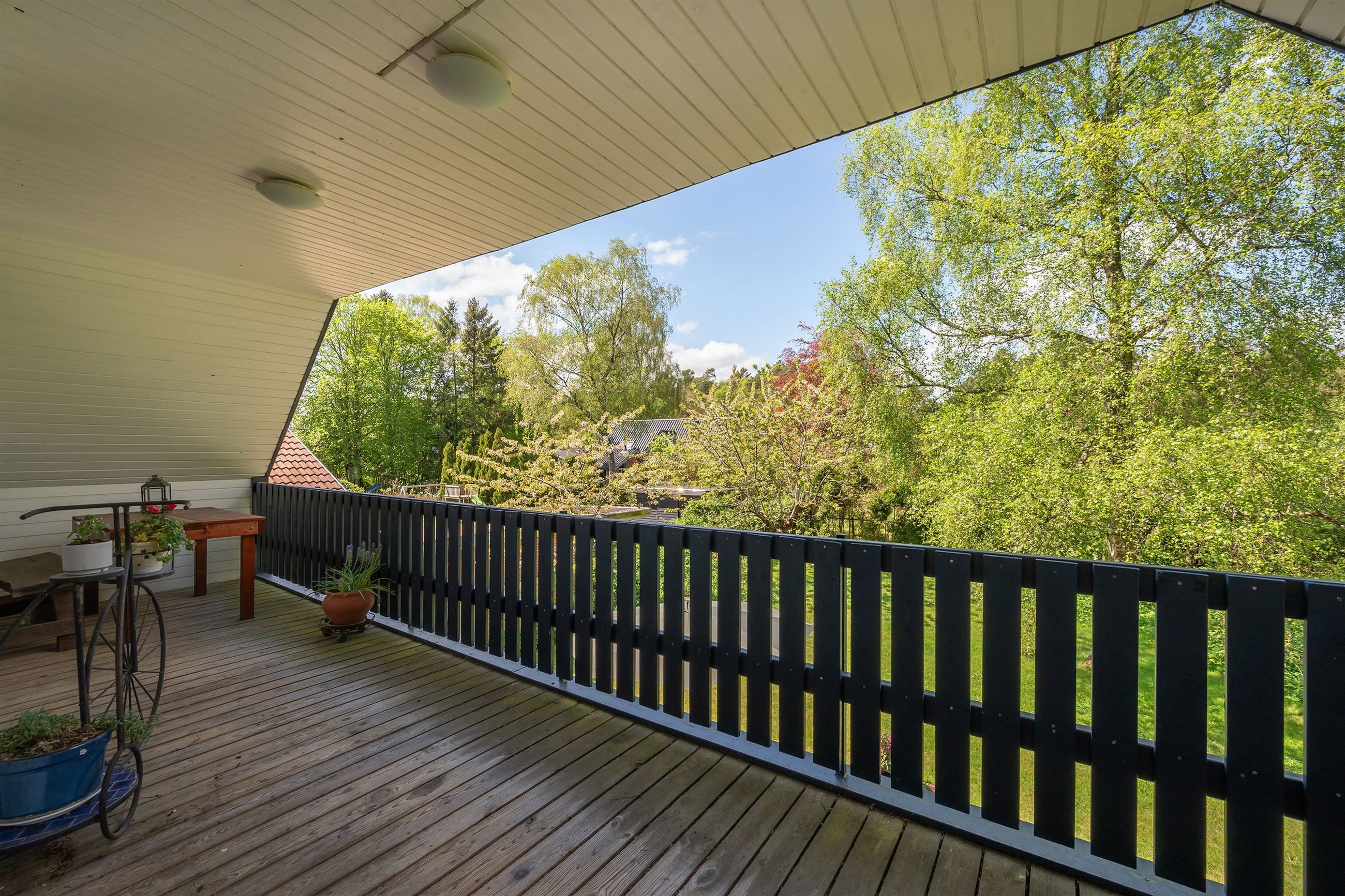 Boligens udearealer er en sand perle. Fra stuen har I adgang til en hyggelig veranda, hvorfra I kan nyde udsigten til haven og den omgivende skov. Haven er smukt anlagt af havearkitekten Laila Sølager og rummer en økologisk køkkenhave i forhaven med bærbuske og frugttræer. I baghaven fortsætter denne naturlige idyl med flere frugttræer, bærbuske og en stor græsplæne, der indbyder til leg og afslapning for både børn og voksne.