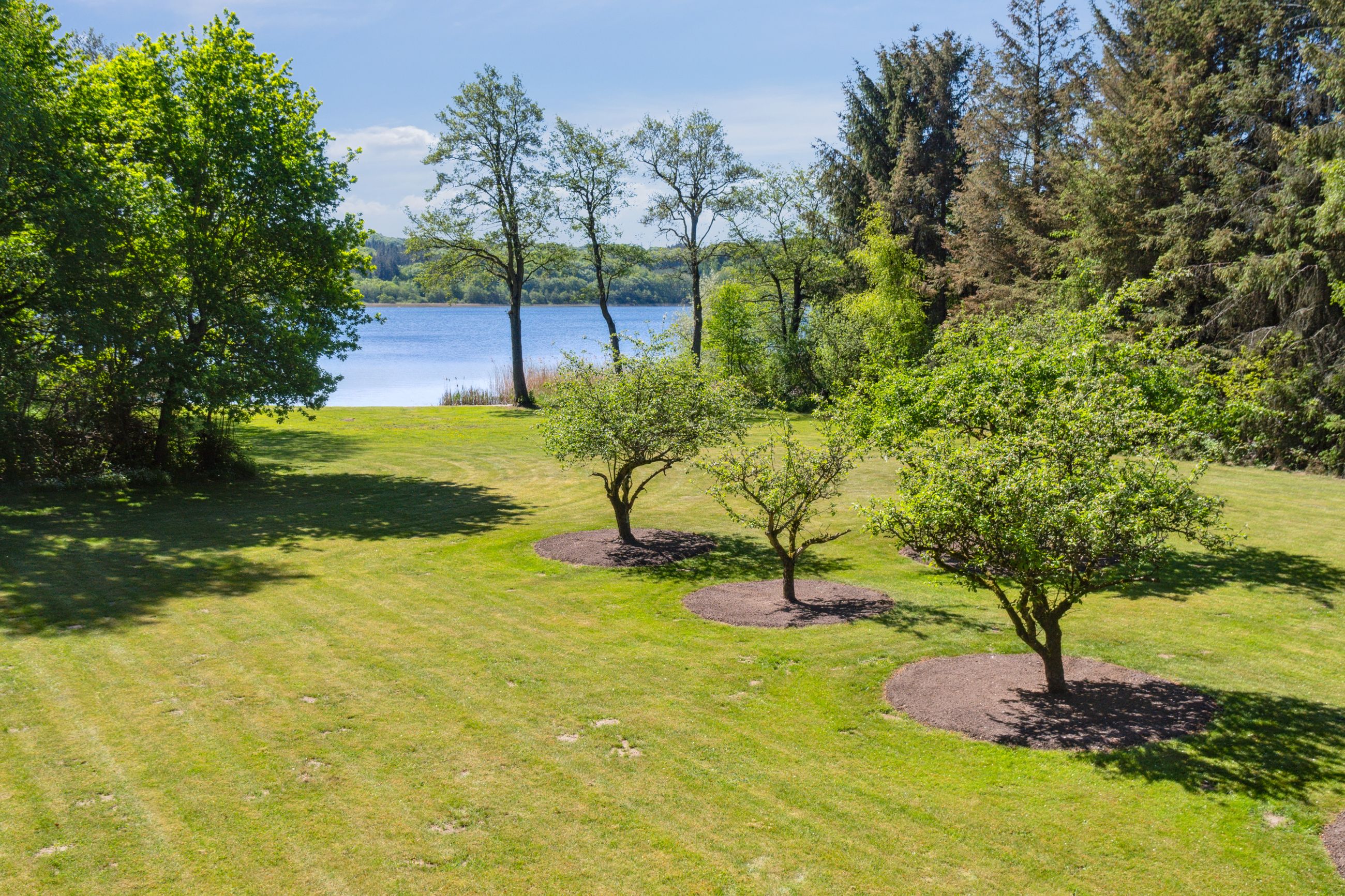 Sø-grunden er en gammel frugtplantage, omkranset af et 25 m højt læbælte, der altid yder læ og sørger for ugeneret privatliv .