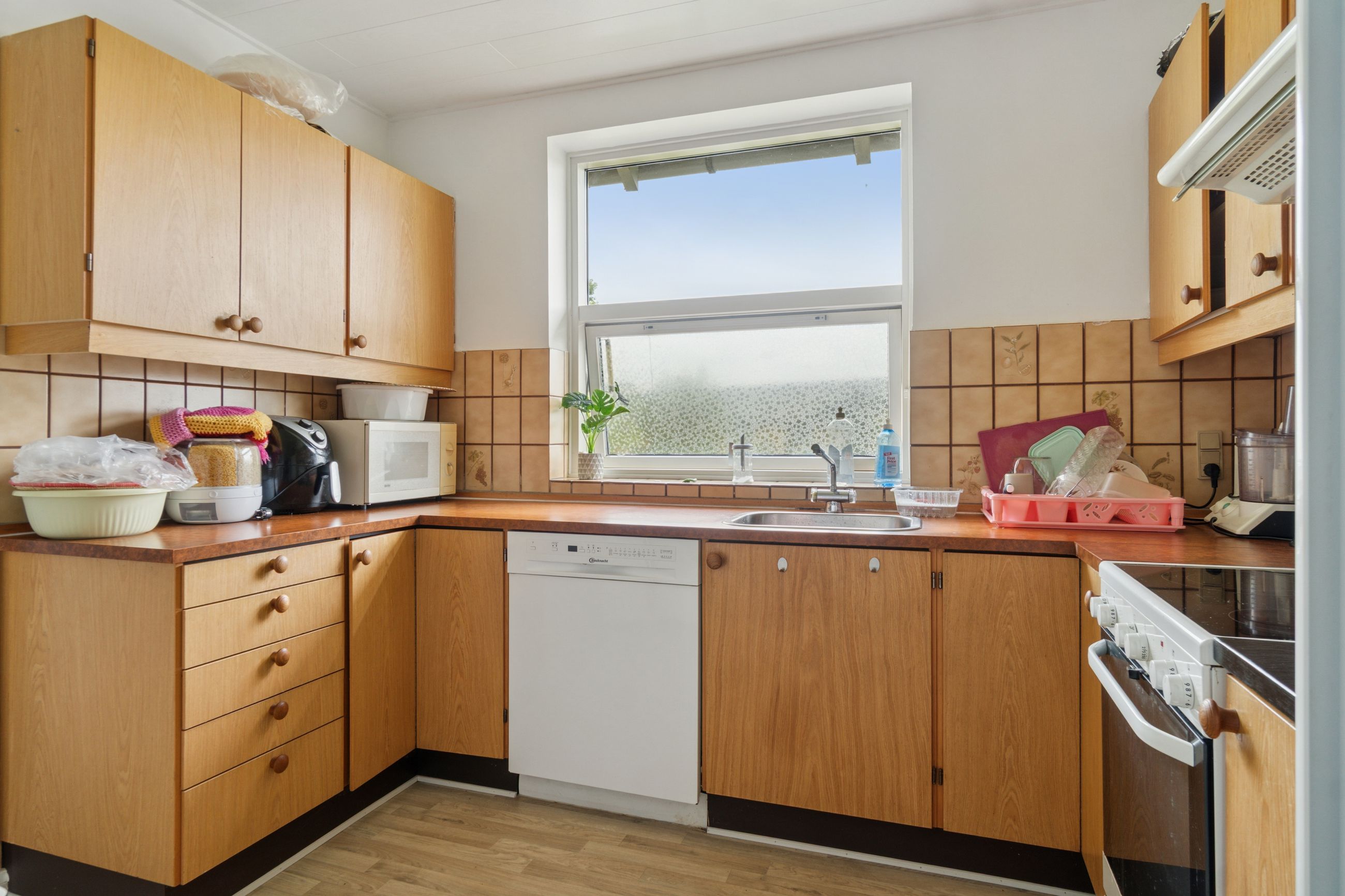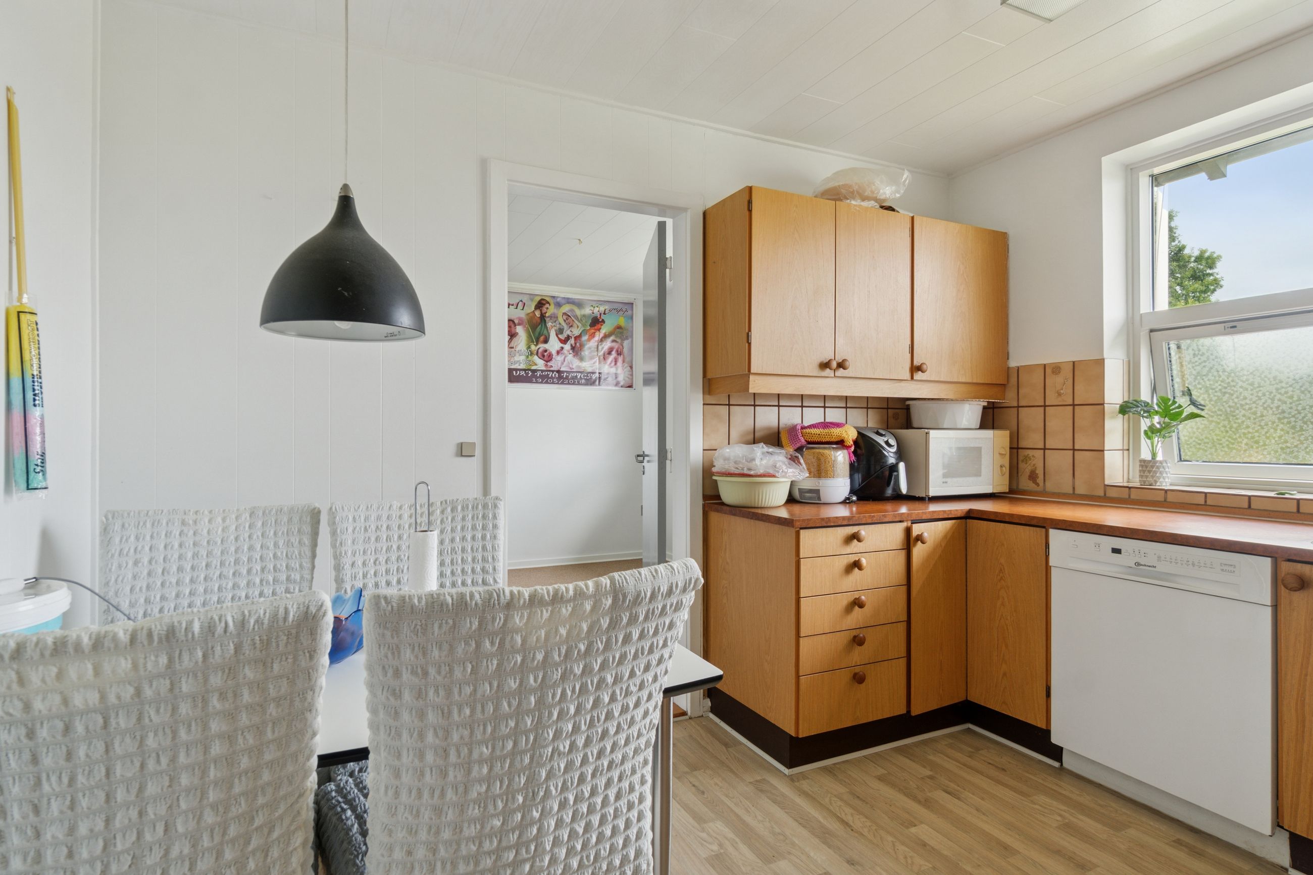 Ejendommen byder på en rummelig bolig med gode planløsninger, hvor der er plads til både familien og hjemmekontoret. Køkkenet er af ældre dato, men her er oplagt mulighed for at modernisere og skabe et åbent køkken eller et skønt køkkenalrum, der kan blive hjemmets naturlige samlingspunkt. Fra den lyse og indbydende stue kan du desuden nyde udsigten og adgangen til den dejlige udestue, som er perfekt til at forlænge sæsonen og skabe ekstra rum til afslapning eller gæster.