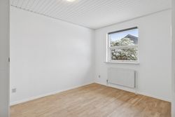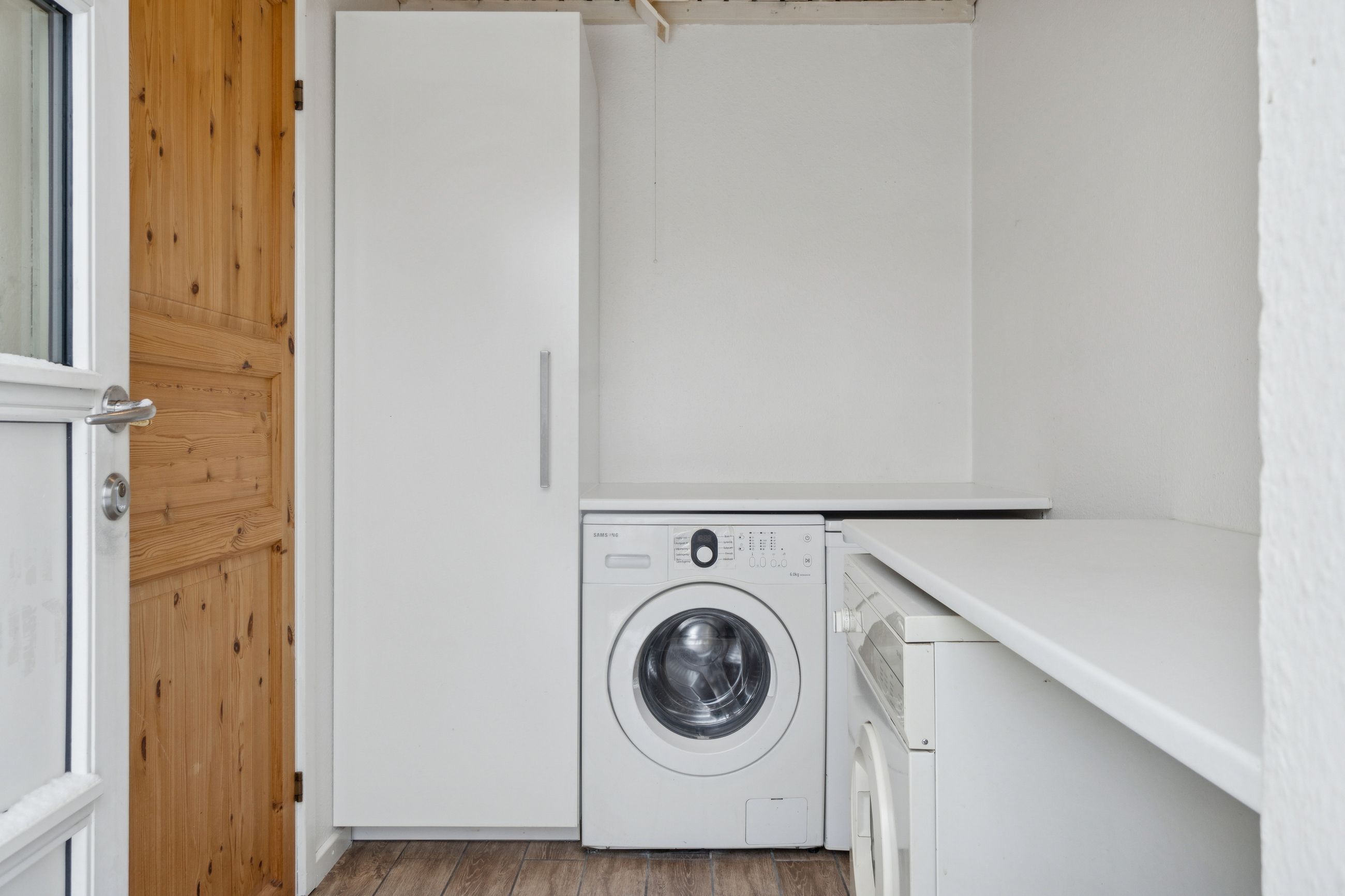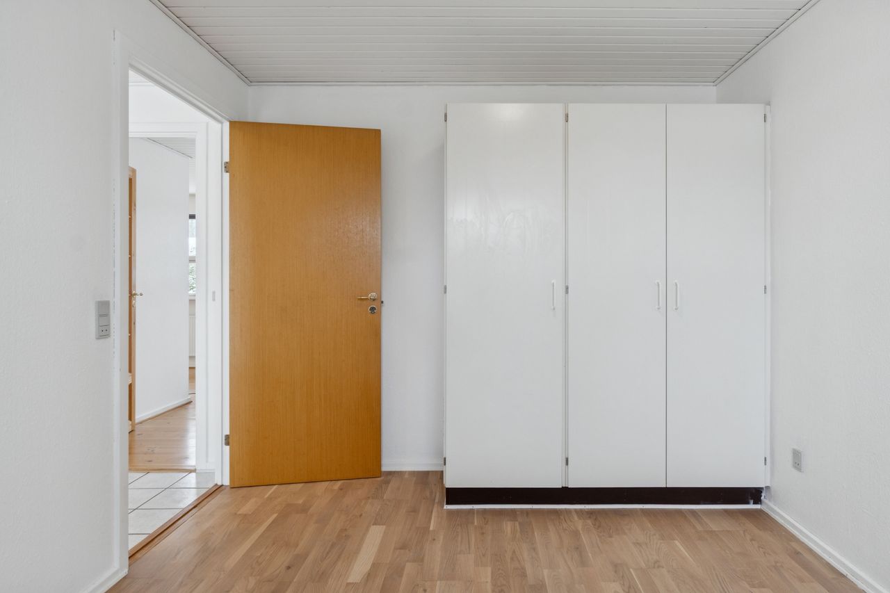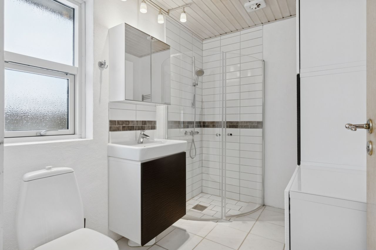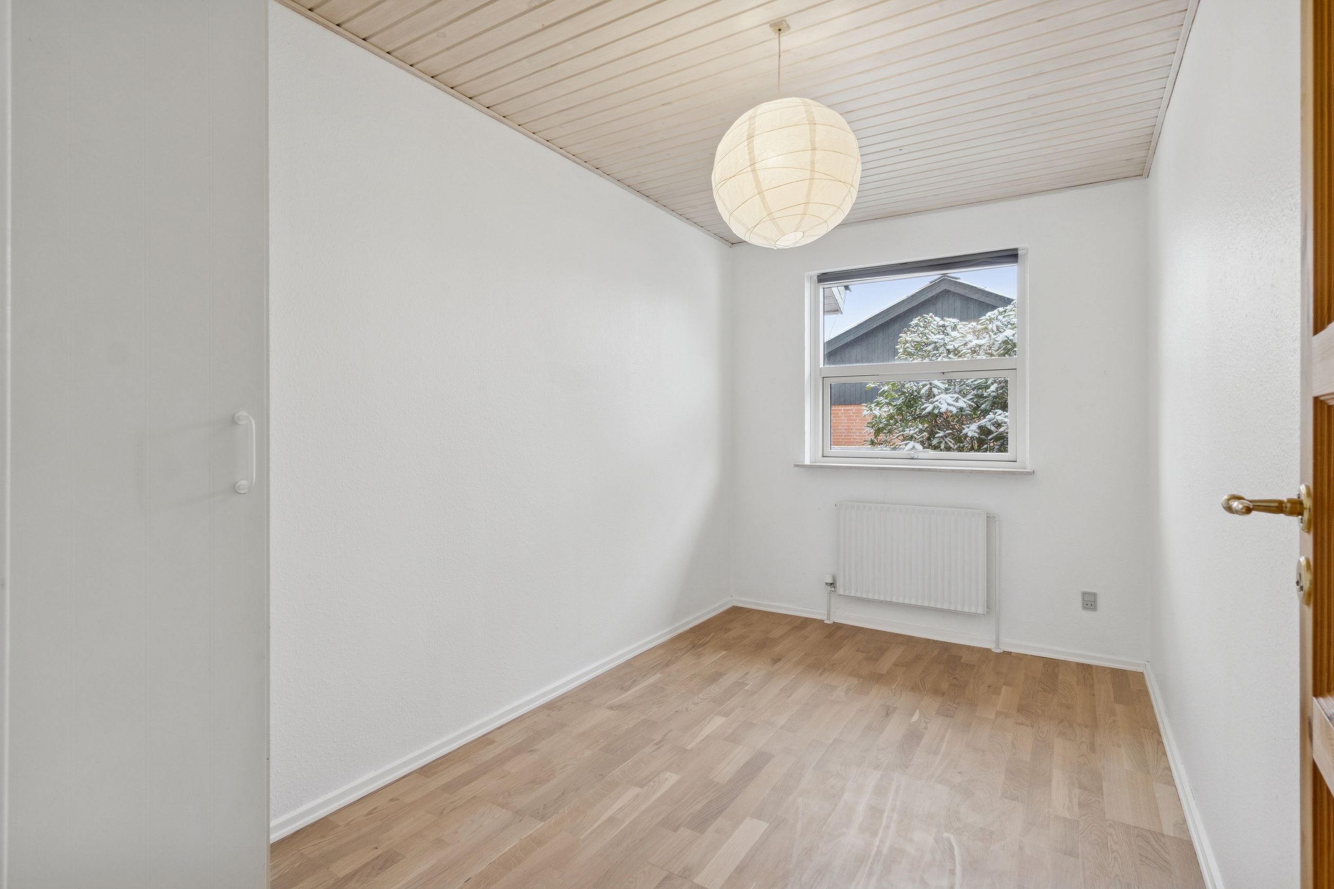 Derudover byder huset på to gode værelser – det ene oplagt som soveværelse, det andet som børne-, gæste- eller kontorværelse. Badeværelset er med lyse fliser og bruseniche. Alt fremstår velholdt og pænt i tidssvarende stil.