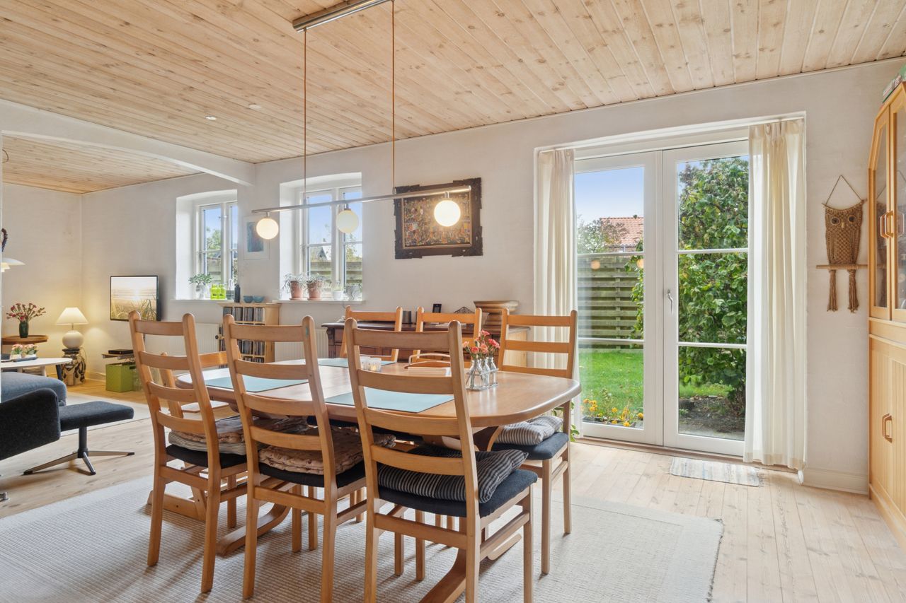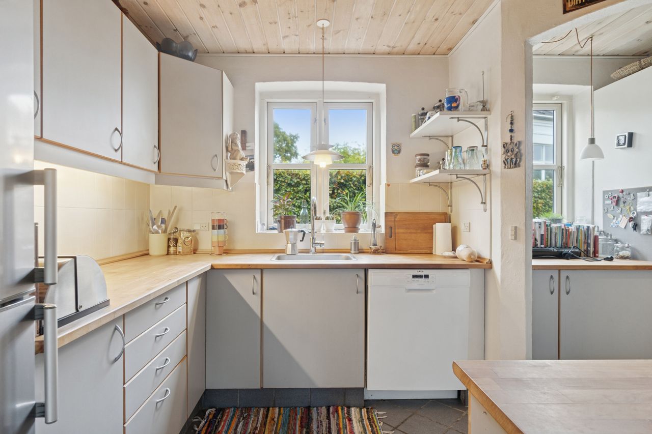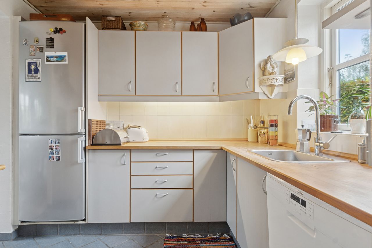 Boligen er opført i 1990 og fremstår indbydende med en klassisk planløsning og et dejligt lysindfald. Her mødes du af en god entré et og et lyst badeværelse med bruseniche. Køkkenet har du direkte adgang til den store stue, hvor der er plads til både samvær og ro – og fra stuen er der direkte udgang til en skøn, solrig terrasse og en lille, privat have, der indbyder til afslapning og hyggelige stunder i det fri.