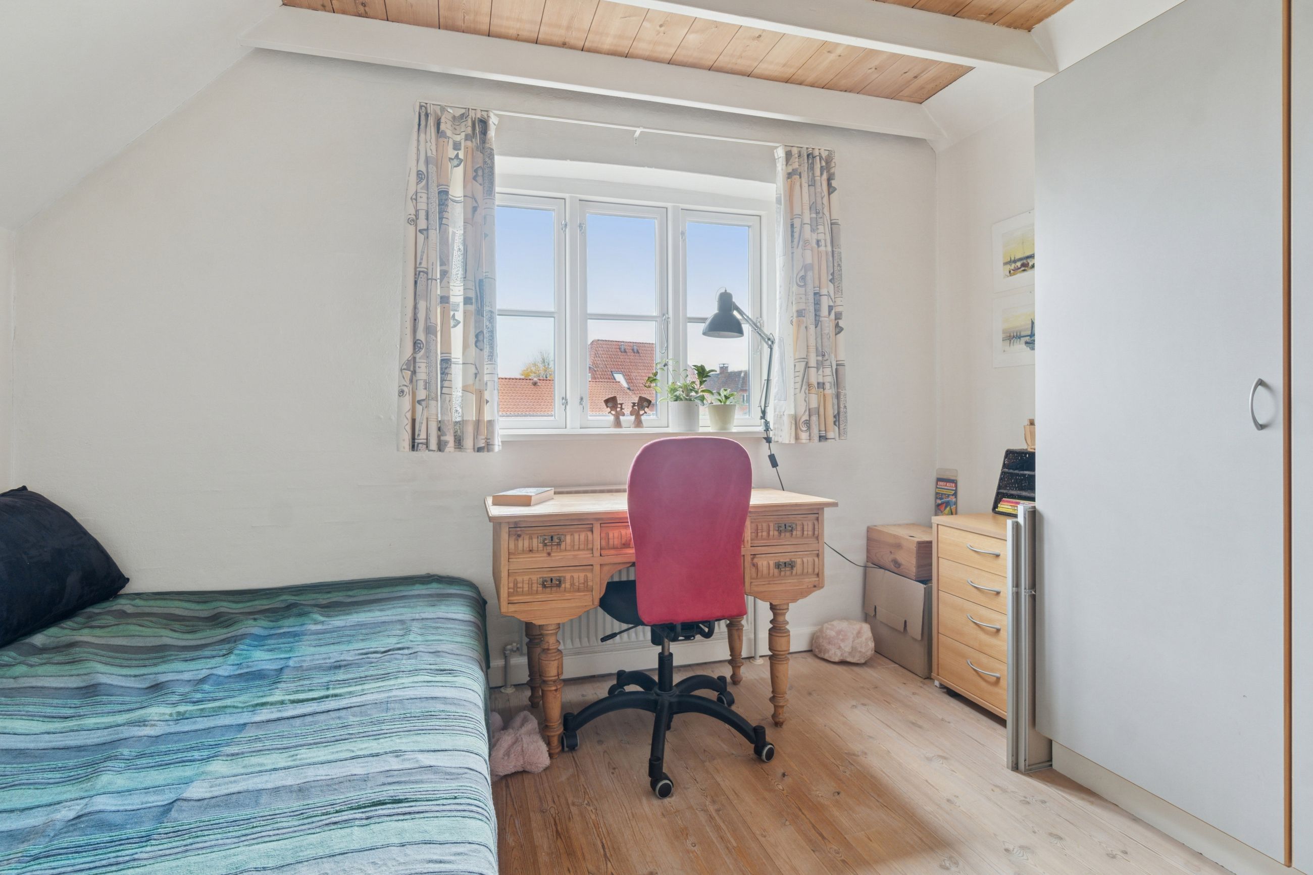 Boligen rummer to værelser giver god fleksibilitet – hvad enten du drømmer om børneværelser, hjemmekontor eller et lyst soveværelse med udsigt til haven.
