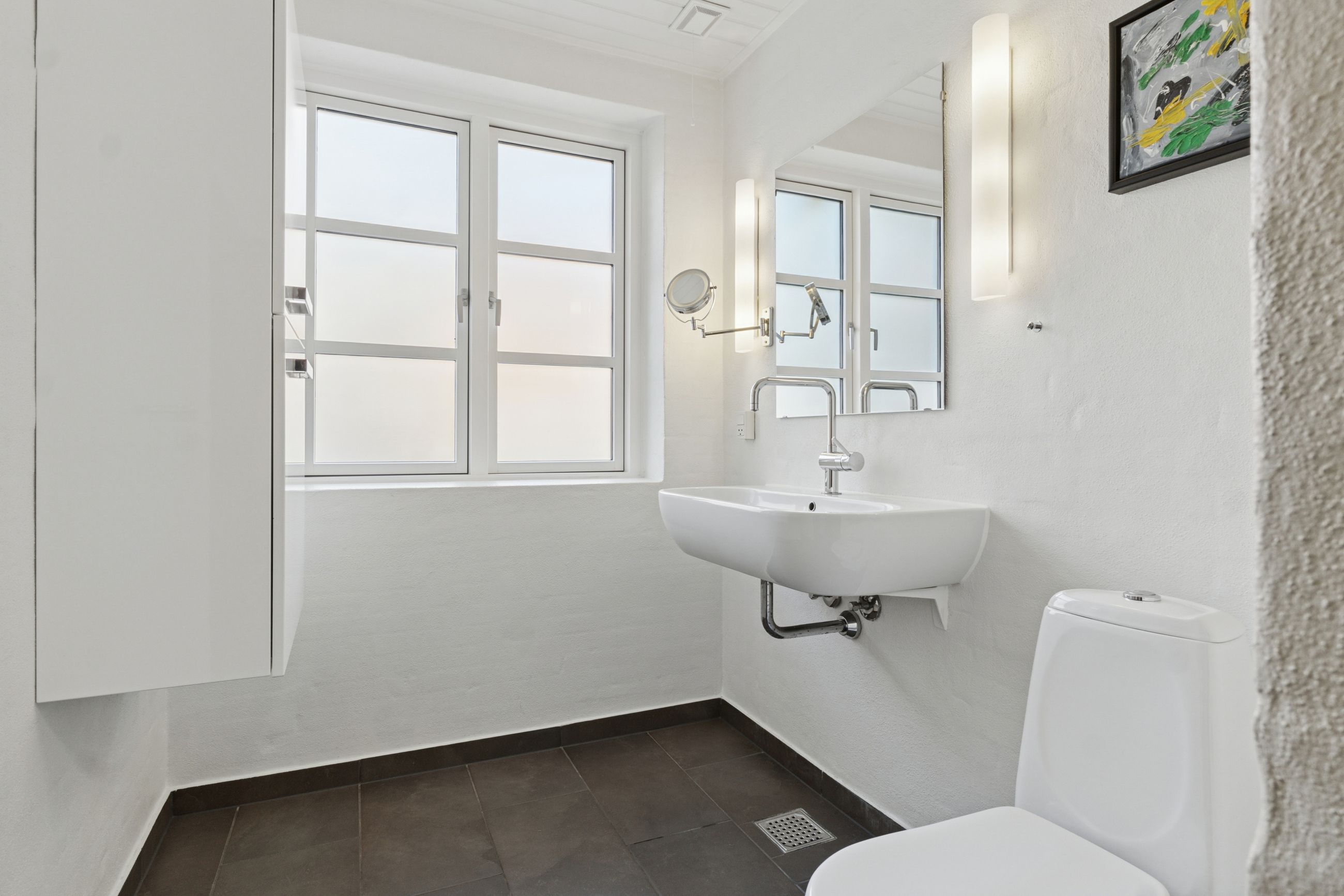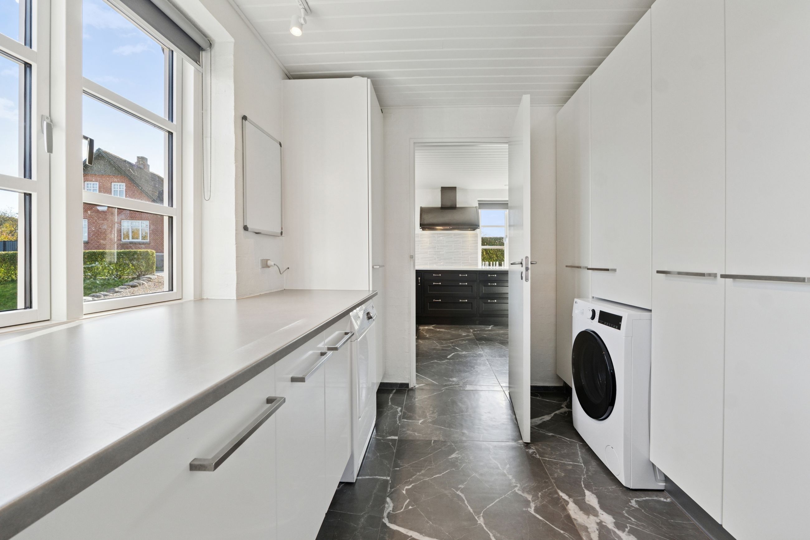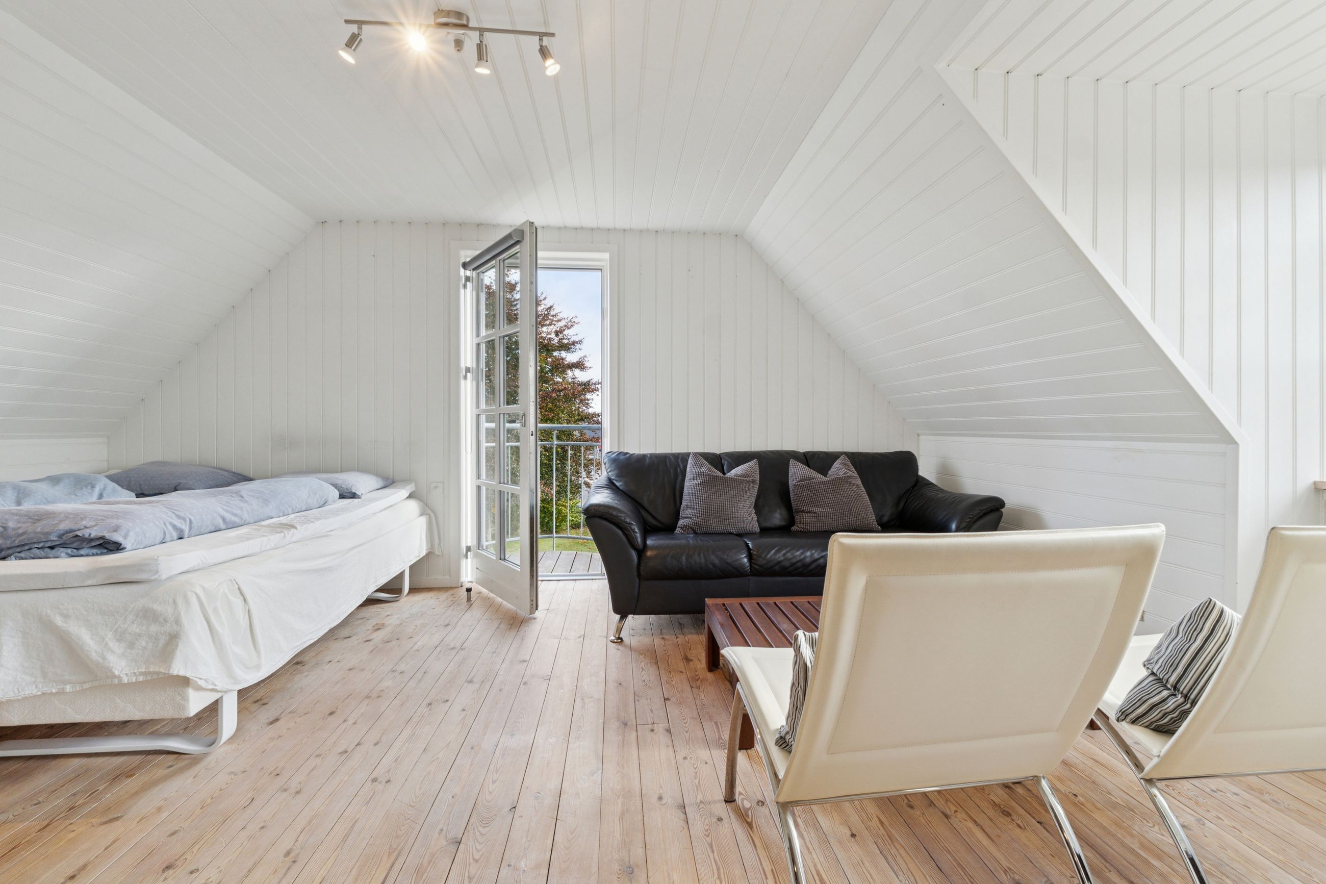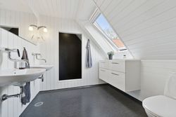 Den sekundære bygning, oprindeligt tænkt som showroom og kontor, er et særligt kapitel for sig. Med sin åbne planløsning, store vinduespartier og lysindfald skaber den et imponerende og inspirerende rum, som både kan anvendes til liberalt erhverv, atelier, galleri, detailhandel eller kontormiljø. Bygningen fremstår som et arkitektonisk værk i sig selv – et fleksibelt og stemningsfuldt rum, hvor Truelsens formsprog virkelig træder frem. De naturlige materialer, de rene linjer og den afstemte proportionering gør showroomet ideelt til både arbejde, udstilling og oplevelse. Her kan du forene erhverv og livsstil på en måde, der sjældent ses. Bemærk flot energimærke A2015 for denne bygning!