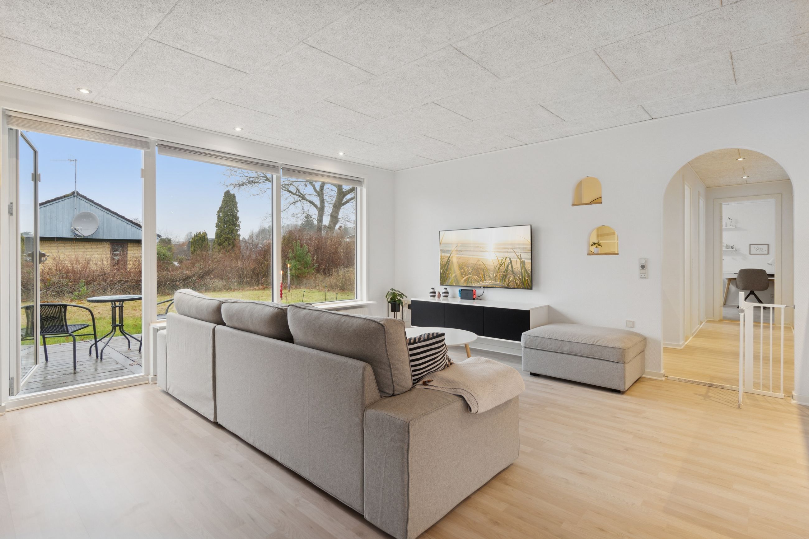 Højstrupvej 21 byder på en veldisponeret bolig i ét plan, hvor 110 kvadratmeter er udnyttet optimalt til både hverdagsliv og komfort. Her får du en indflytningsklar ejendom, der henvender sig til det unge par eller den enlige, som ønsker en nem og overskuelig bolig.
