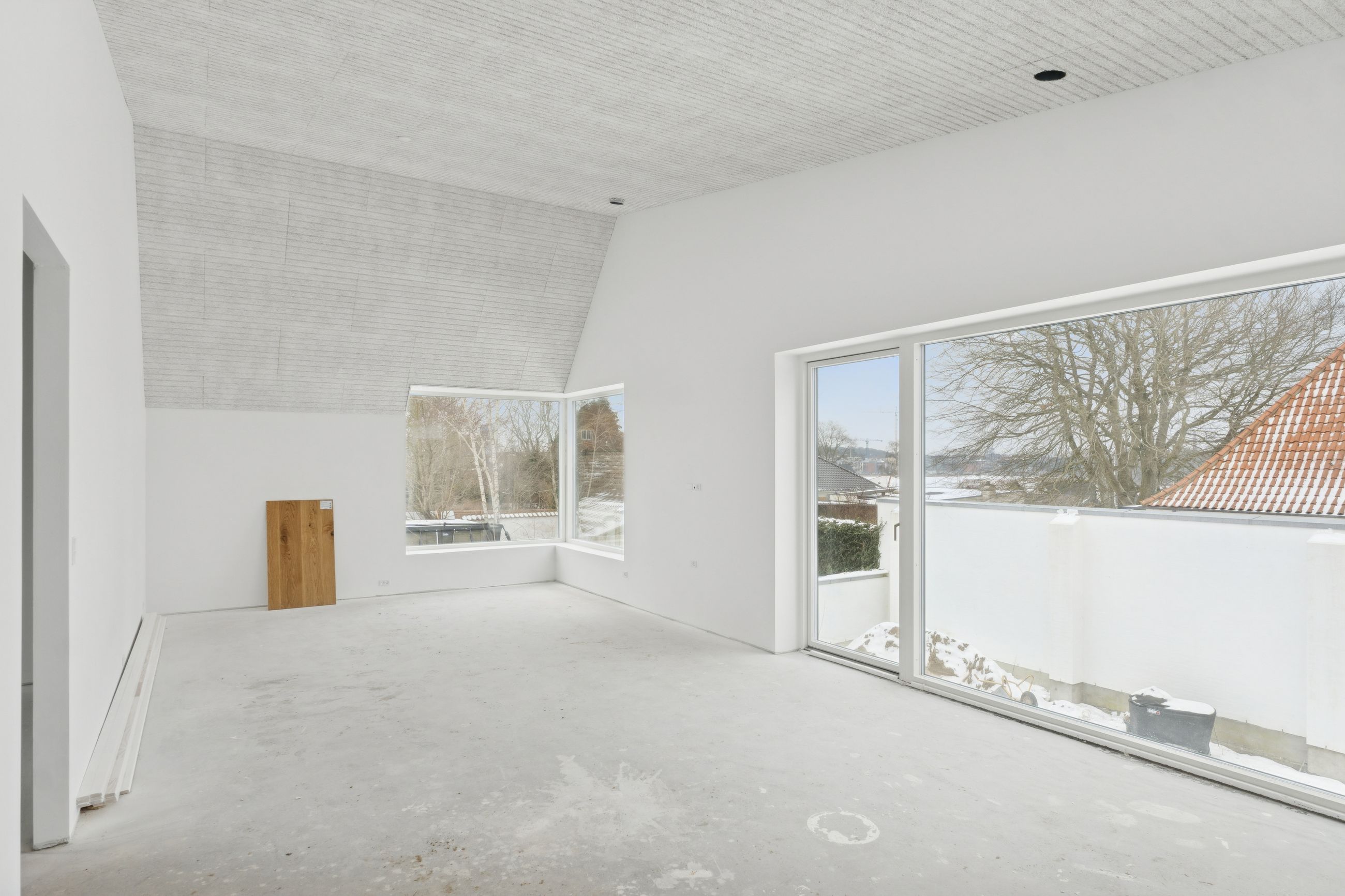 Boligen er fortsat under opførelse, og der er derfor endnu ikke tale om det helt færdige resultat. Allerede nu fornemmer man dog tydeligt kvaliteten, lysindfaldet og de arkitektoniske linjer, som tilsammen skaber en bolig ud over det sædvanlige. Her får du muligheden for at følge den sidste del af processen og glæde dig til at flytte ind i noget helt nyt.