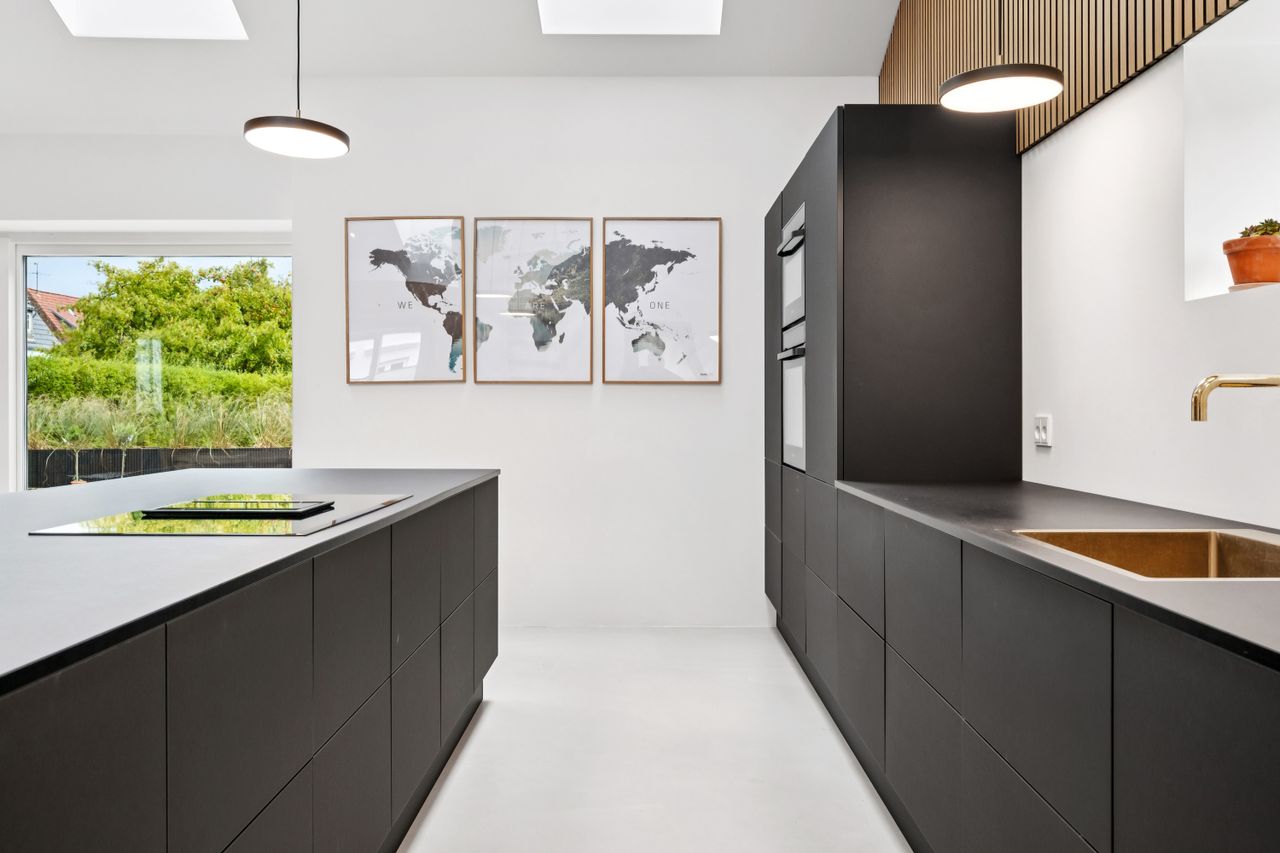 Her træder du ind i et hjem, der straks imponerer. Køkken, alrum og stue flyder sammen i ét åbent rum med højt til loftet, masser af lys og en atmosfære, der bare føles rigtig. Køkkenet er udført i smukke materialer, og den tilhørende hems sætter prikken over i’et – perfekt som ekstra opholdsrum eller hyggelig krog.