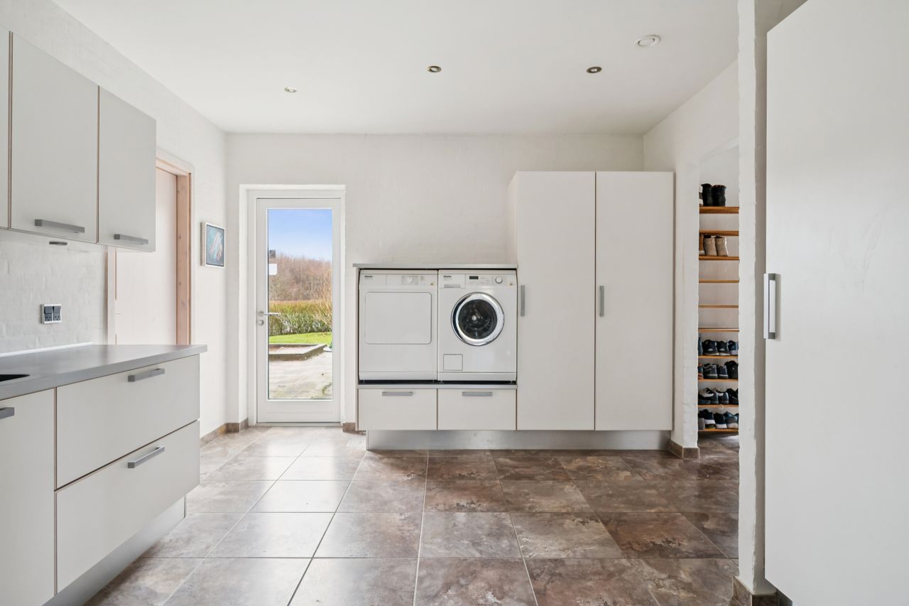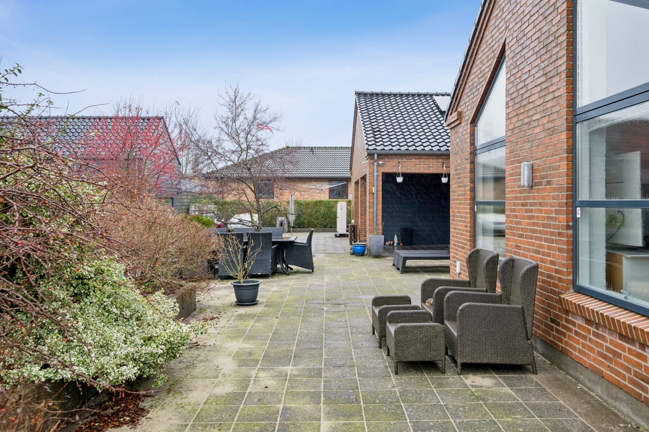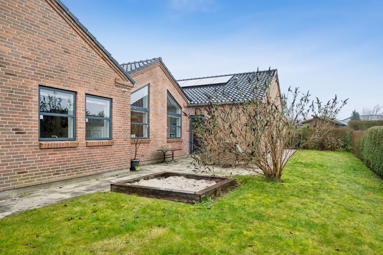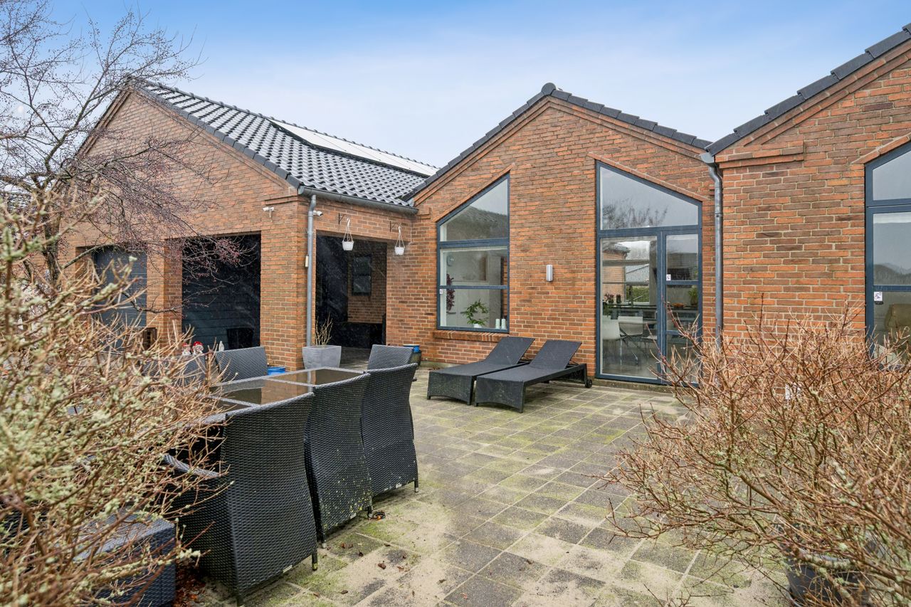 På en rolig, stille og lukket vej i attraktive Them finder du denne virkelig flotte og spændende ejendom med en gennemtænkt planløsning og masser af plads – både inde og ude. Her er der skabt en bolig, der passer perfekt til familien, der ønsker funktionalitet, rummelighed og ro i hverdagen.