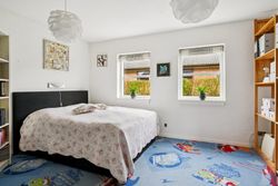 Boligen byder på en god værelsesafdeling med tre indretningsvenlige værelser, ideelle til børn, kontor eller gæster. Hertil kommer et stort og praktisk bryggers med masser af opbevaringsplads samt et pænt badeværelse.
