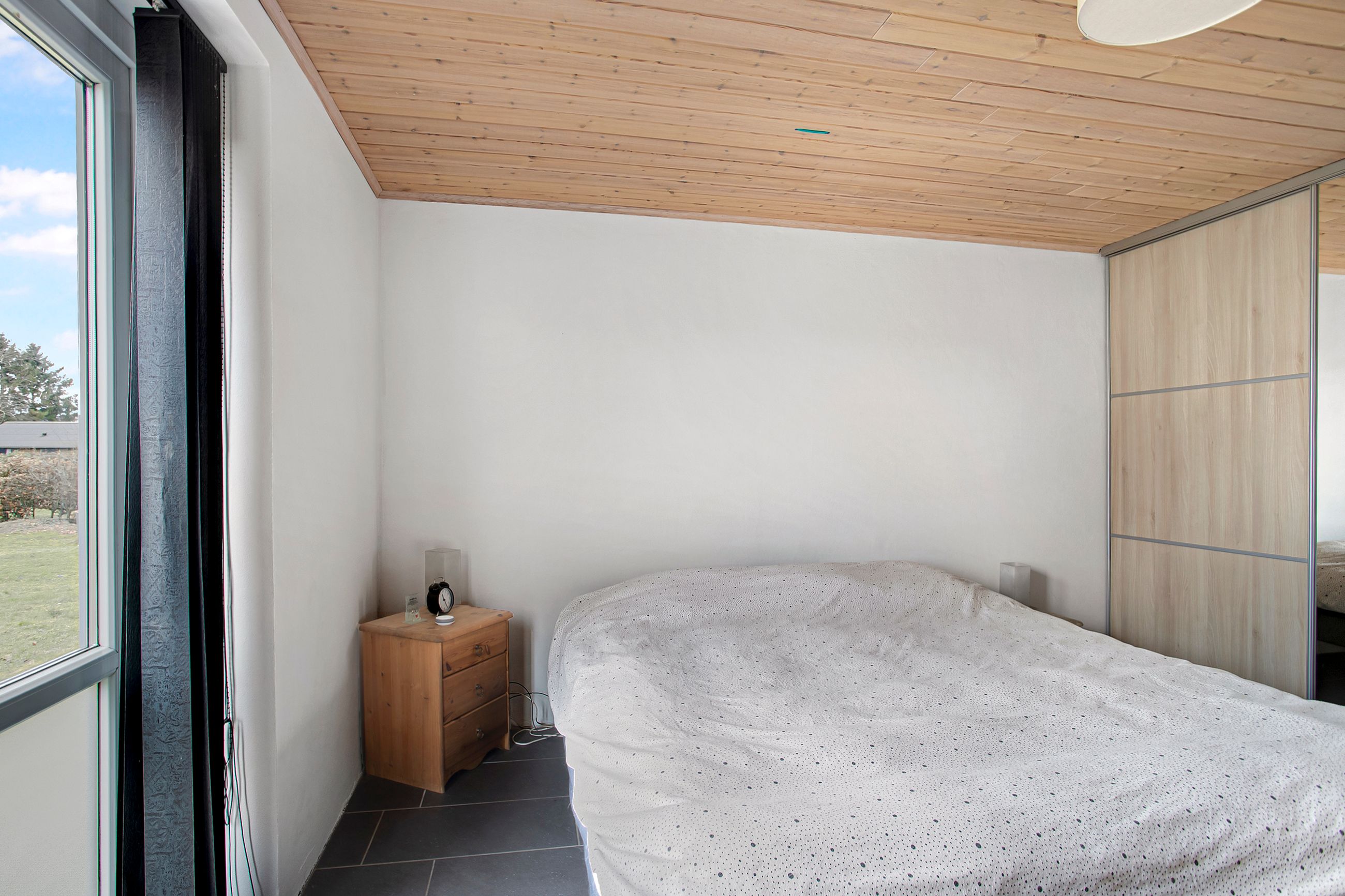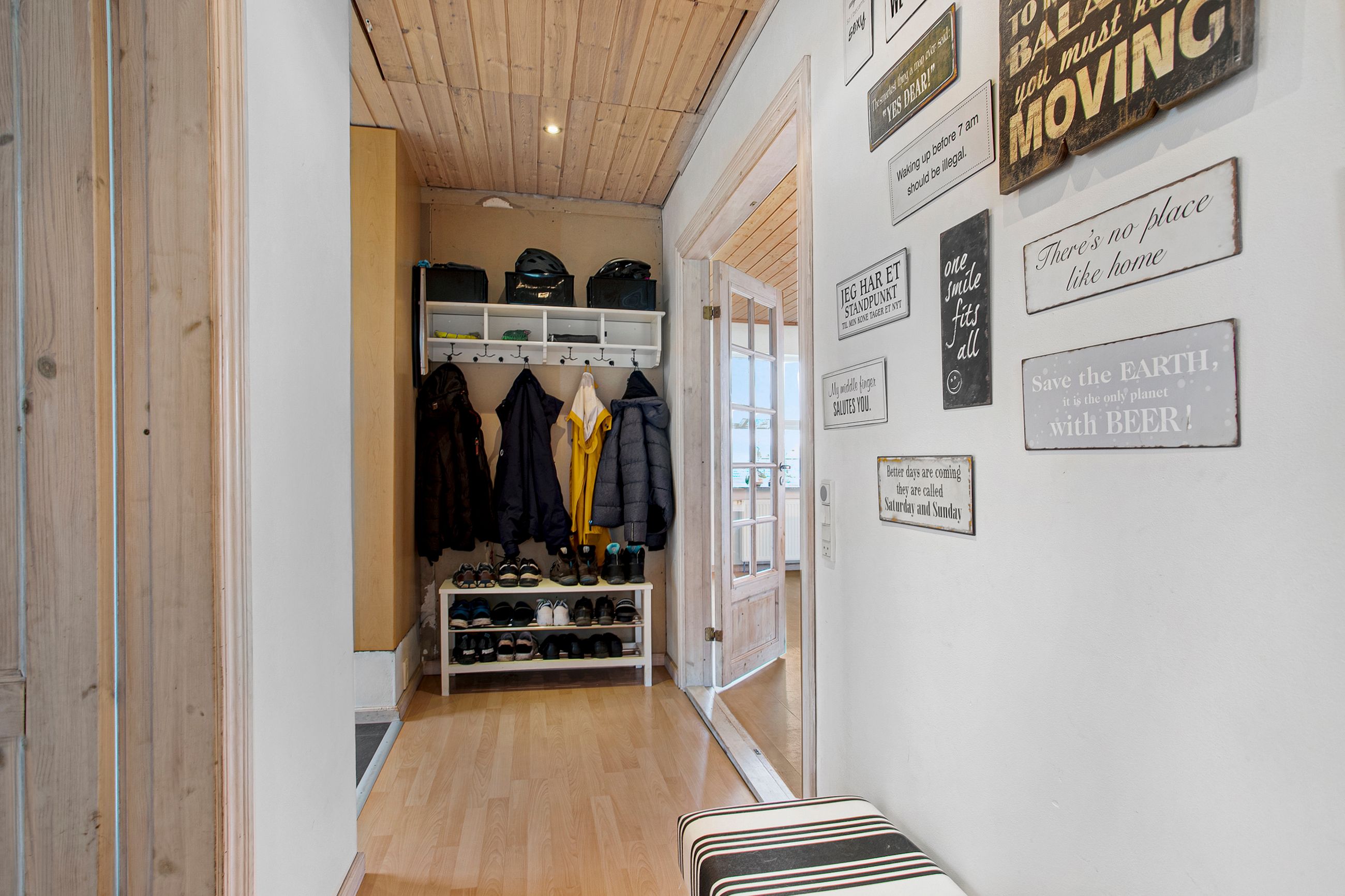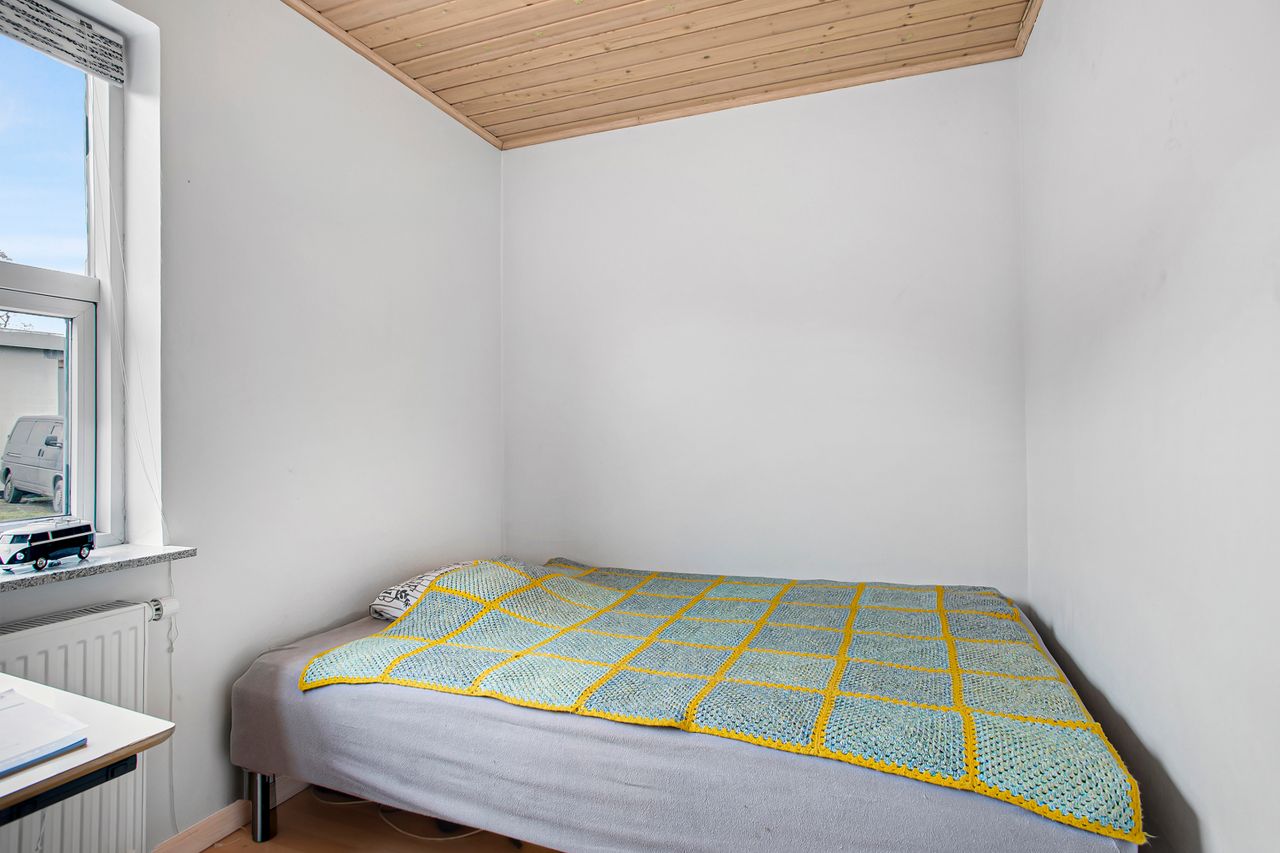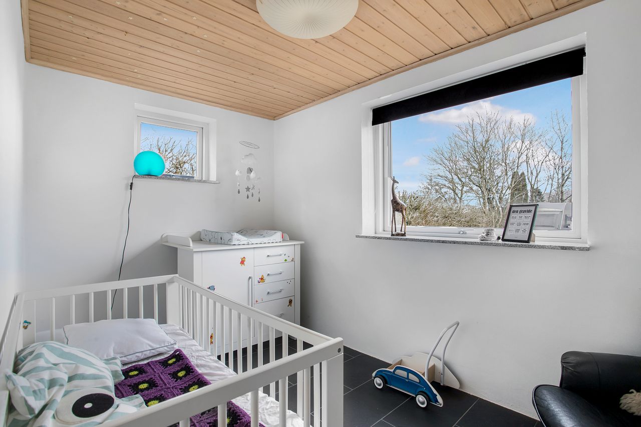 Bliver I i stueetagen, finder I tilmed en møblérbar entré, der både leder ind til det lyse soveværelse men