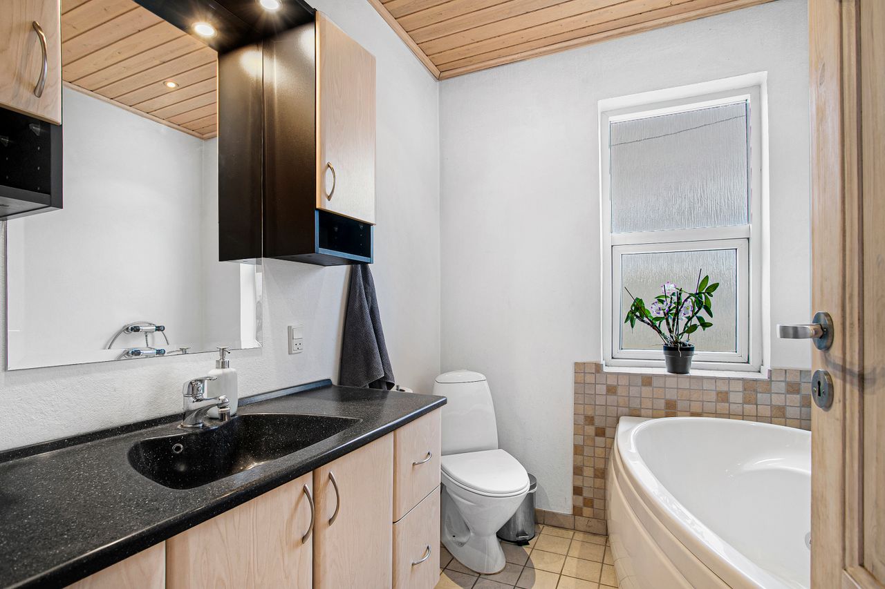 ligeså velholdt som det i stueetagen - stueetagens trumfer dog med indbygget spa.