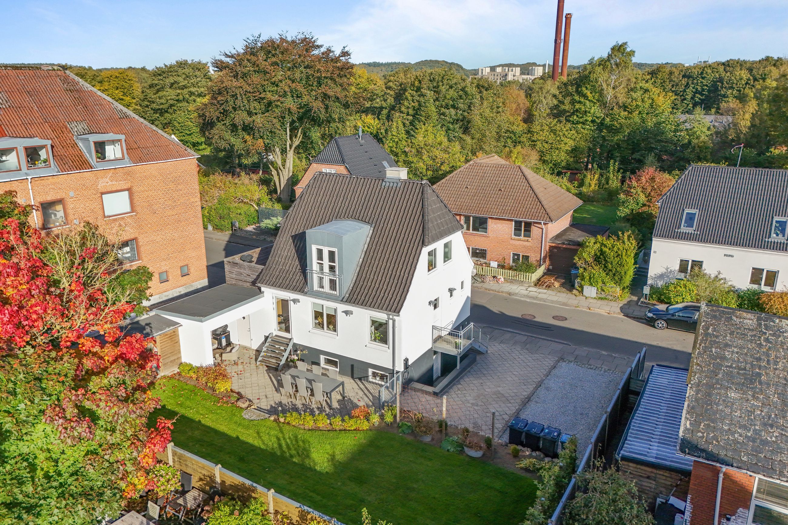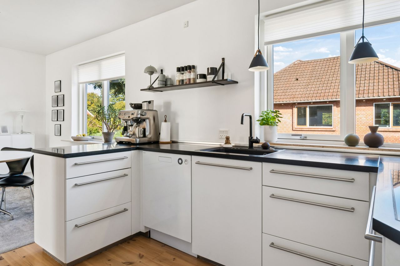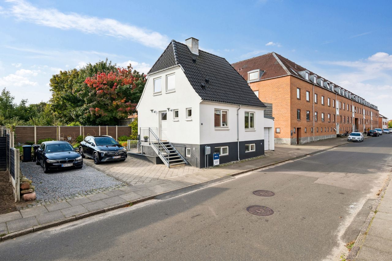 Der er plads til mindst to biler i den brede indkørsel og yderligere en i garagen, så du ikke skal tænke på parkering - heller ikke når du inviterer gæster på besøg i dit smukke nye hjem.