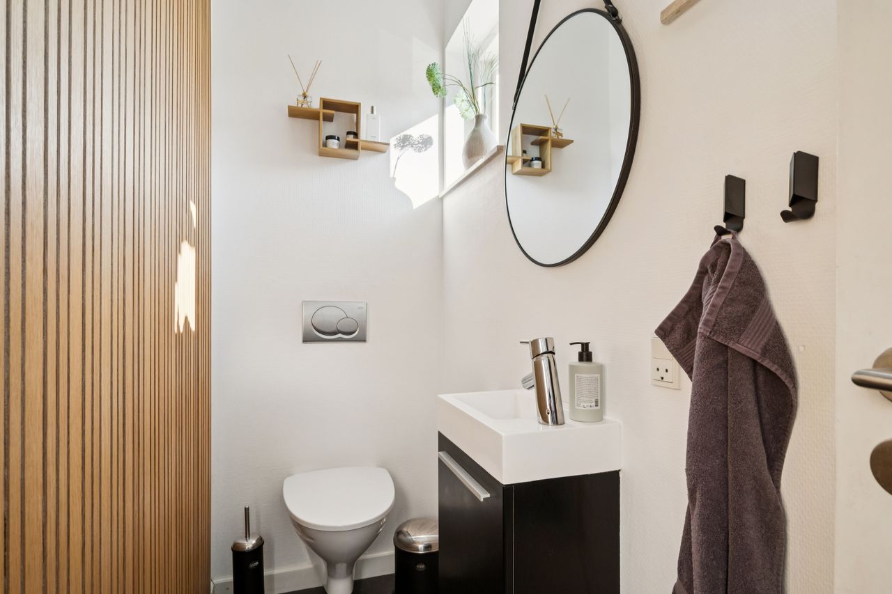 Ejendommen har det som mange andre byhuse mangler: flotte badeværelser både på 1. sal og i kælderen, og et lækkert gæstetoilet i stueplan.